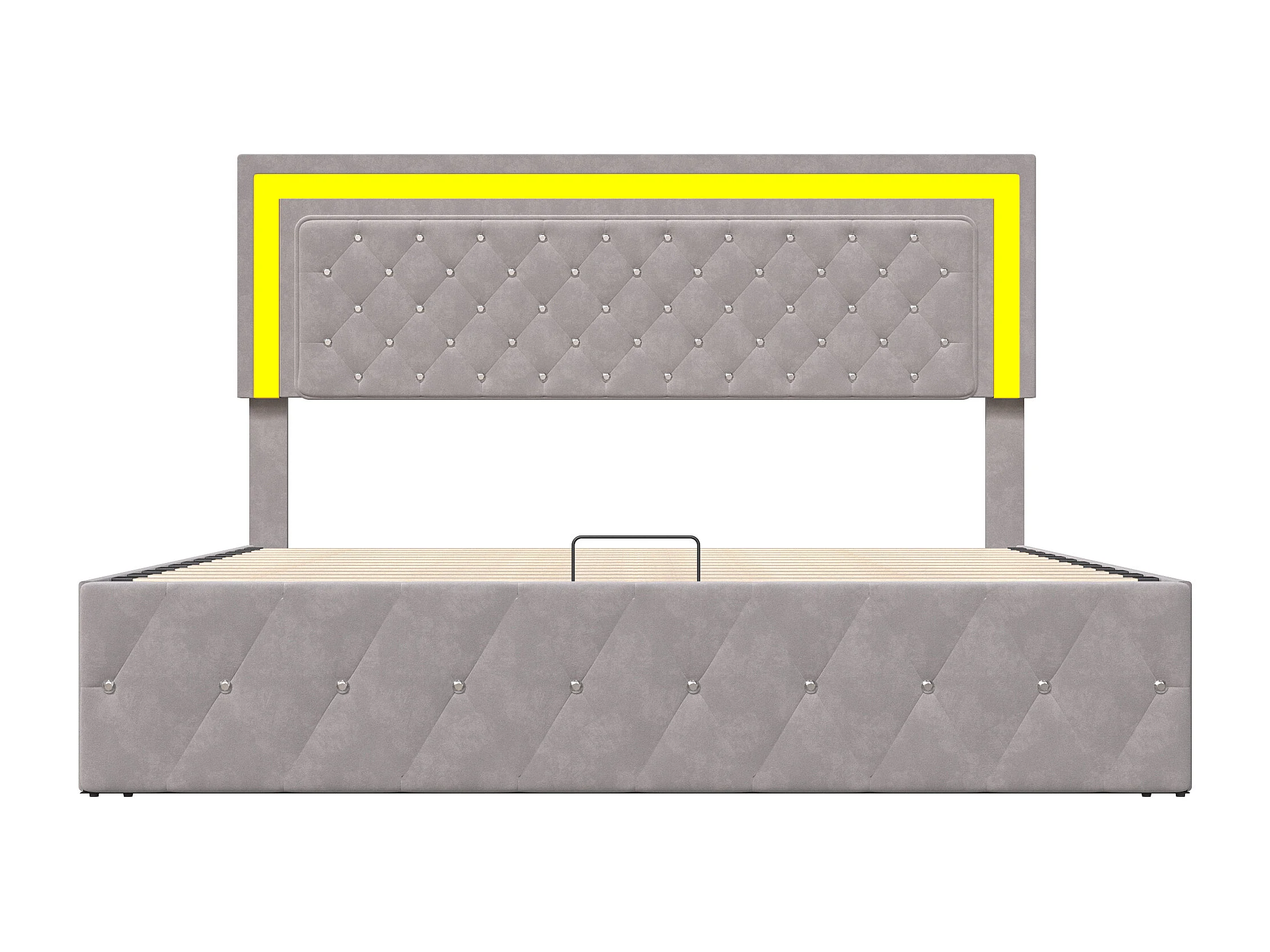 Lit coffre 140×200 cm velours avec LED et sommier à lattes – Lit double de rangement, beige