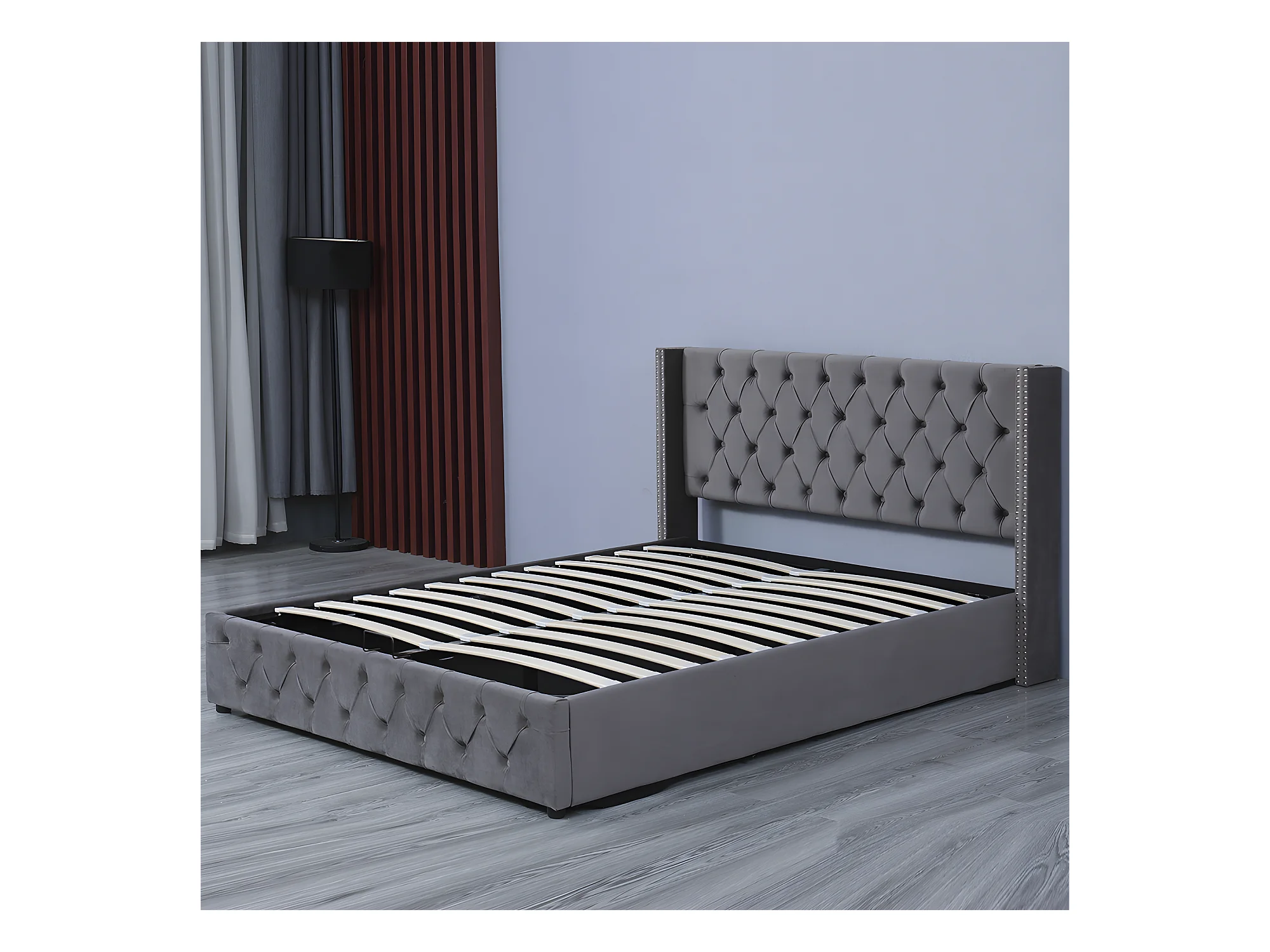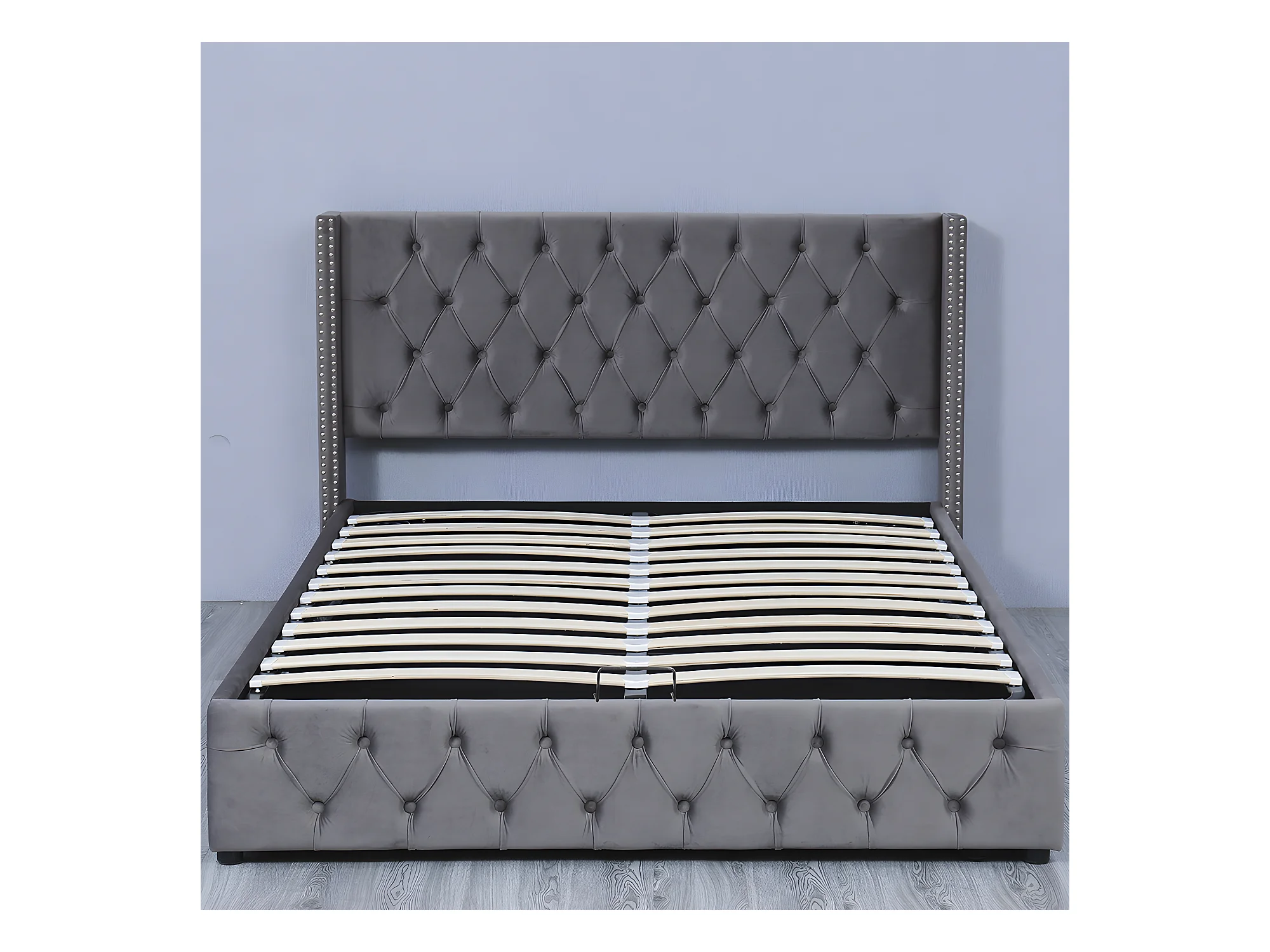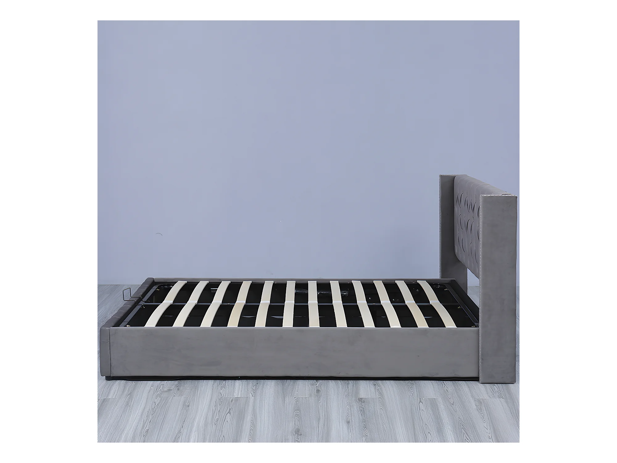 Lit coffre - 140 x 190 cm - avec sommier à lattes relevable - Gris - Sweiko