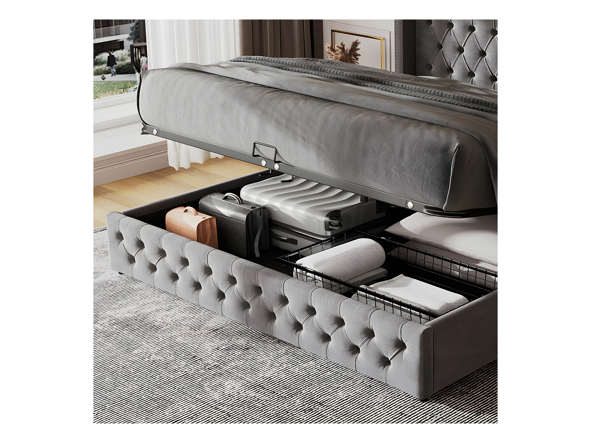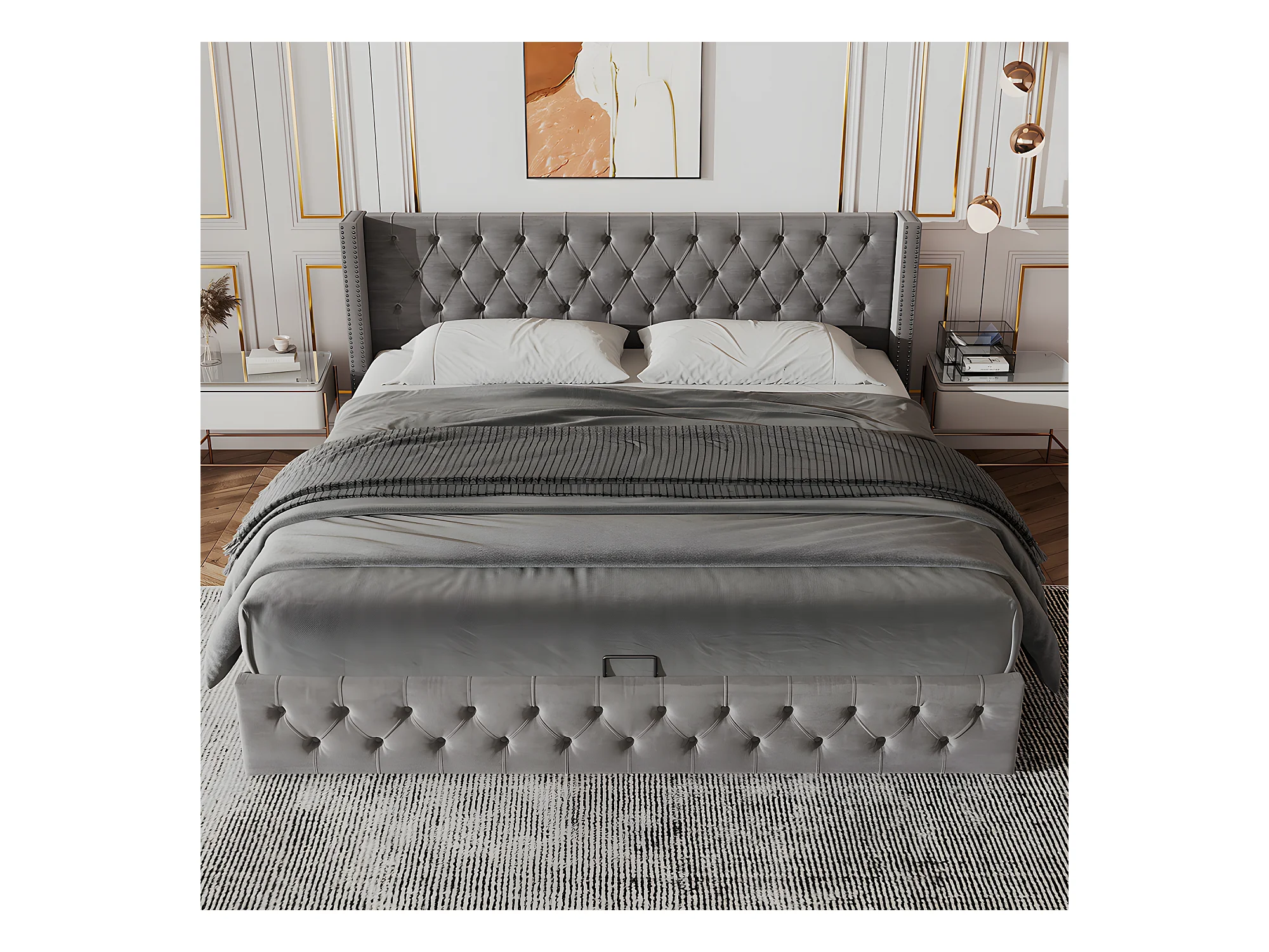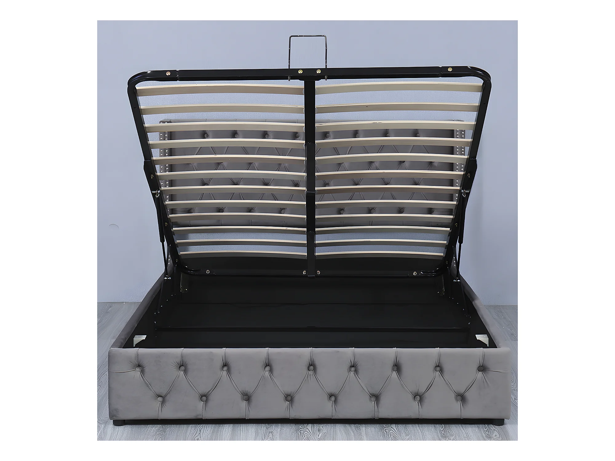 Lit coffre - 140 x 190 cm - avec sommier à lattes relevable - Gris - Sweiko