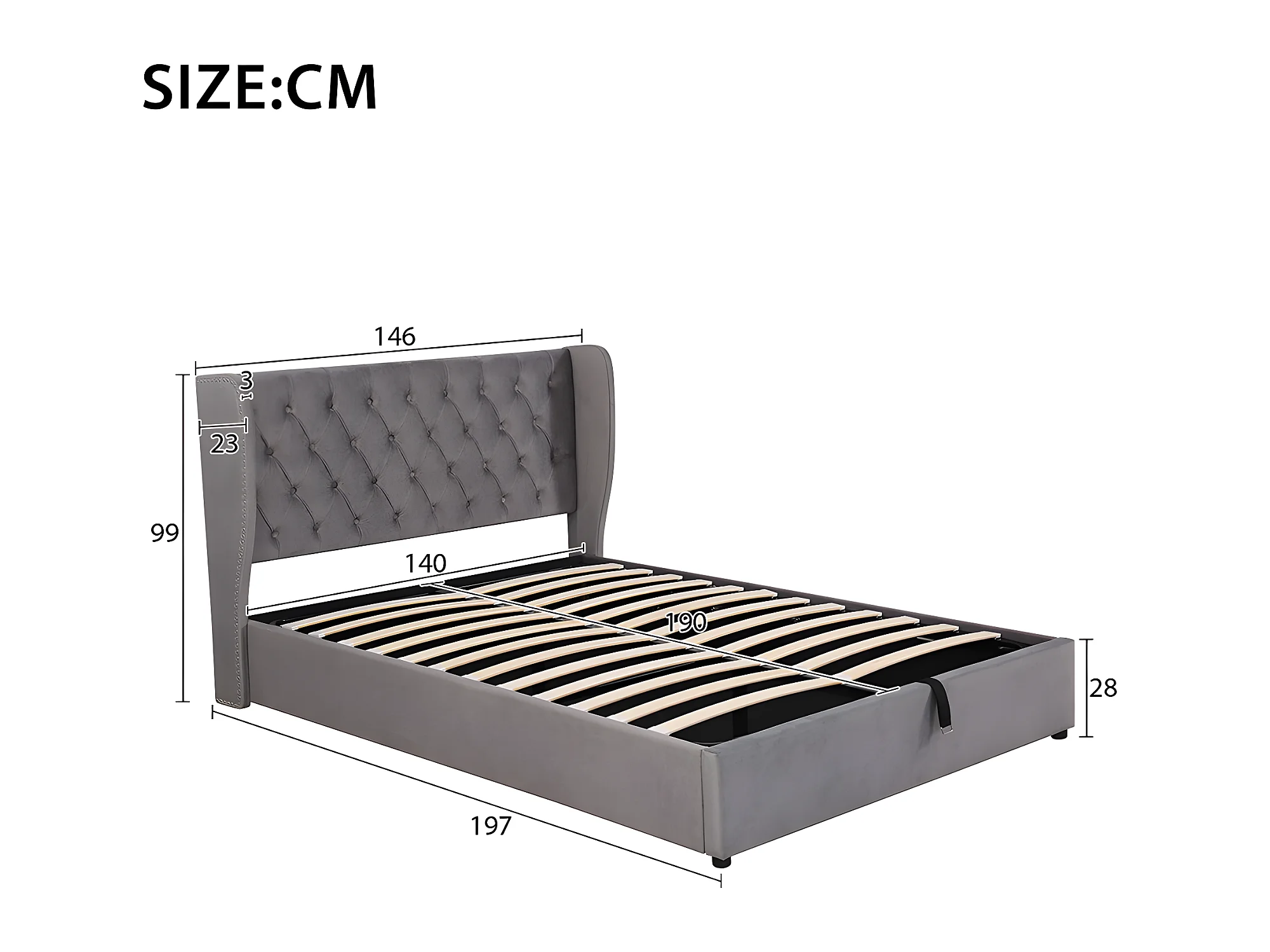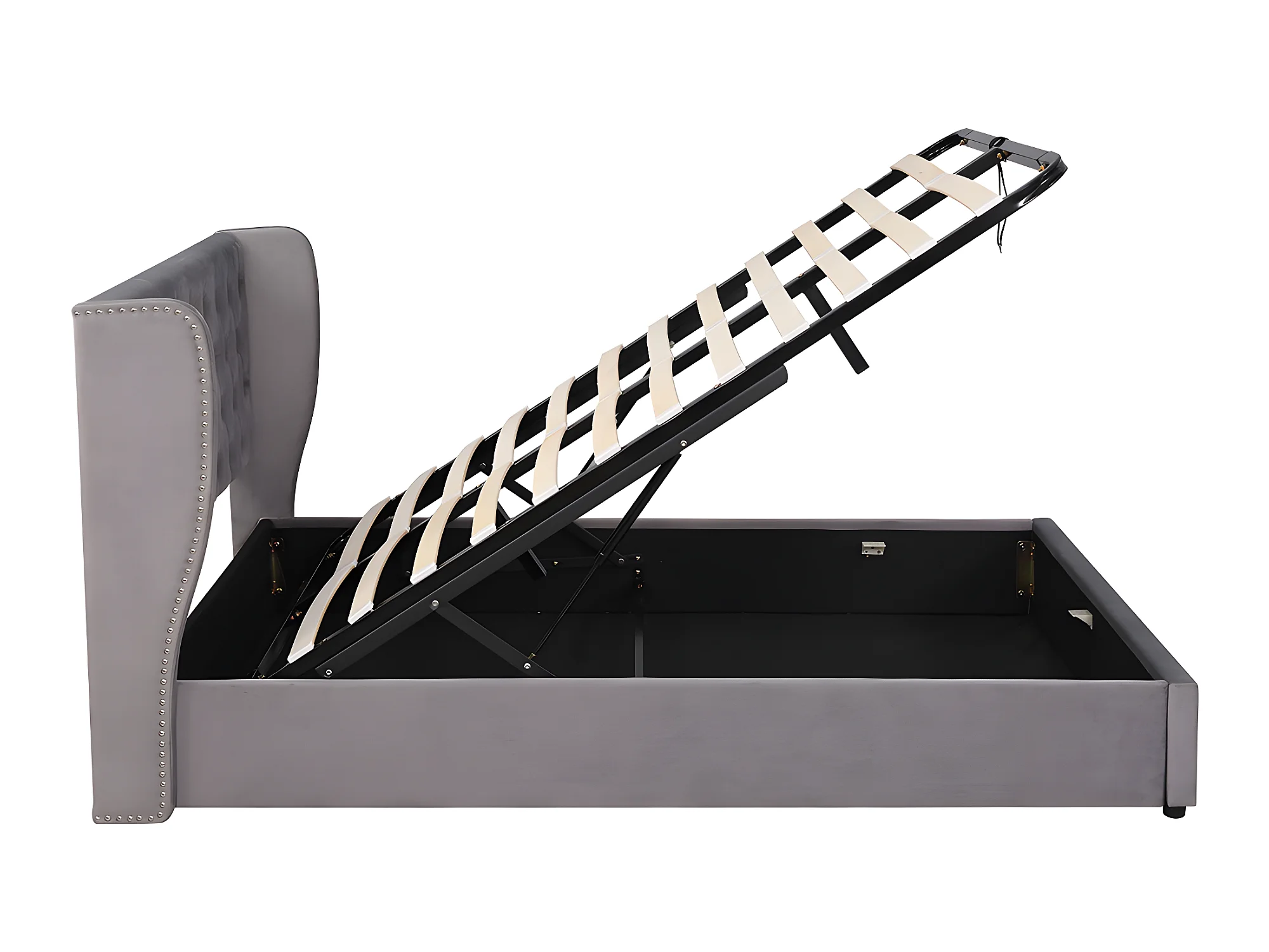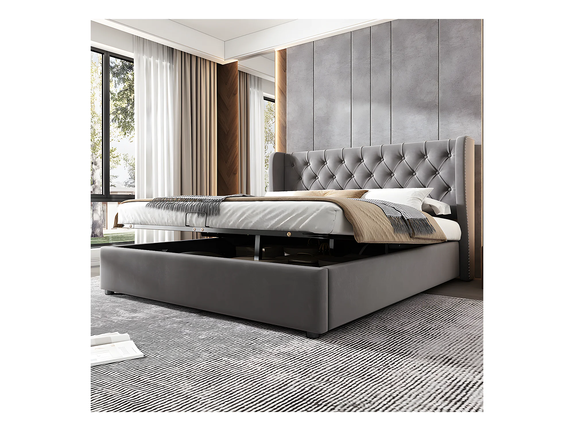 Lit coffre - 140 x 190 cm - avec sommier à lattes relevable - Gris - Sweiko