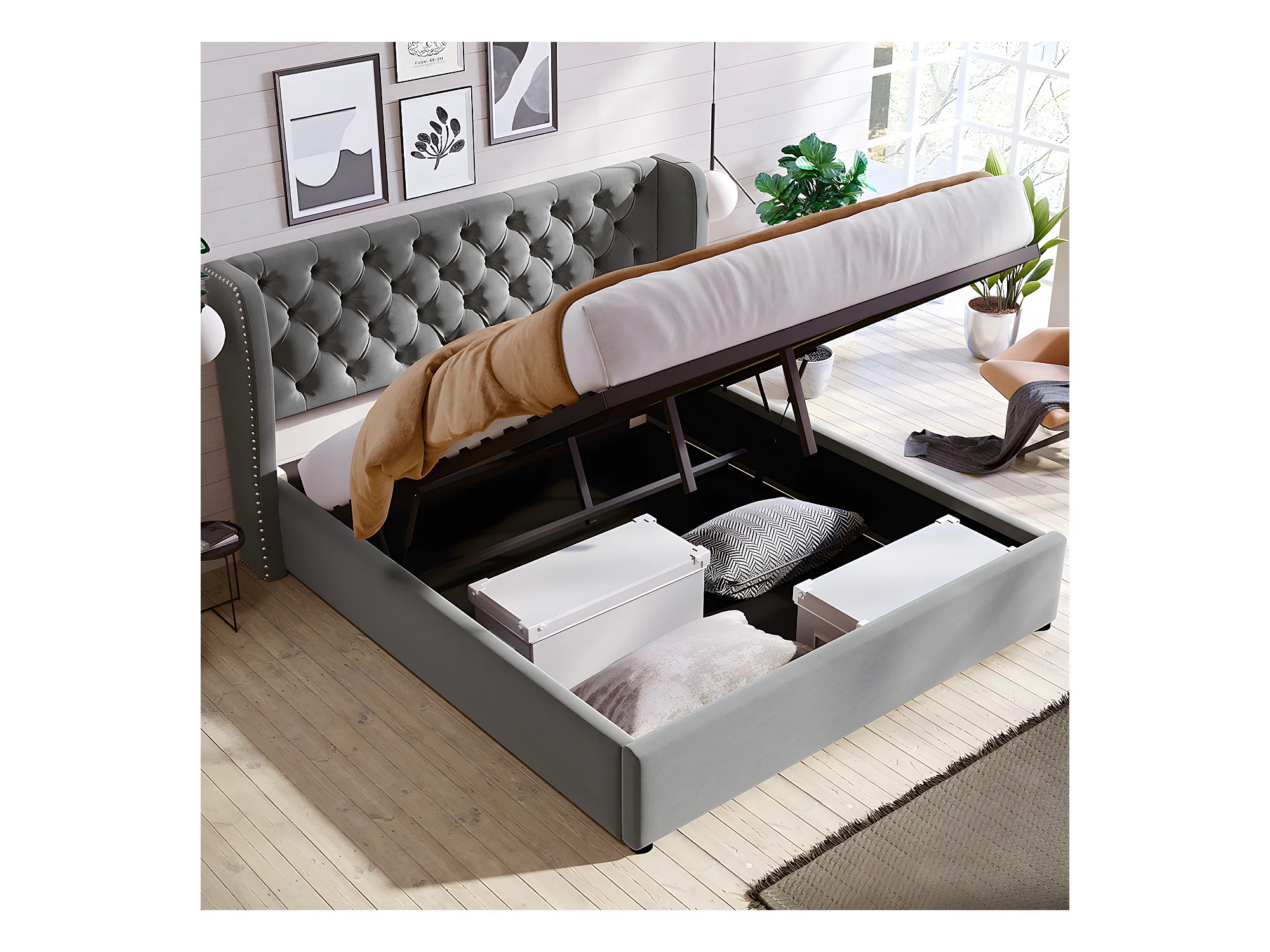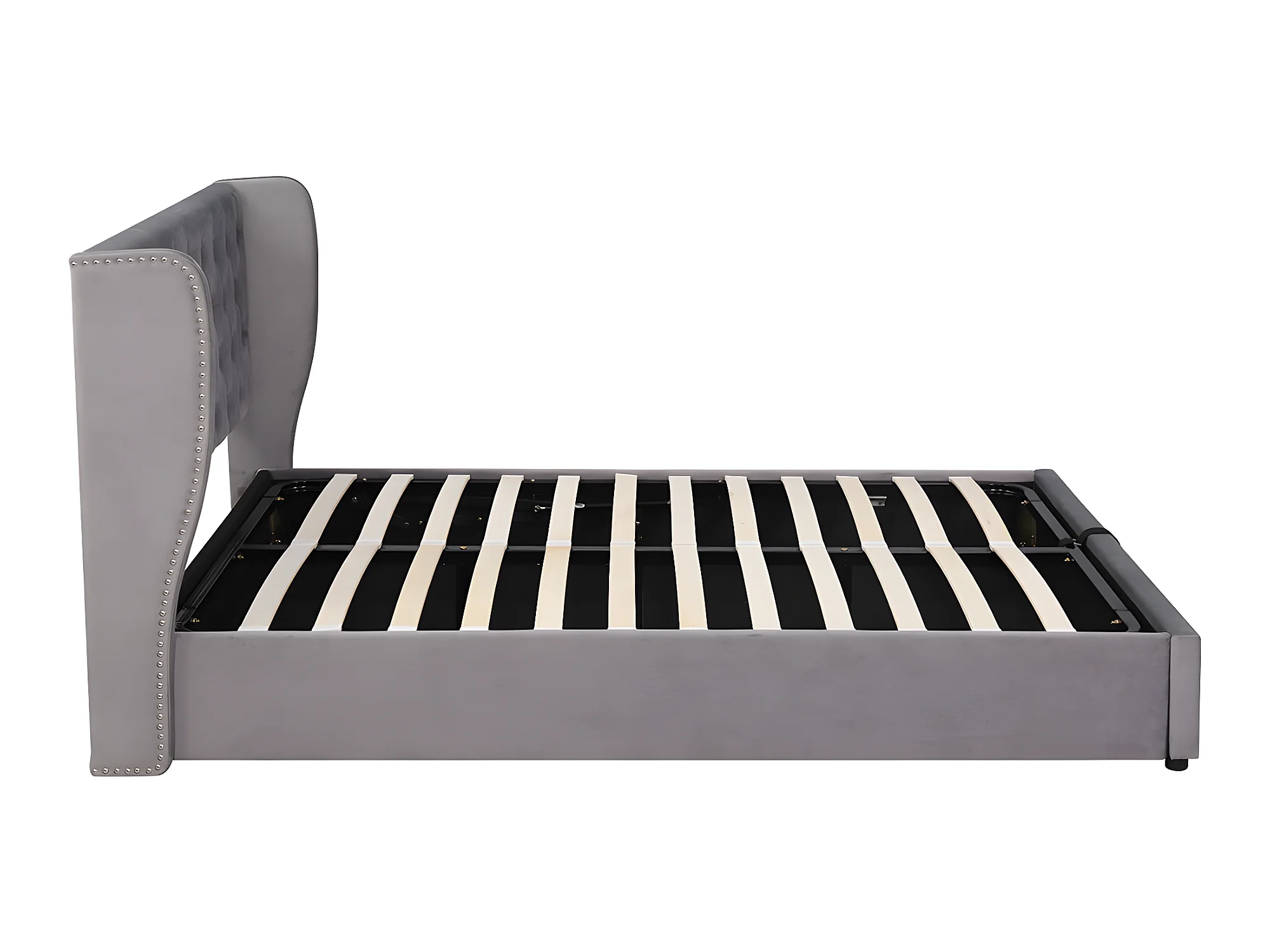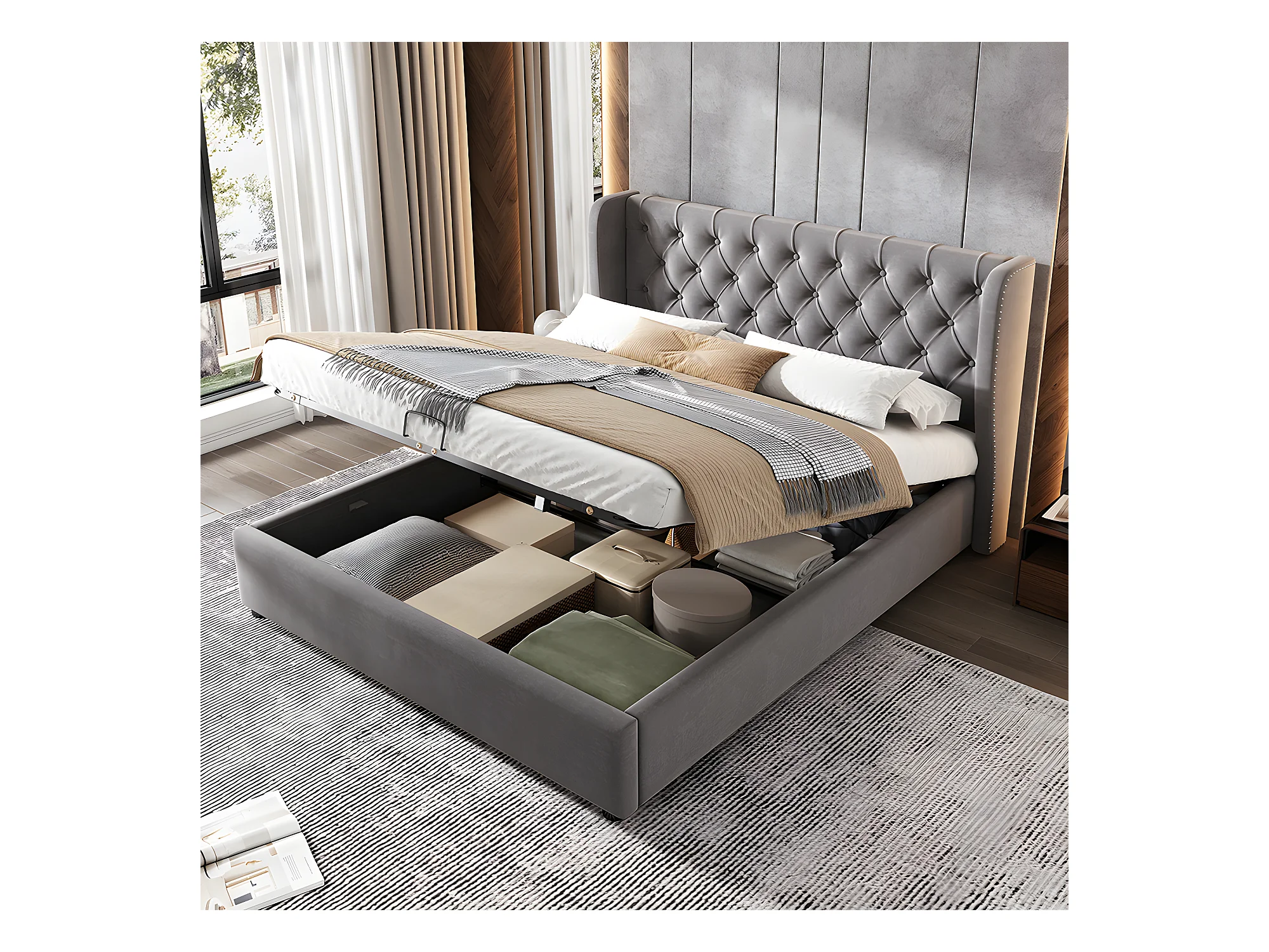 Lit coffre - 140 x 190 cm - avec sommier à lattes relevable - Gris - Sweiko
