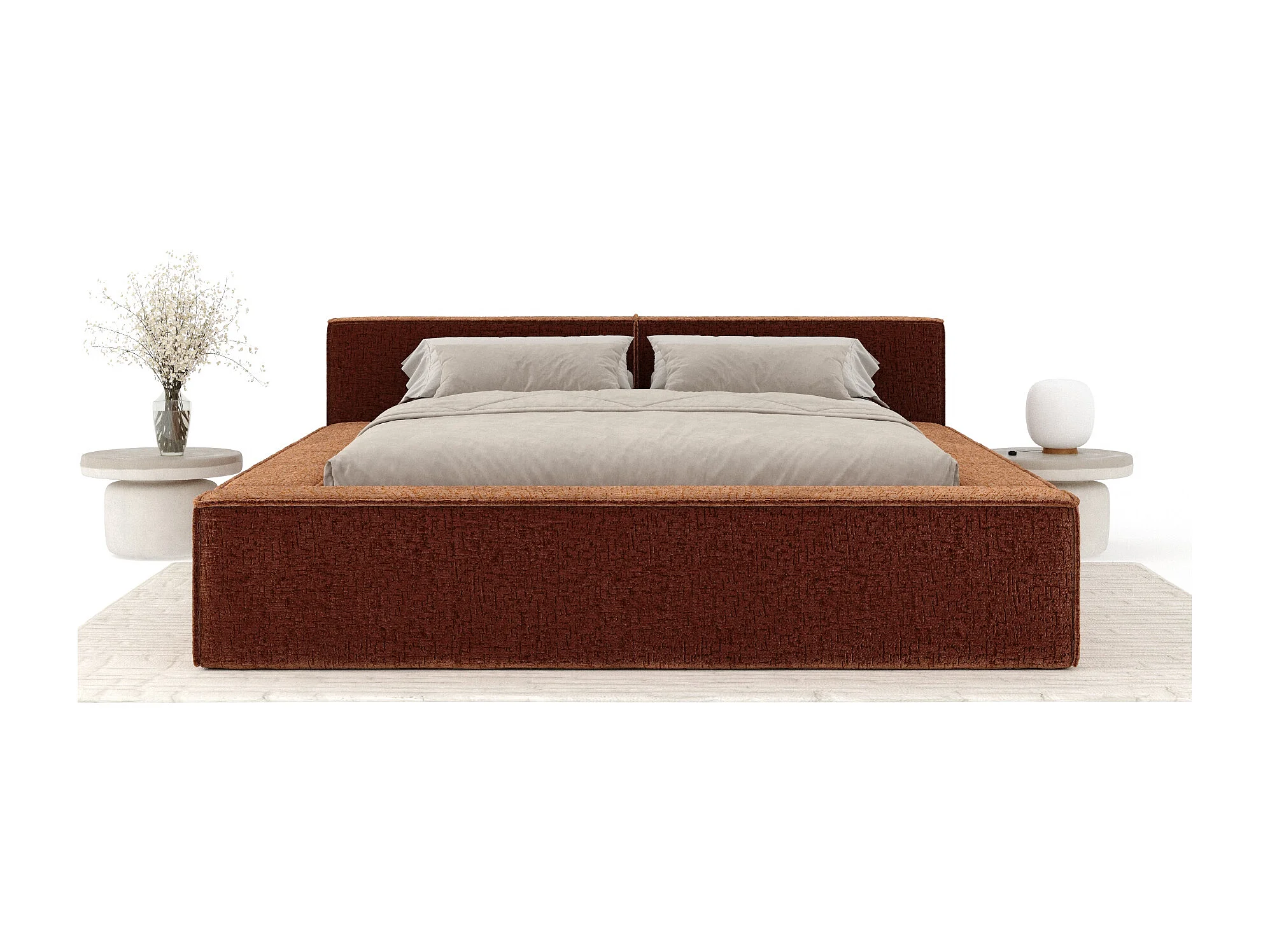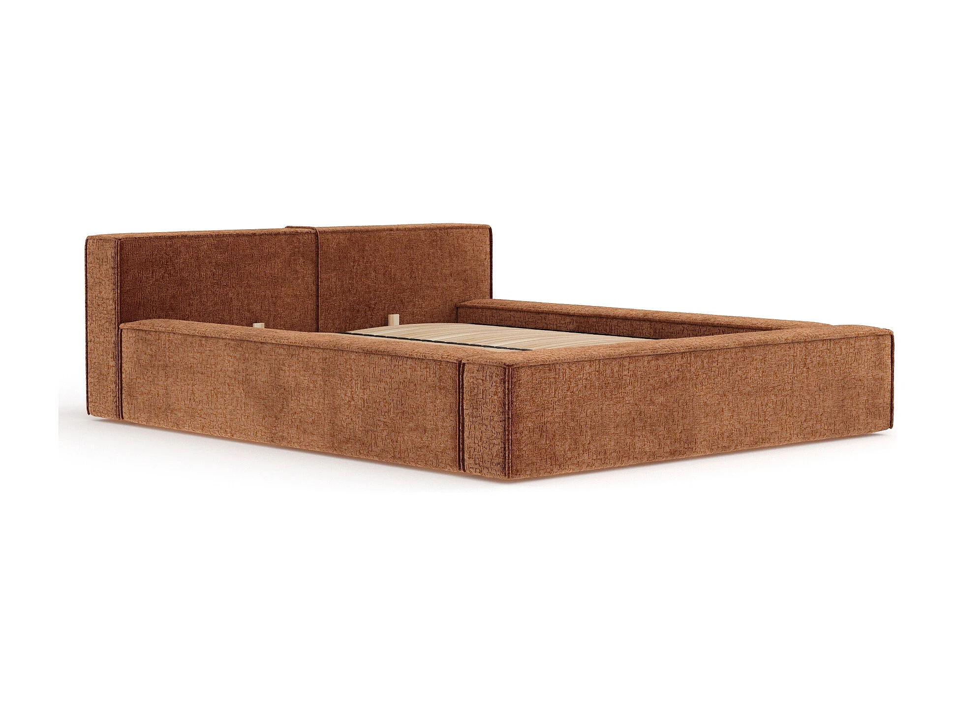 Lit coffre 140 x 200 cm avec tête de lit VOLIERA - en tissu chenille - cuivre
