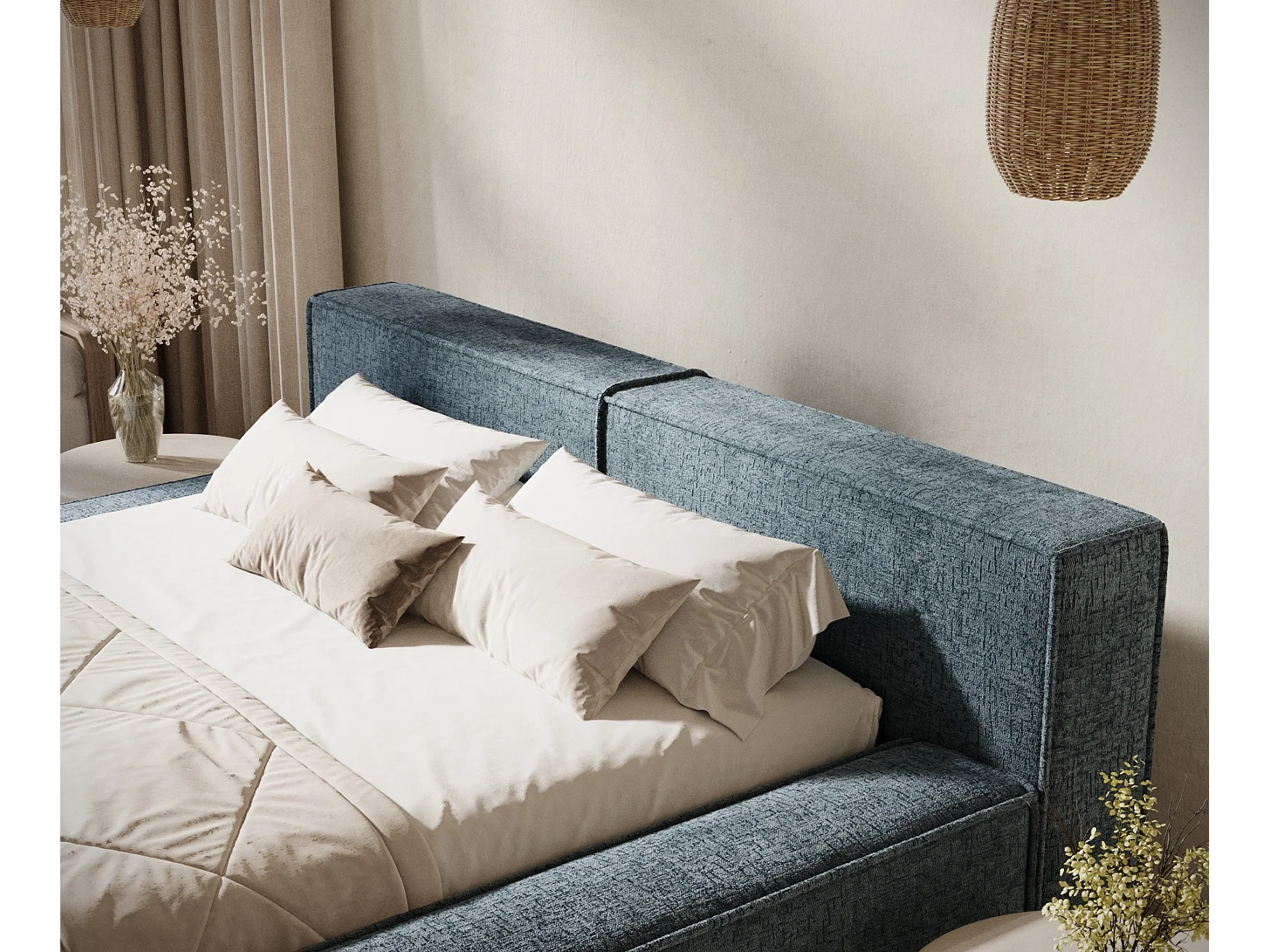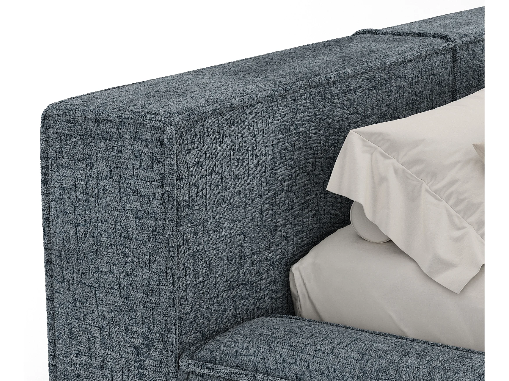 Lit coffre 140 x 200 cm avec tête de lit VOLIERA - en tissu chenille - gris