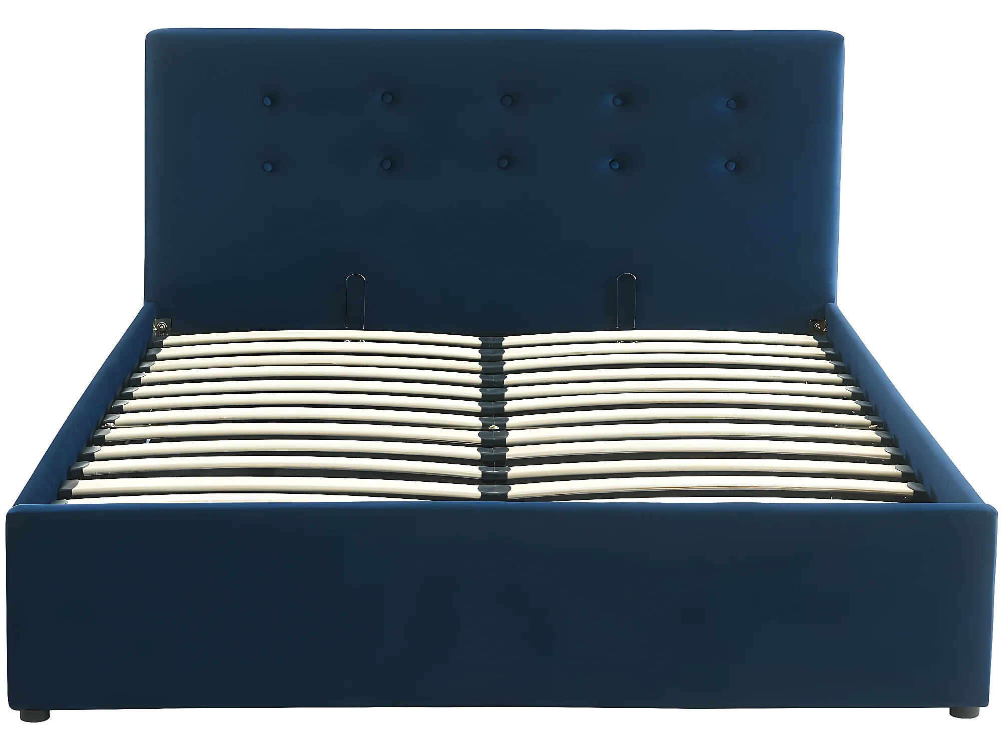 Lit coffre 140x190 en velours bleu foncé avec tête de lit et sommier à lattes - Tina