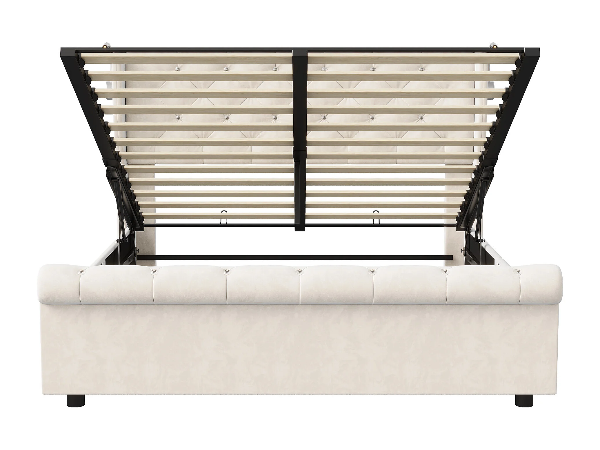 Lit coffre 140x190cm avec rangements, avec tête de lit, liseuse avec chargement USB, sommier à lattes, cadre de lit, lit double style contemporain, Beige