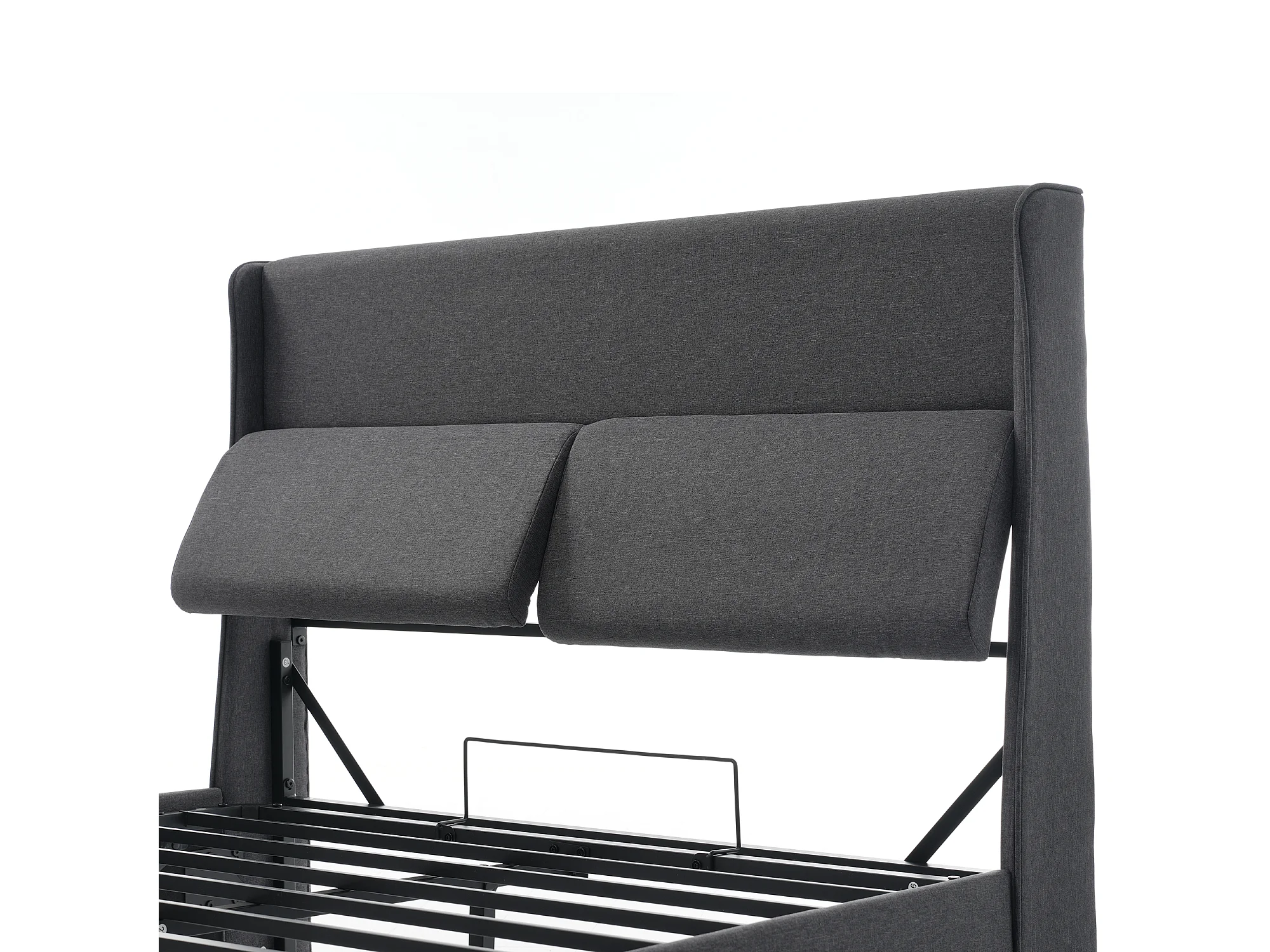 Lit coffre 140x200 cm - avec appui-tête réglable - lin - gris - matelas inclus