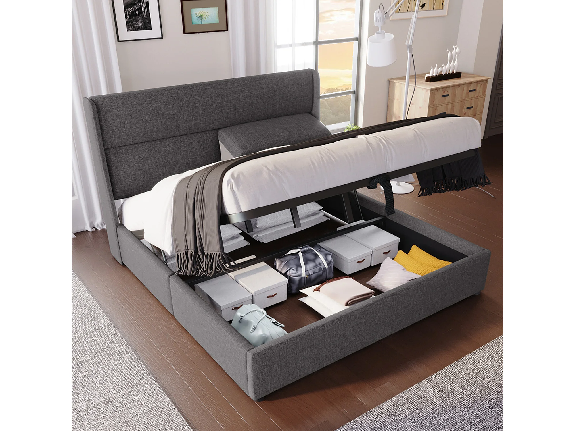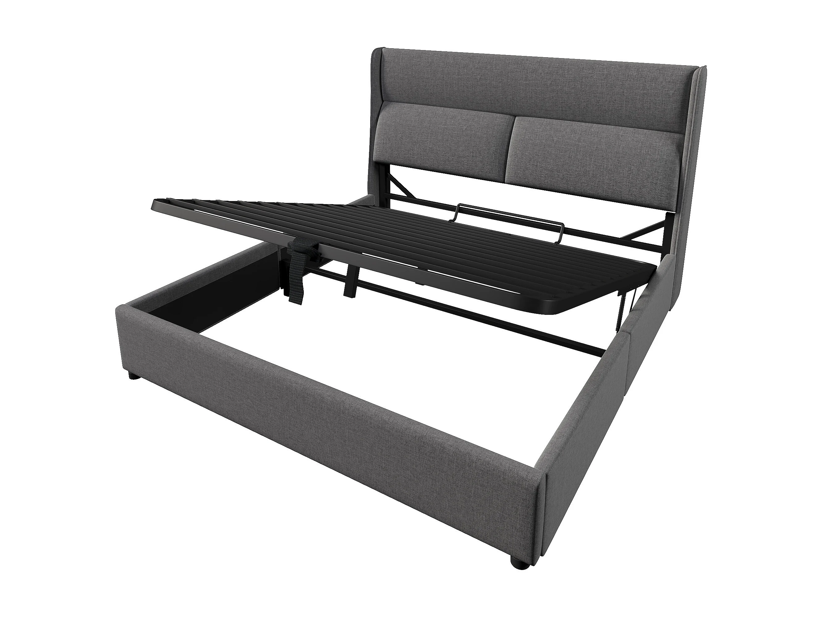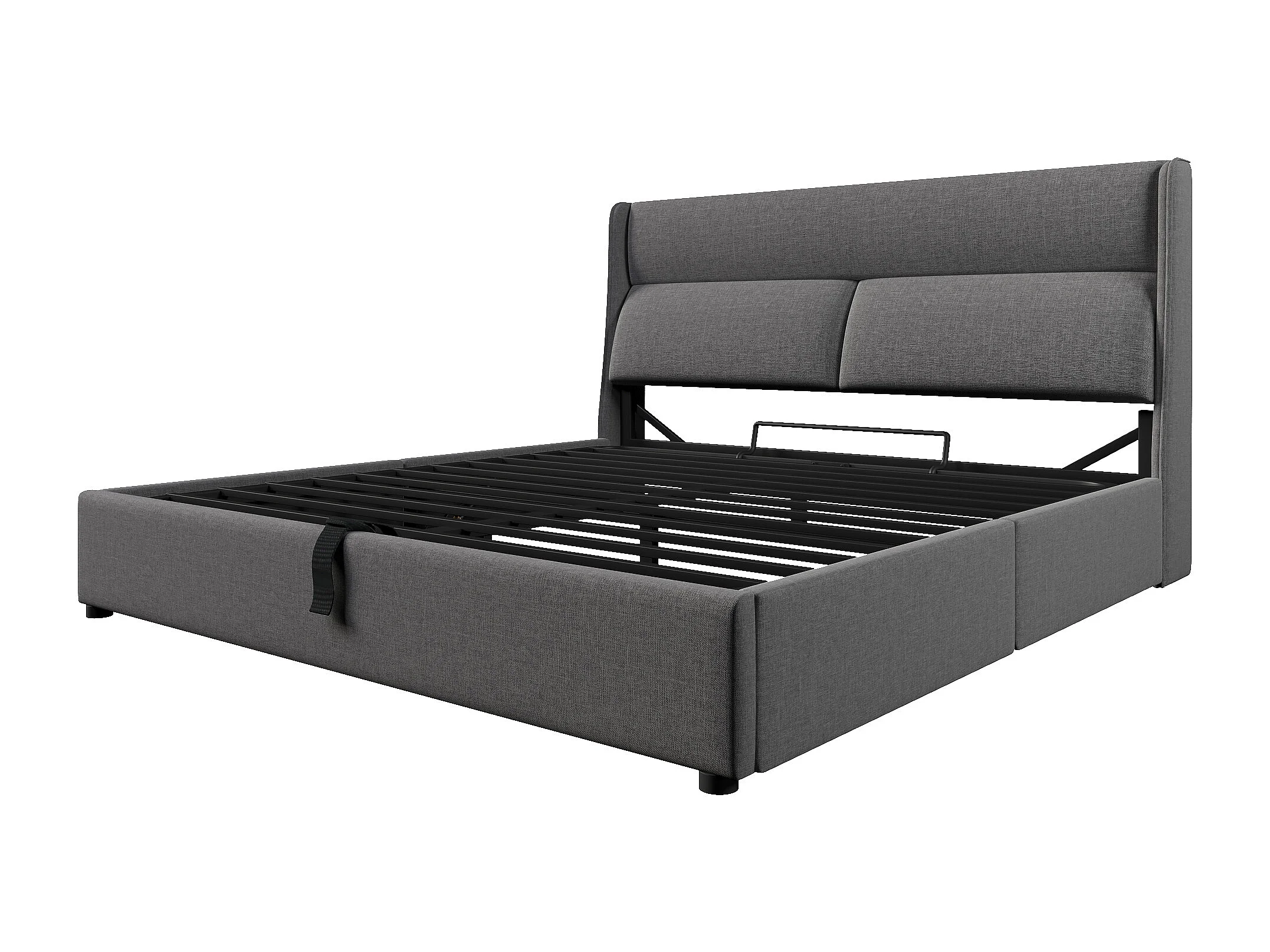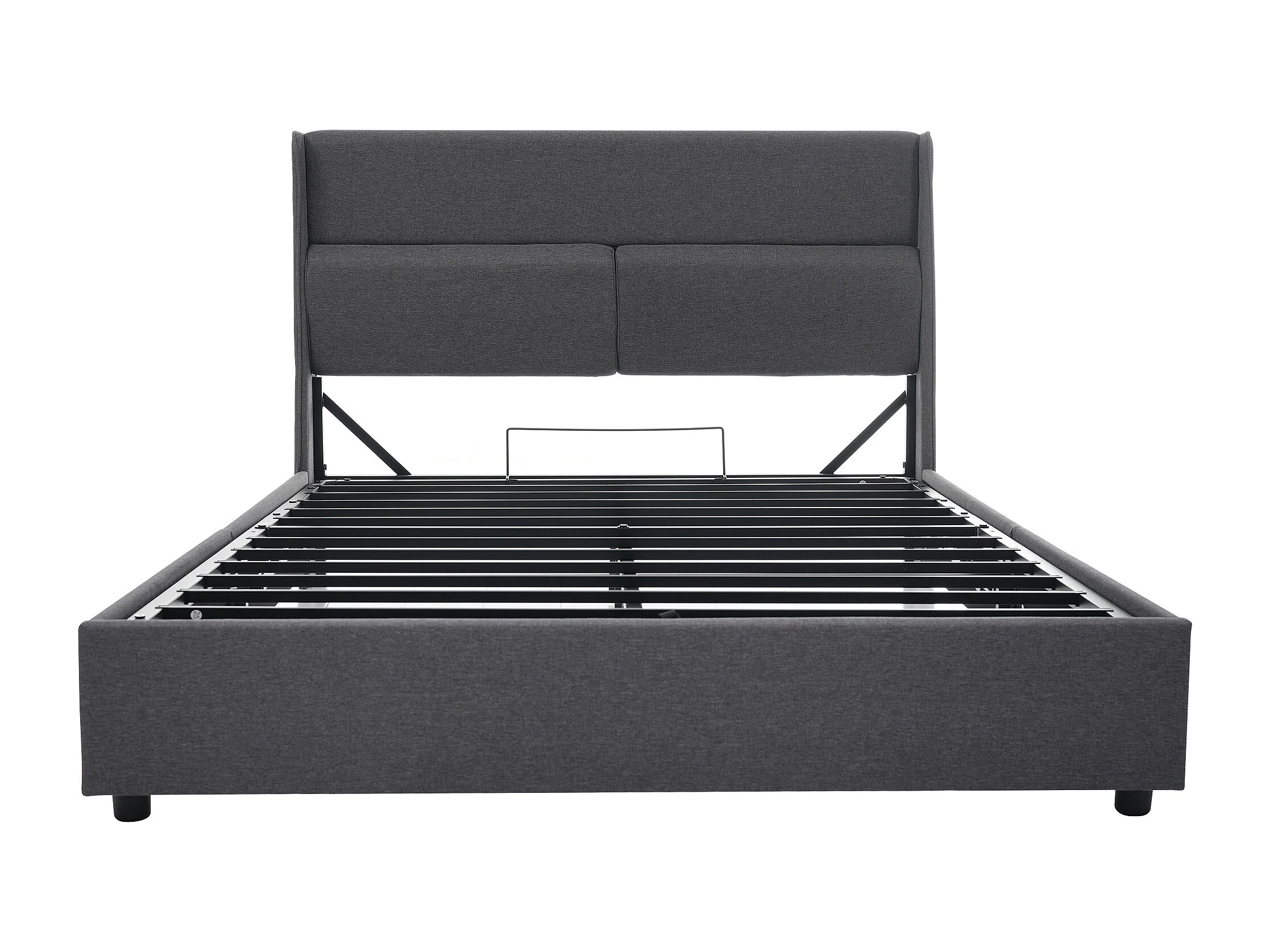 Lit coffre 140x200 cm - avec appui-tête réglable - lin - gris - sans matelas