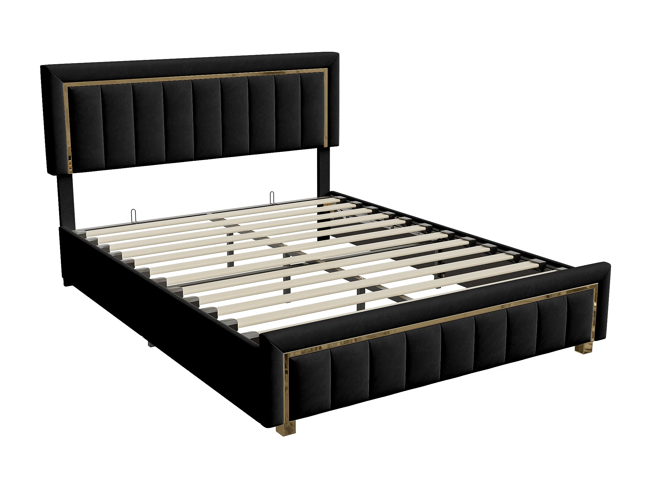 Lit coffre à pistons hydrauliques 140 x 200 cm - Noir - Velours