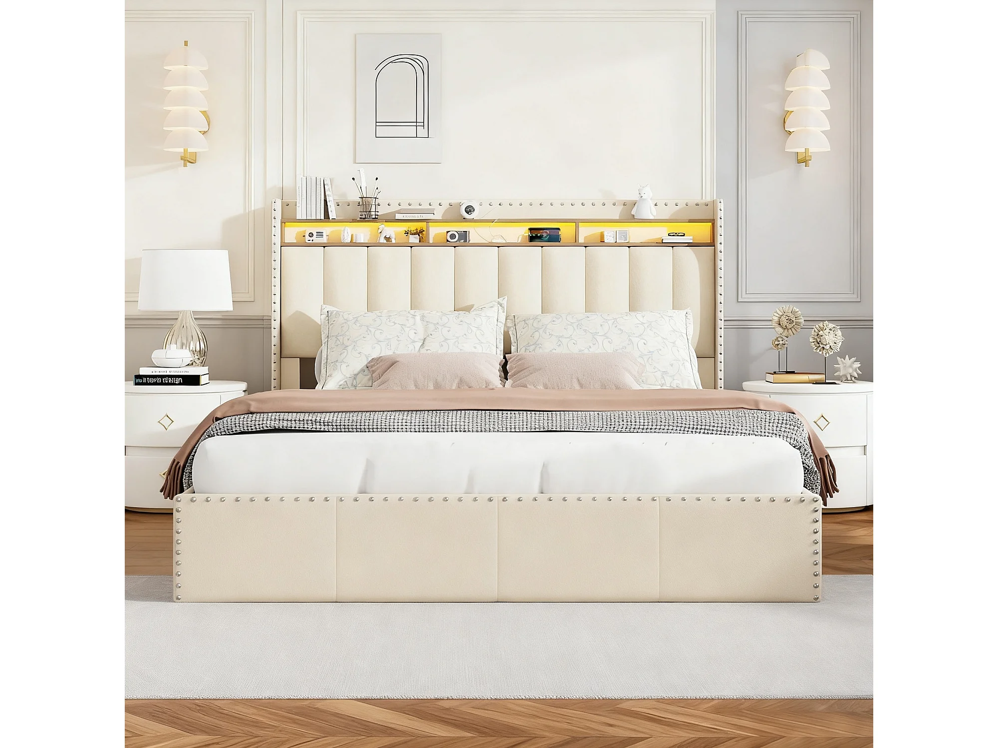 Lit coffre 140x200 cm avec sommier à lattes - cadre de lit adulte 140x200 cm - lit double 140x200 cm matelassé en tissu velours - blanc cassé
