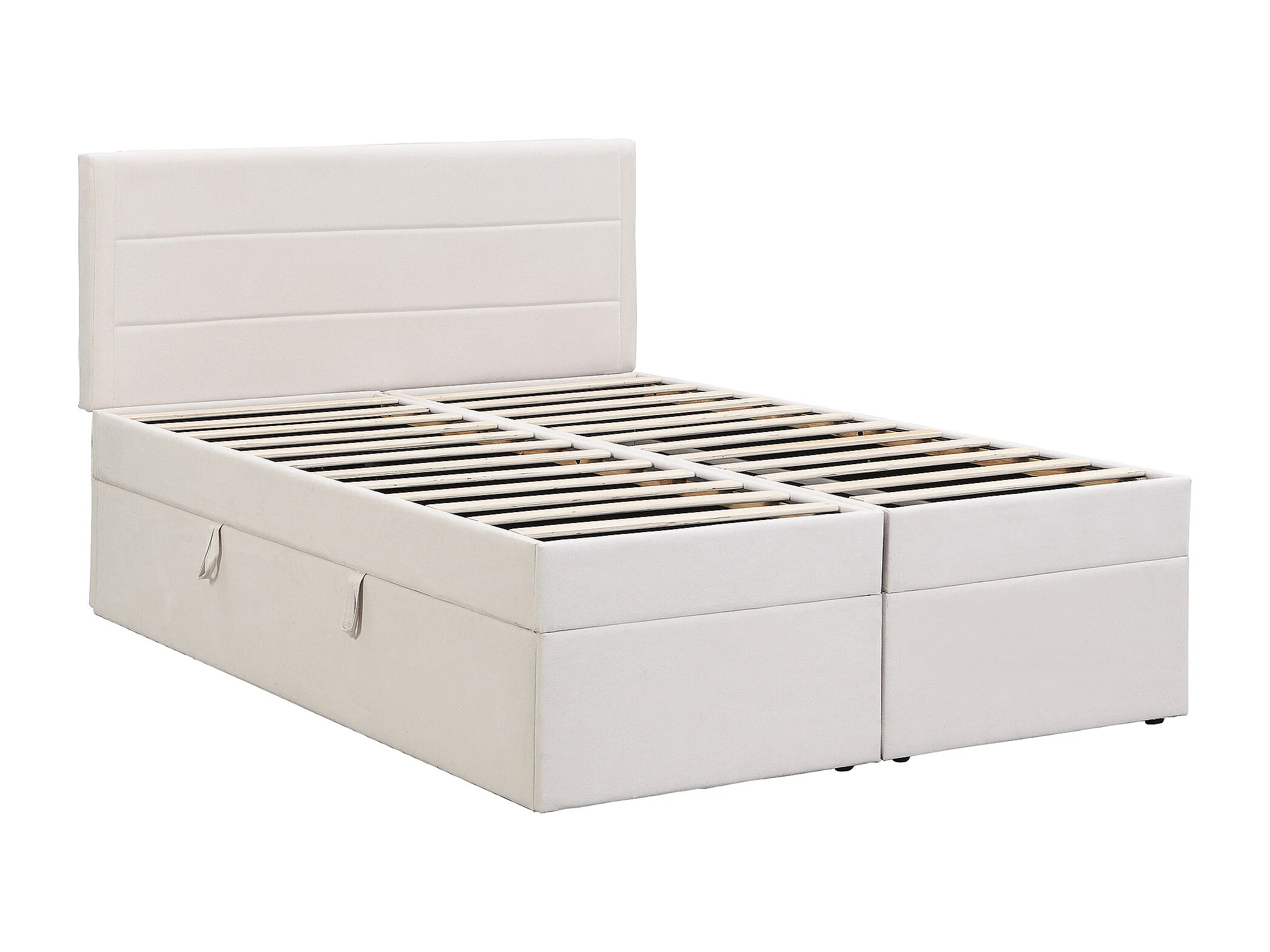 Lit coffre 140x200 cm beige, sommier à cadre métallique, grand espace de rangement à ouverture bilatérale