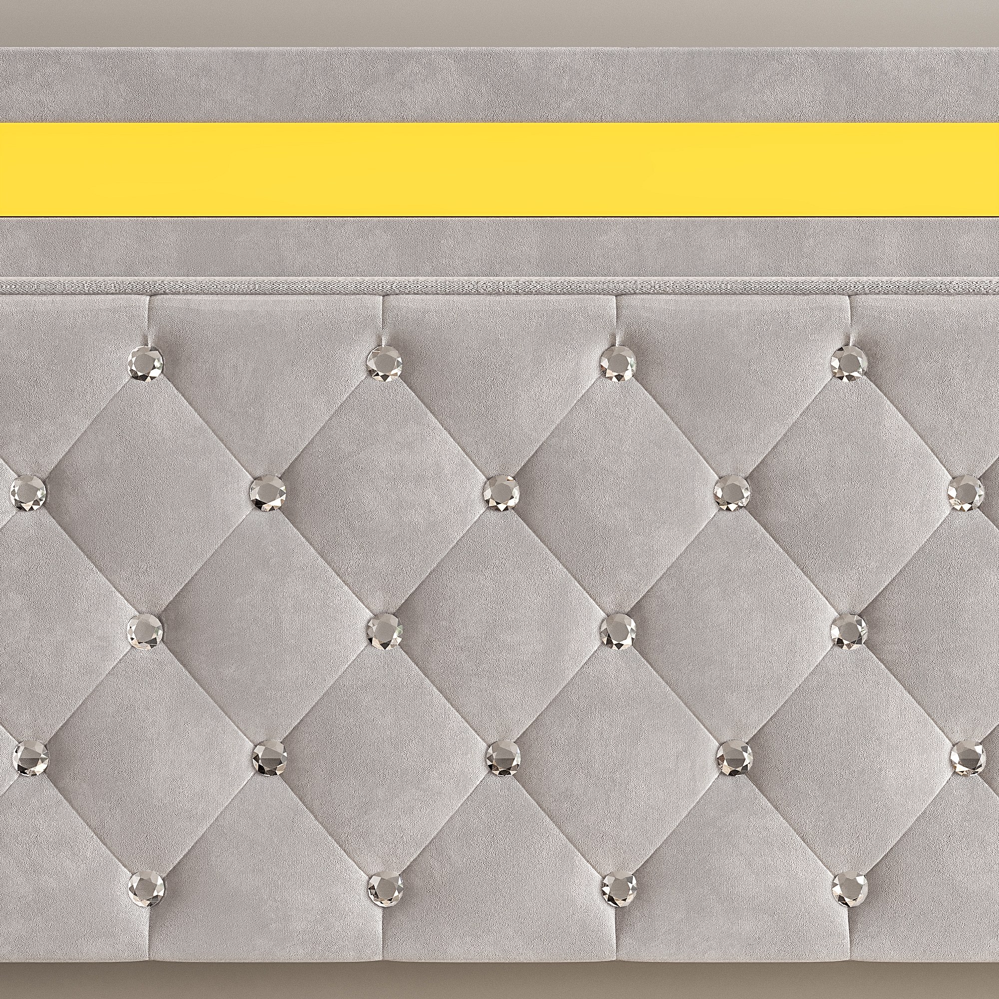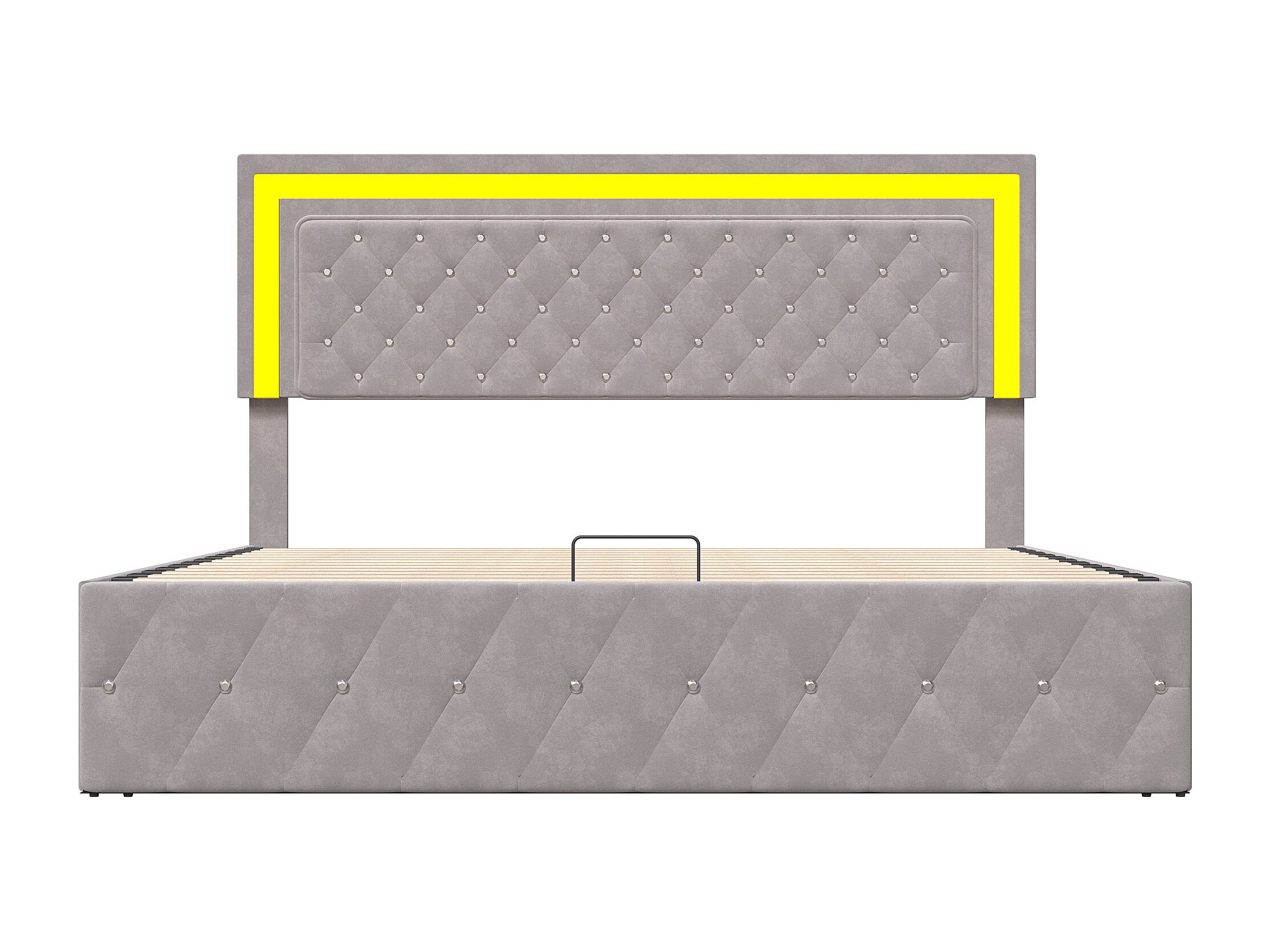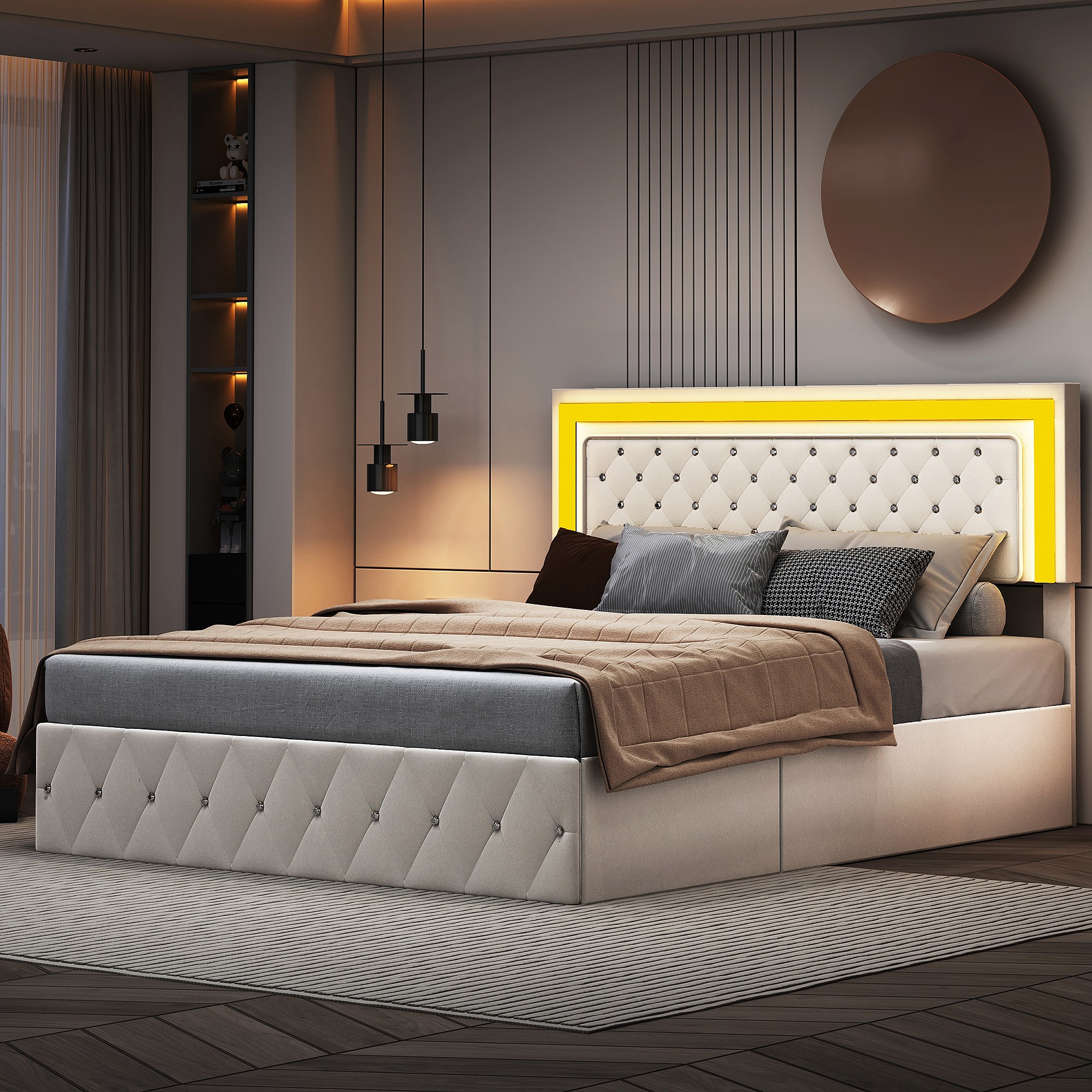 Lit coffre 140x200 cm en velours - avec LED et sommier à lattes - Lit double de rangement - avec tête de lit réglable en hauteur - Beige