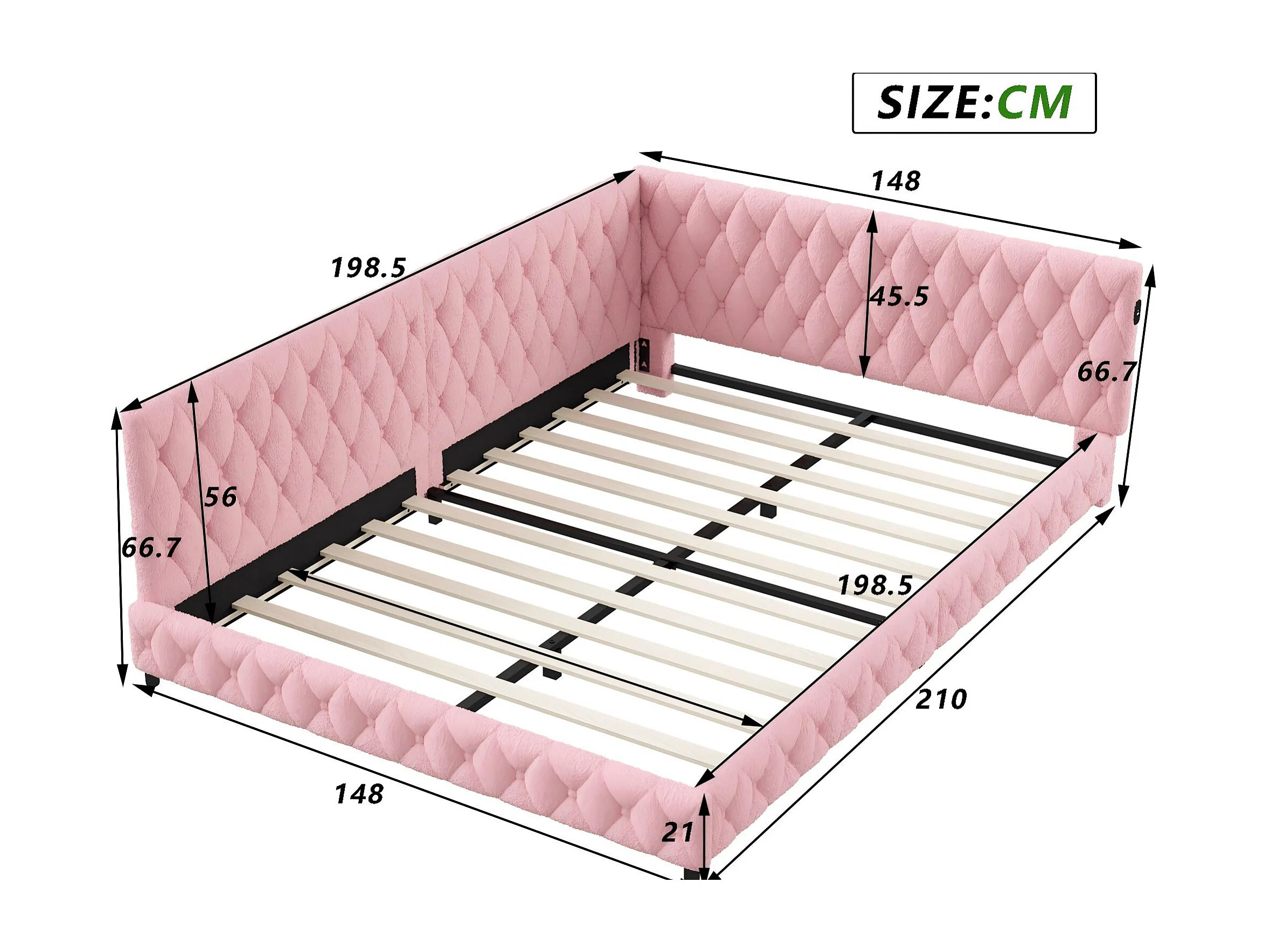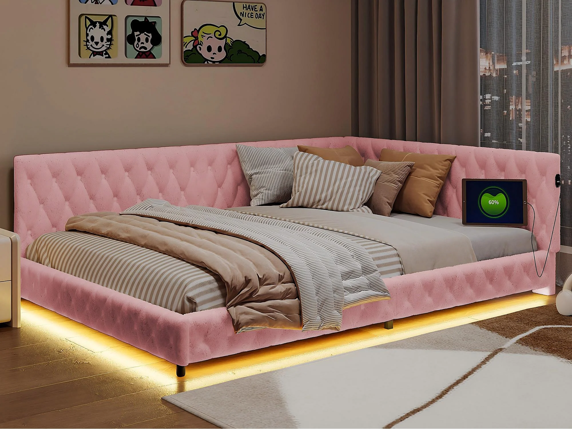 Lit coffre 140x200 cm LED RGB sous-lit, lit capitonné avec USB, sommier à lattes