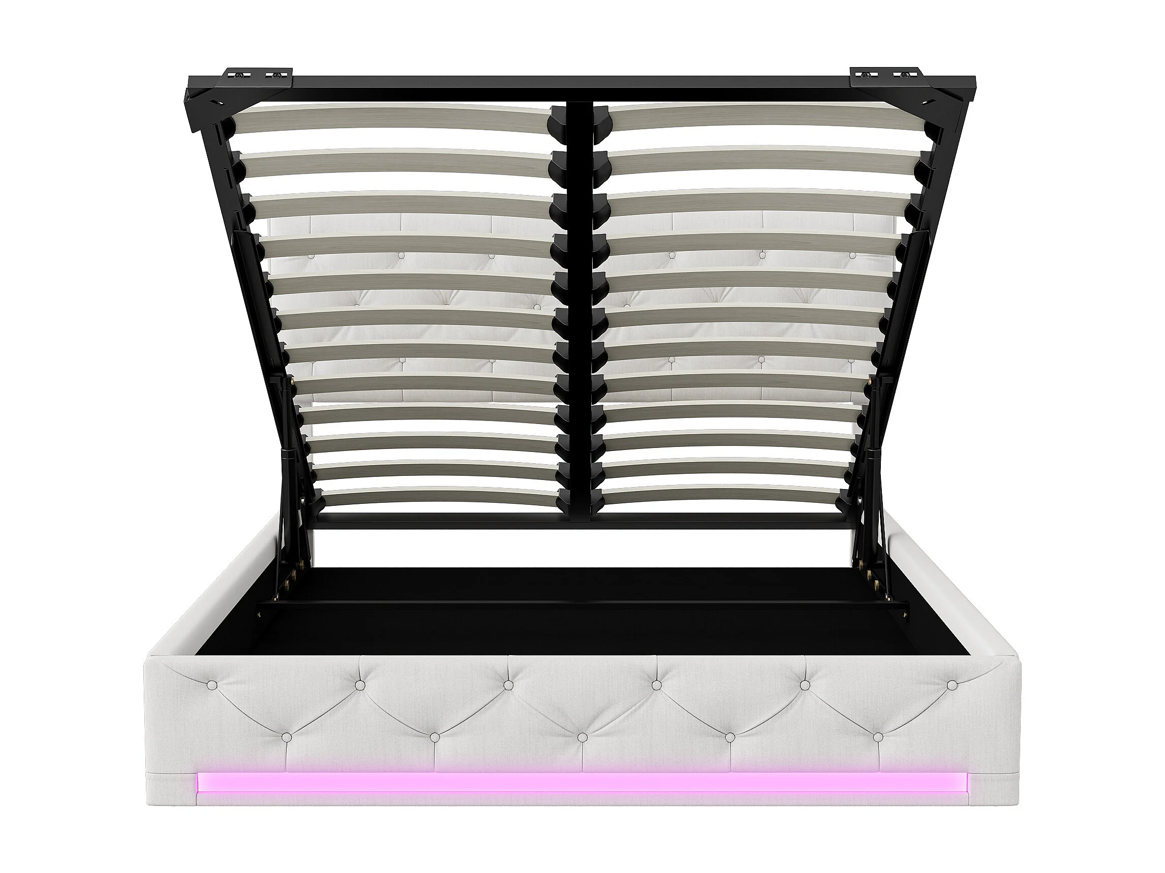 Lit coffre 140x200cm - avec éclairage LED et rangement hydraulique - tête de lit réglable en hauteur - lin - blanc cassé
