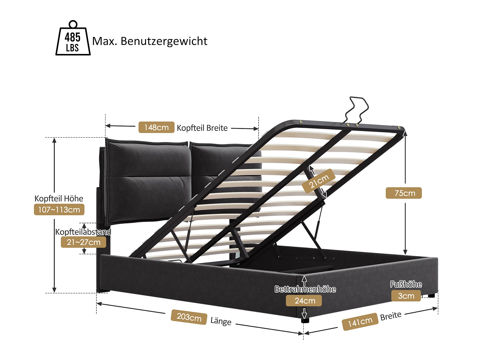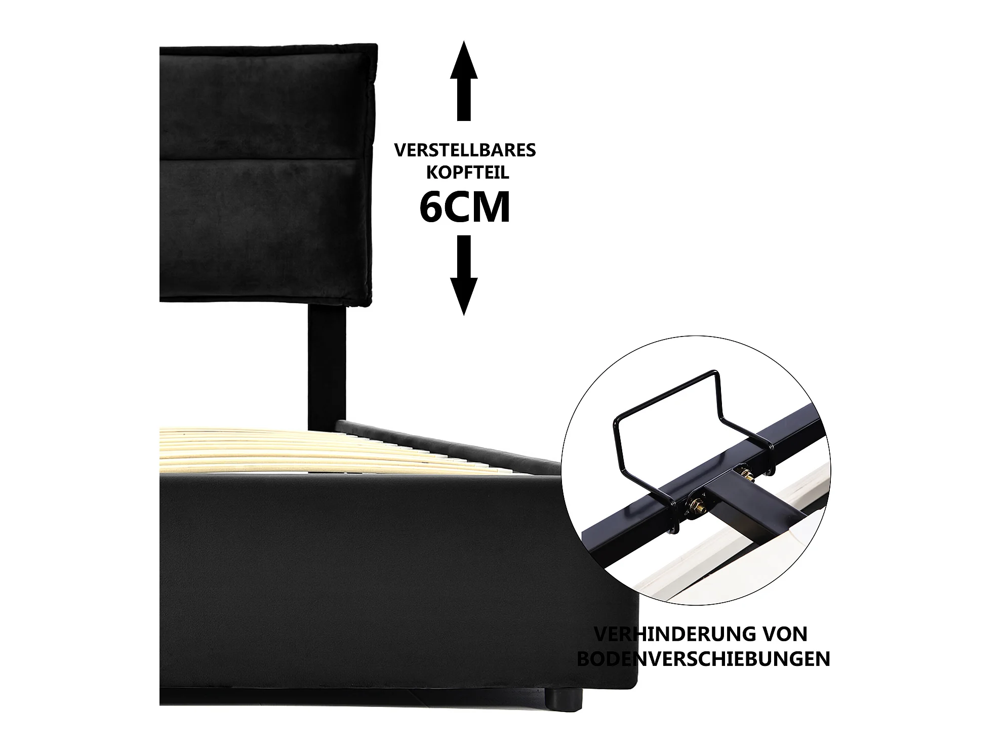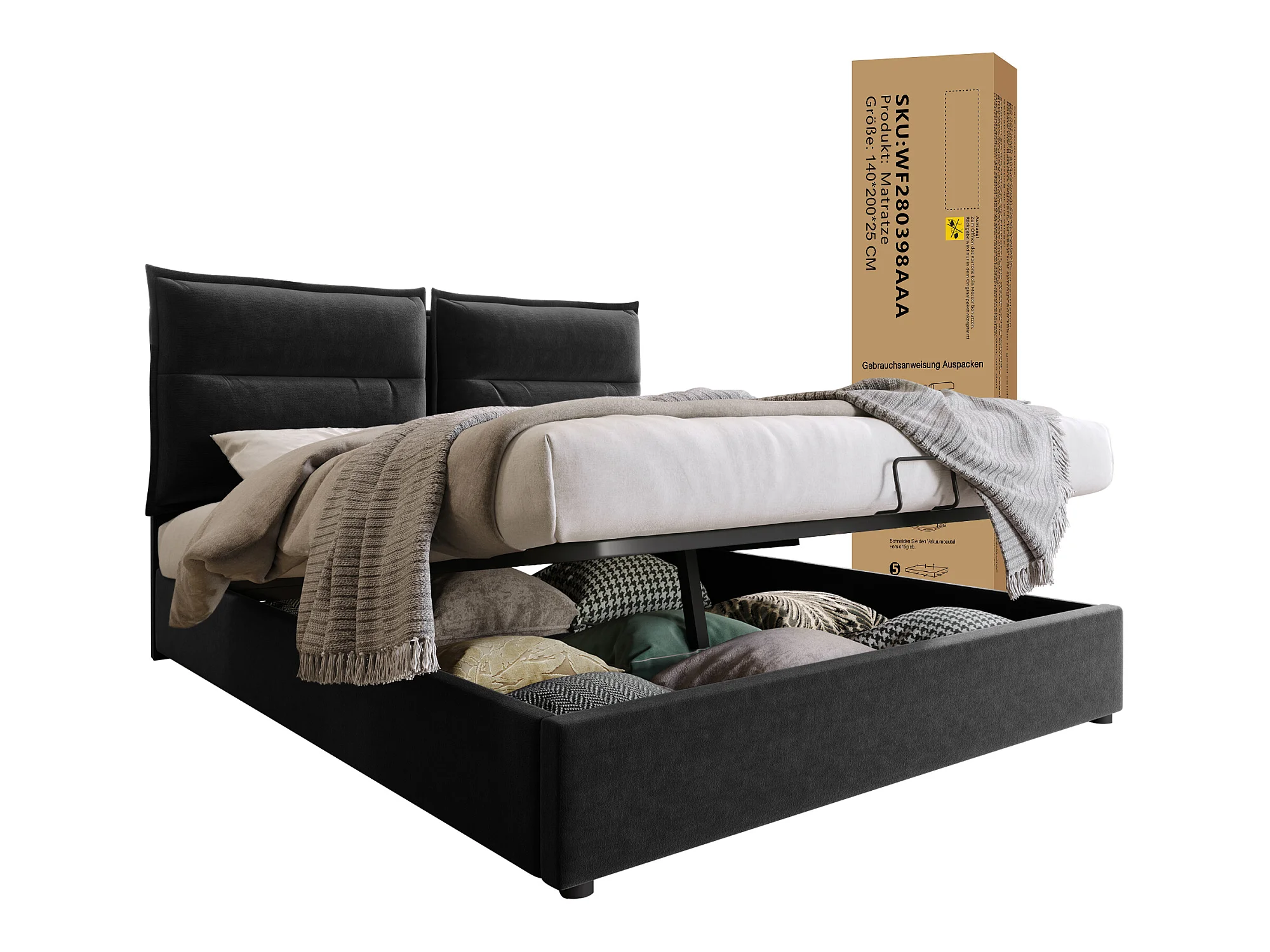 Lit coffre - 140x200cm - avec grand espace de rangement - noir - Sweiko