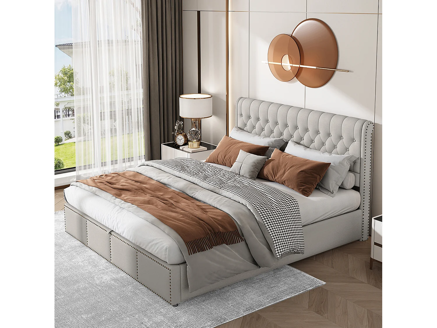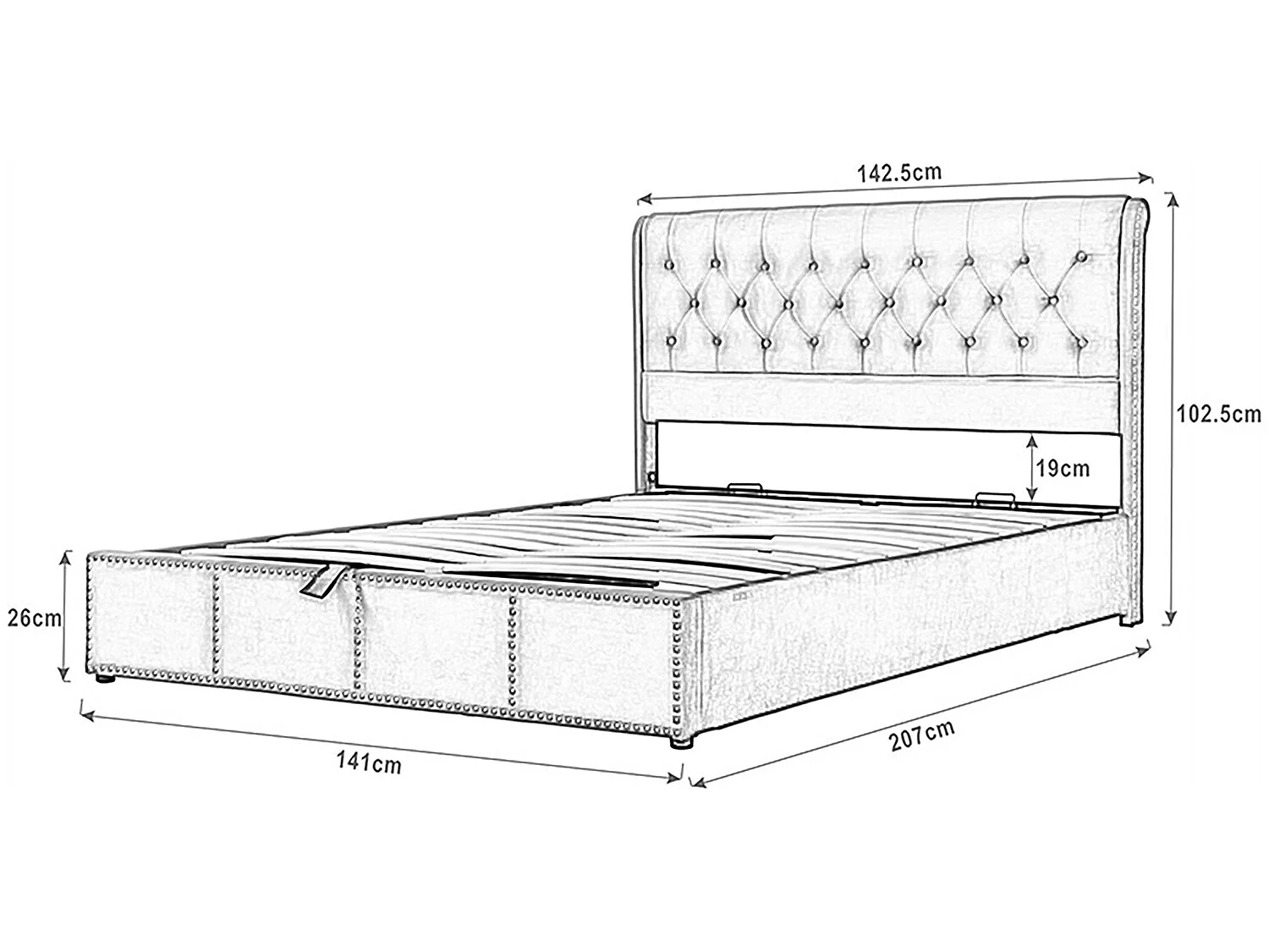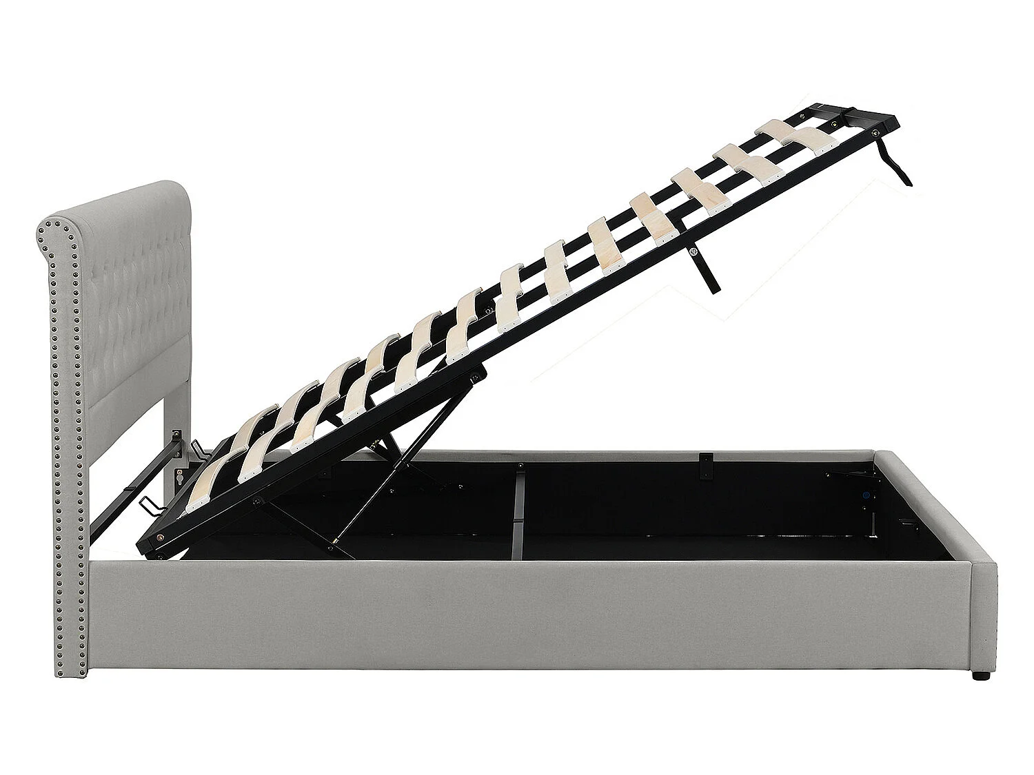 Lit coffre - 140x200cm - avec sommier à lattes - velours - gris - Sweiko