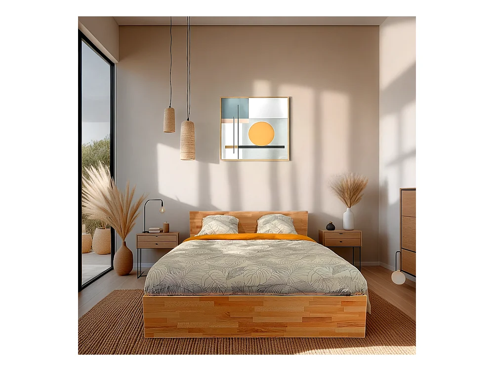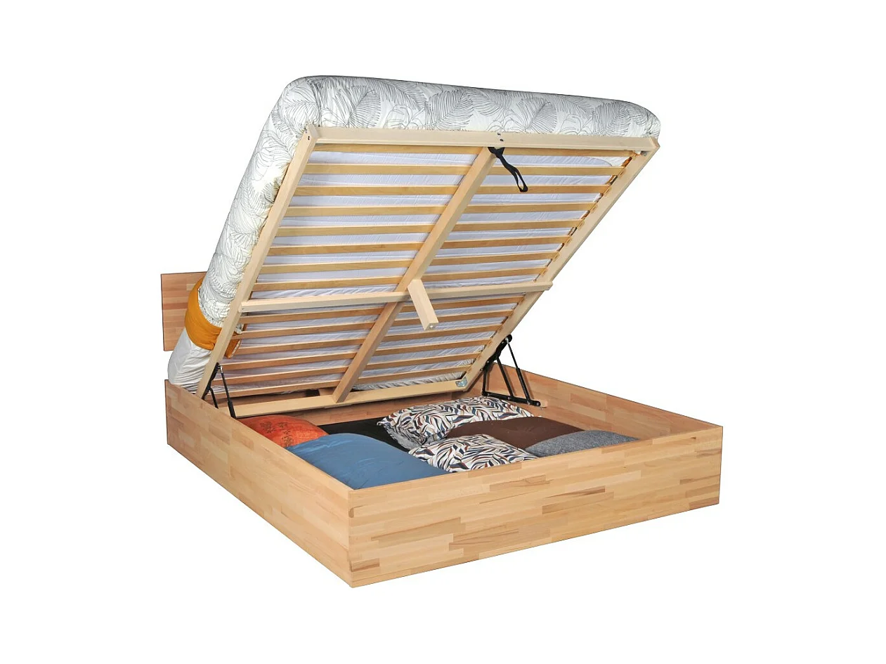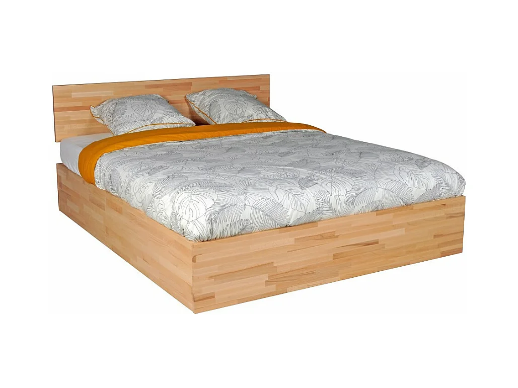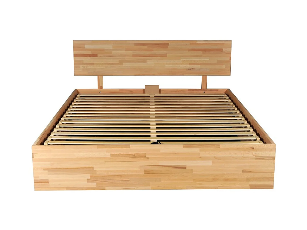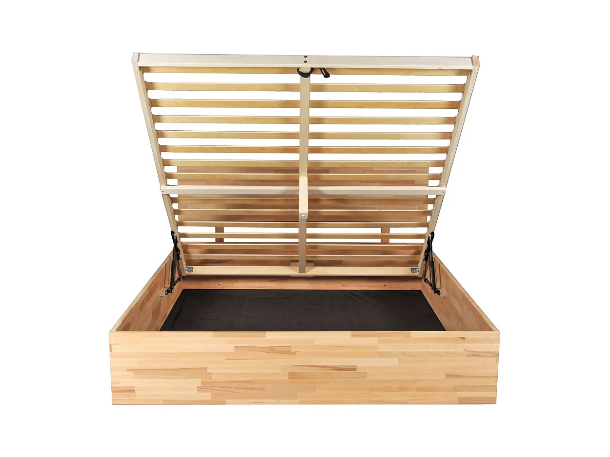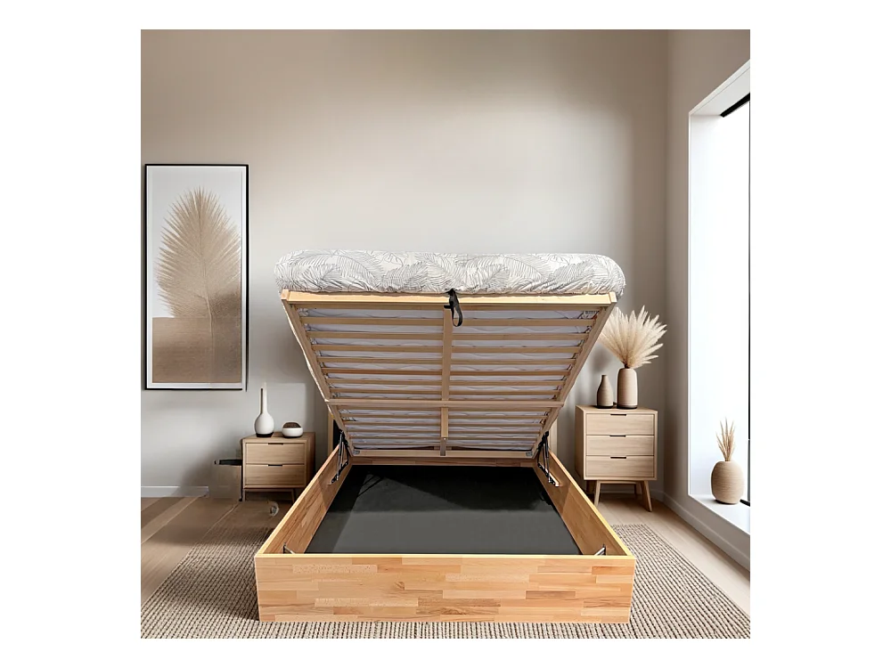 Lit coffre 140x200cm MILO avec tête de lit + sommier/ Hêtre massif huilé