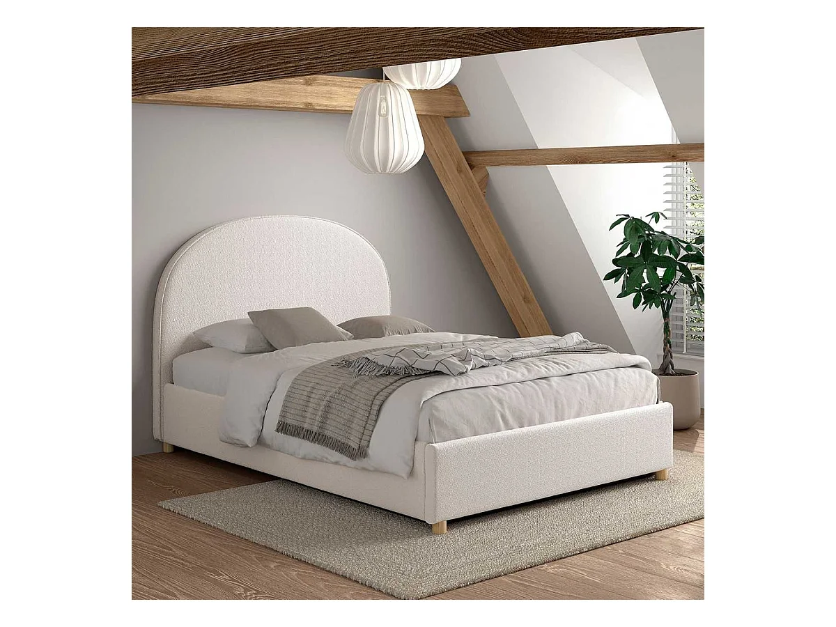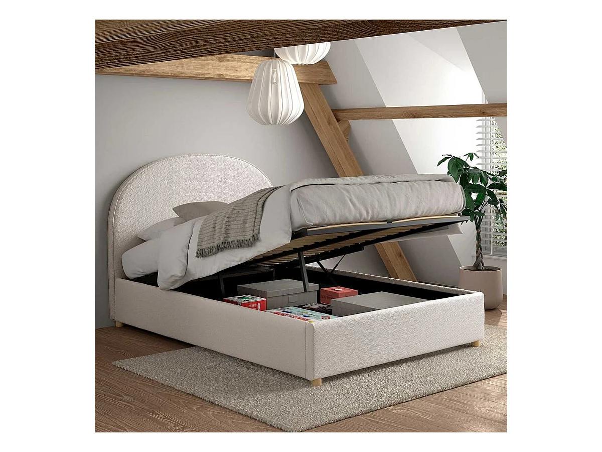 Lit coffre 140x200cm Tête de Lit Demi-Lune Tissu Bouclé Blanc - CONNIE