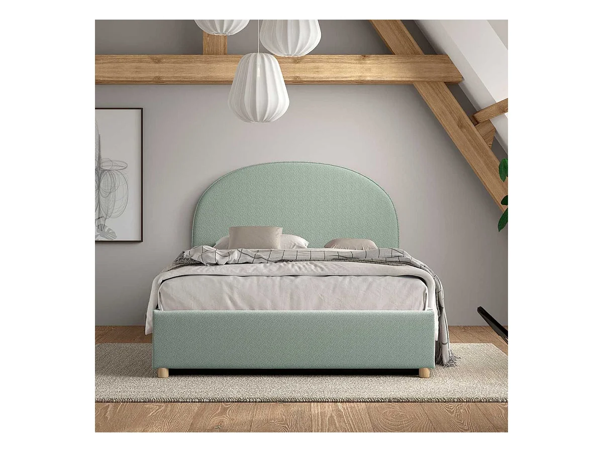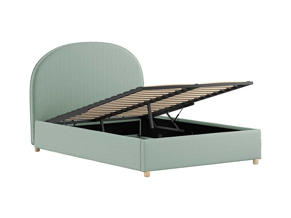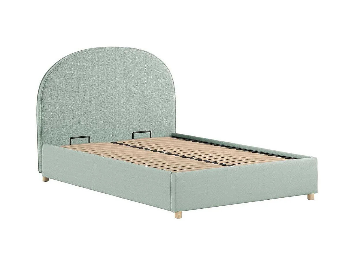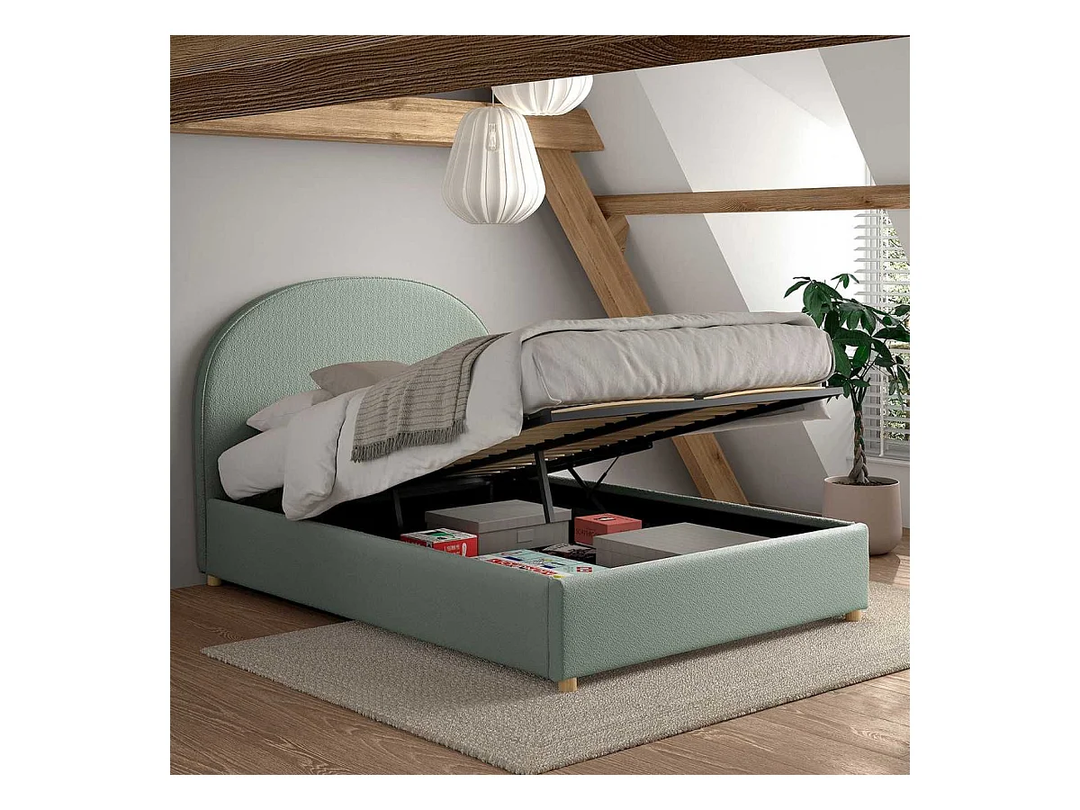 Lit coffre 140x200cm Tête de Lit Demi-Lune Tissu Bouclé Vert Olive - CONNIE
