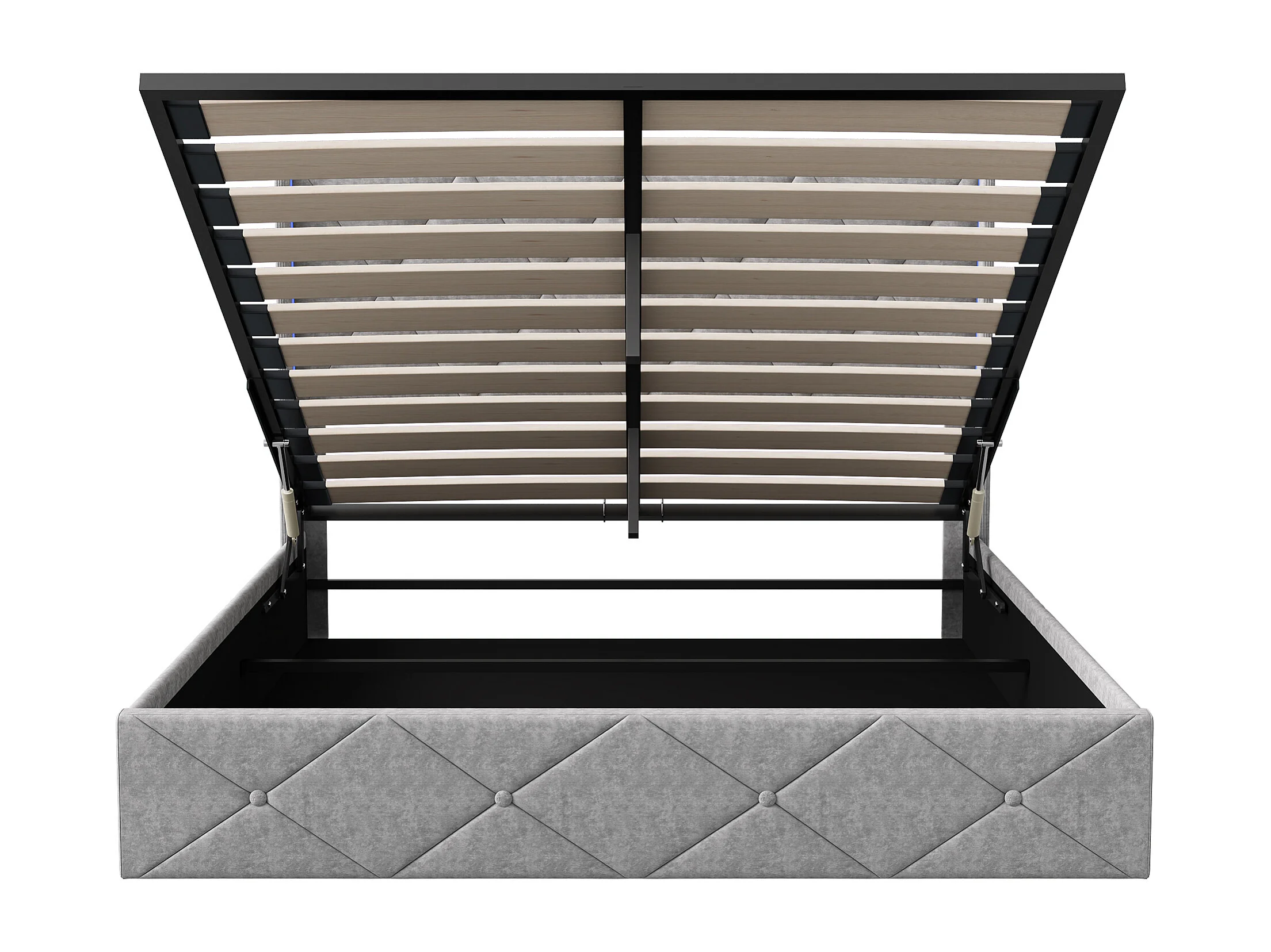 Lit coffre 160×200 cm avec LED et tête de lit – Capitonné avec sommier à lattes, gris