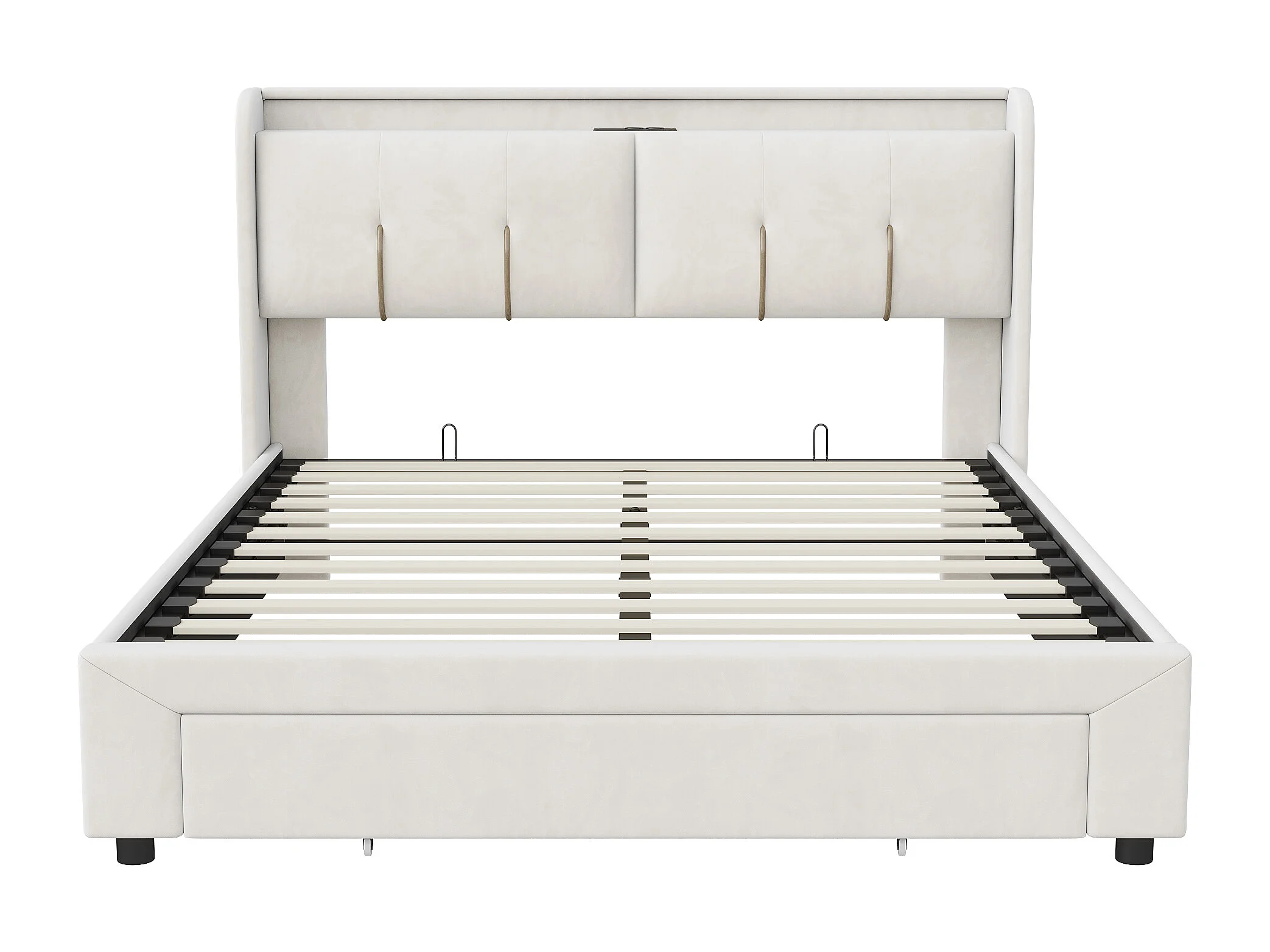 Lit coffre 160×200 cm avec LED, sommier à lattes et USB Type-C – Capitonné velours blanc