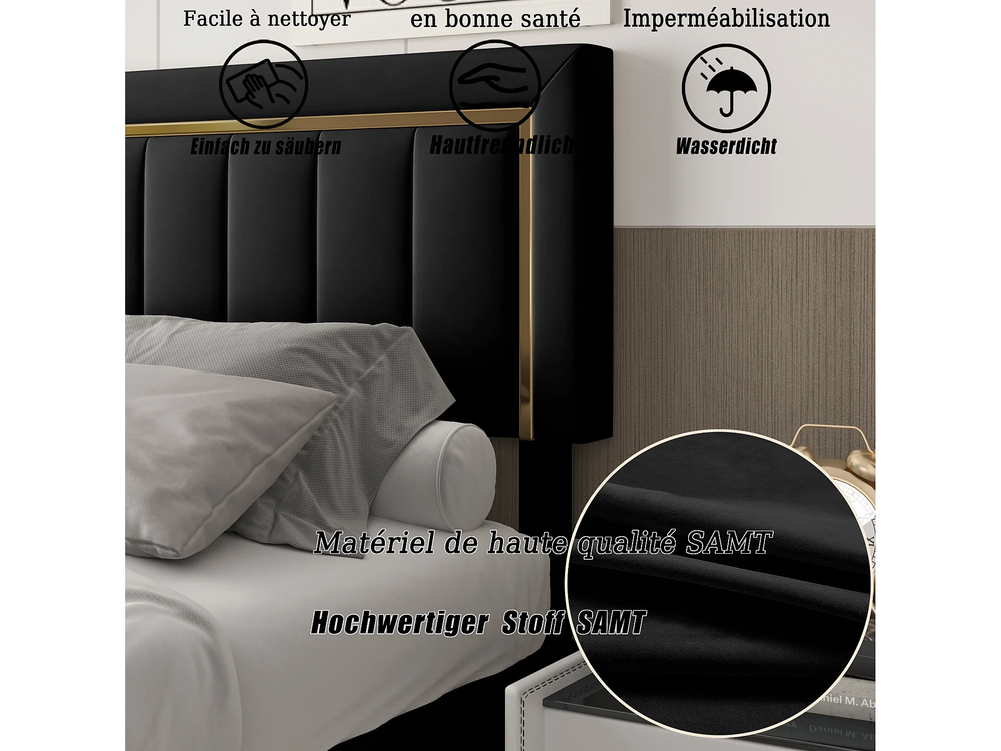 Lit coffre 160×200 cm avec rangement – Cadre et tête de lit, velours noir