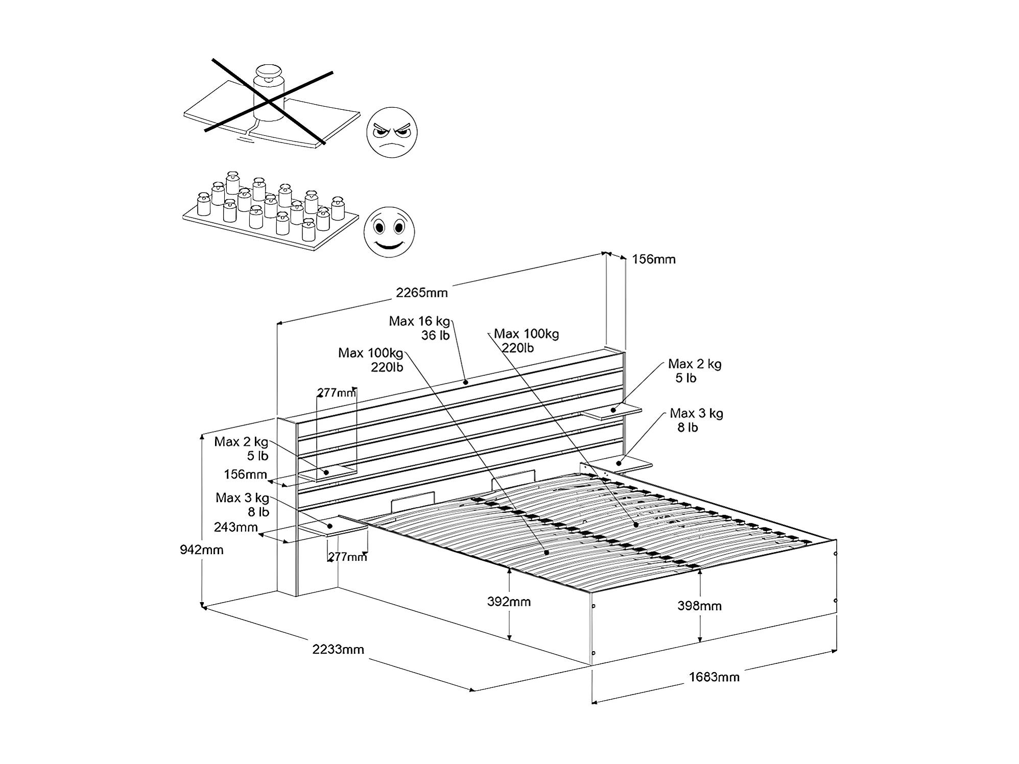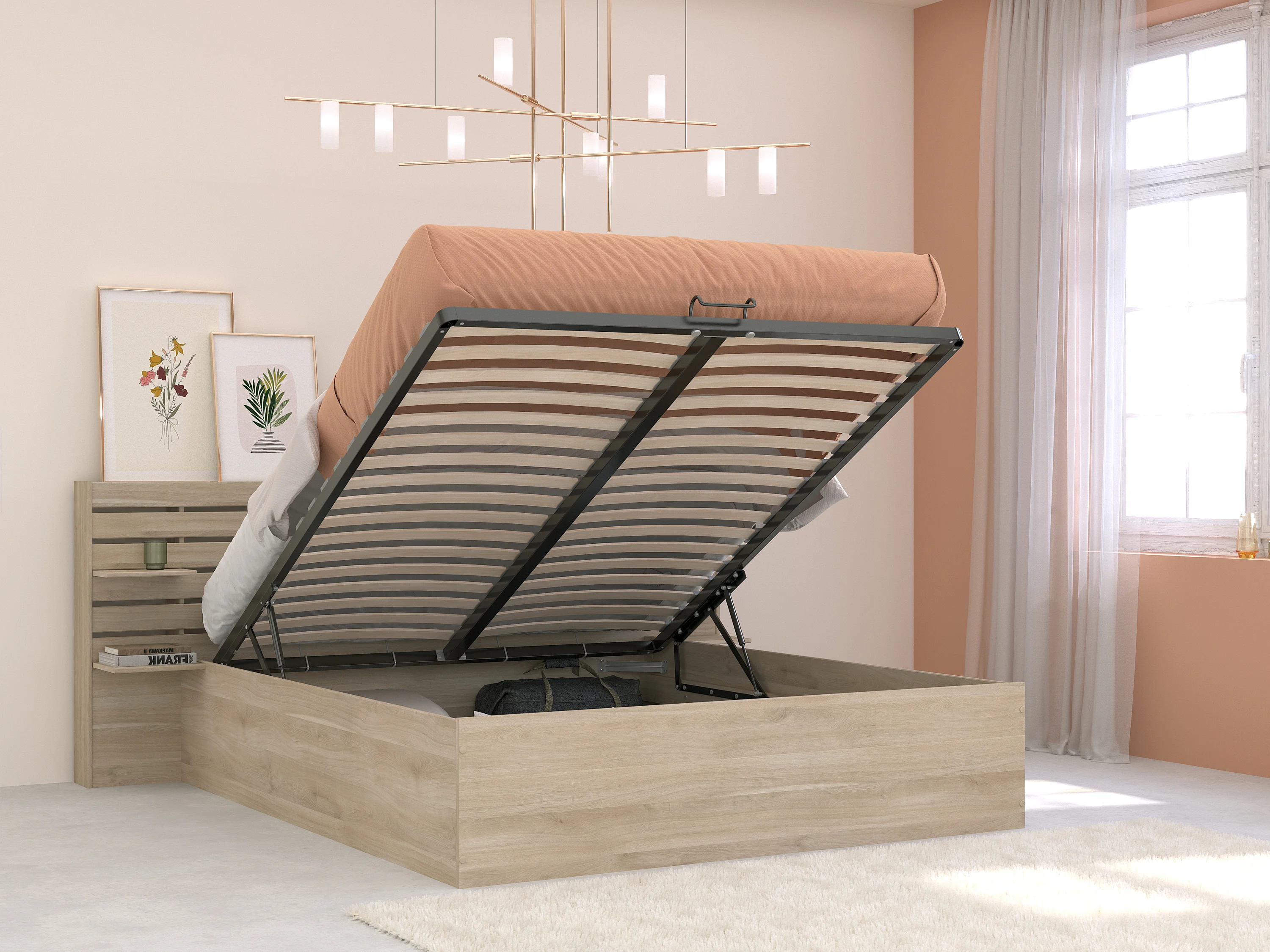 Lit coffre 160 x 200 cm avec rangements - Coloris : Naturel - TENALIA III
