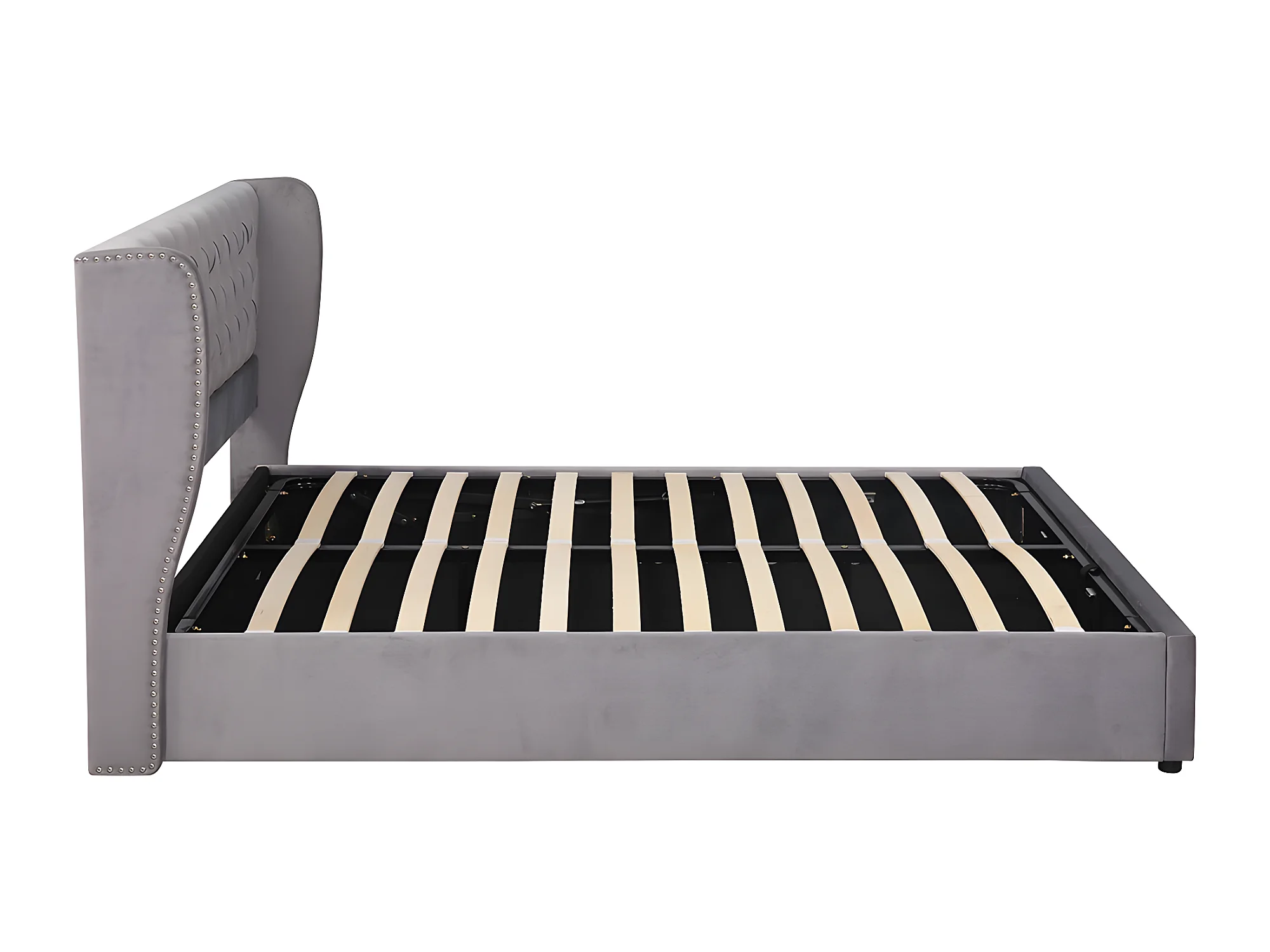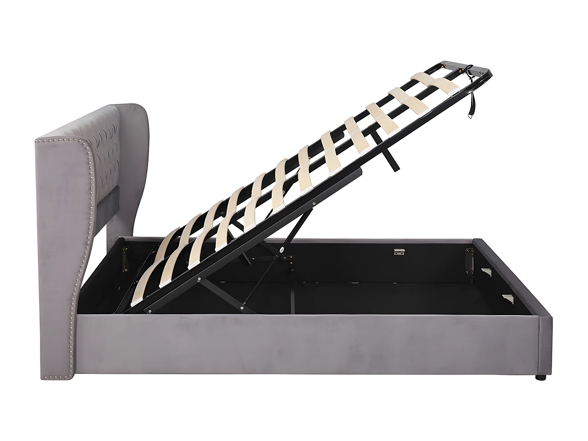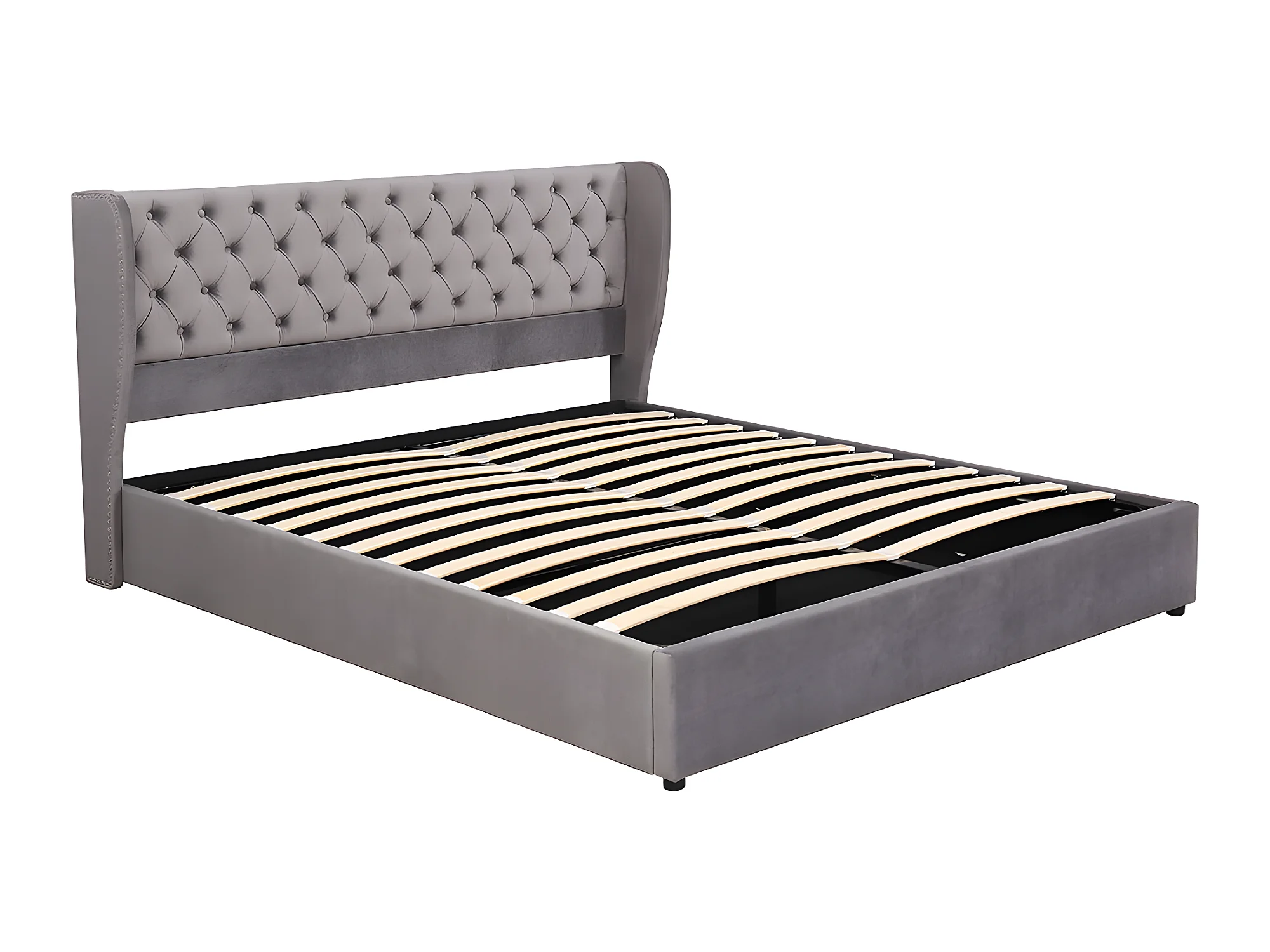 Lit coffre - 160 x 200 cm - avec sommier à lattes relevable - Gris - Sweiko
