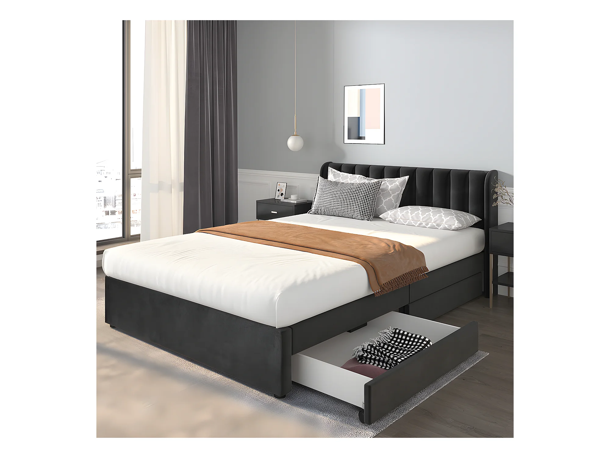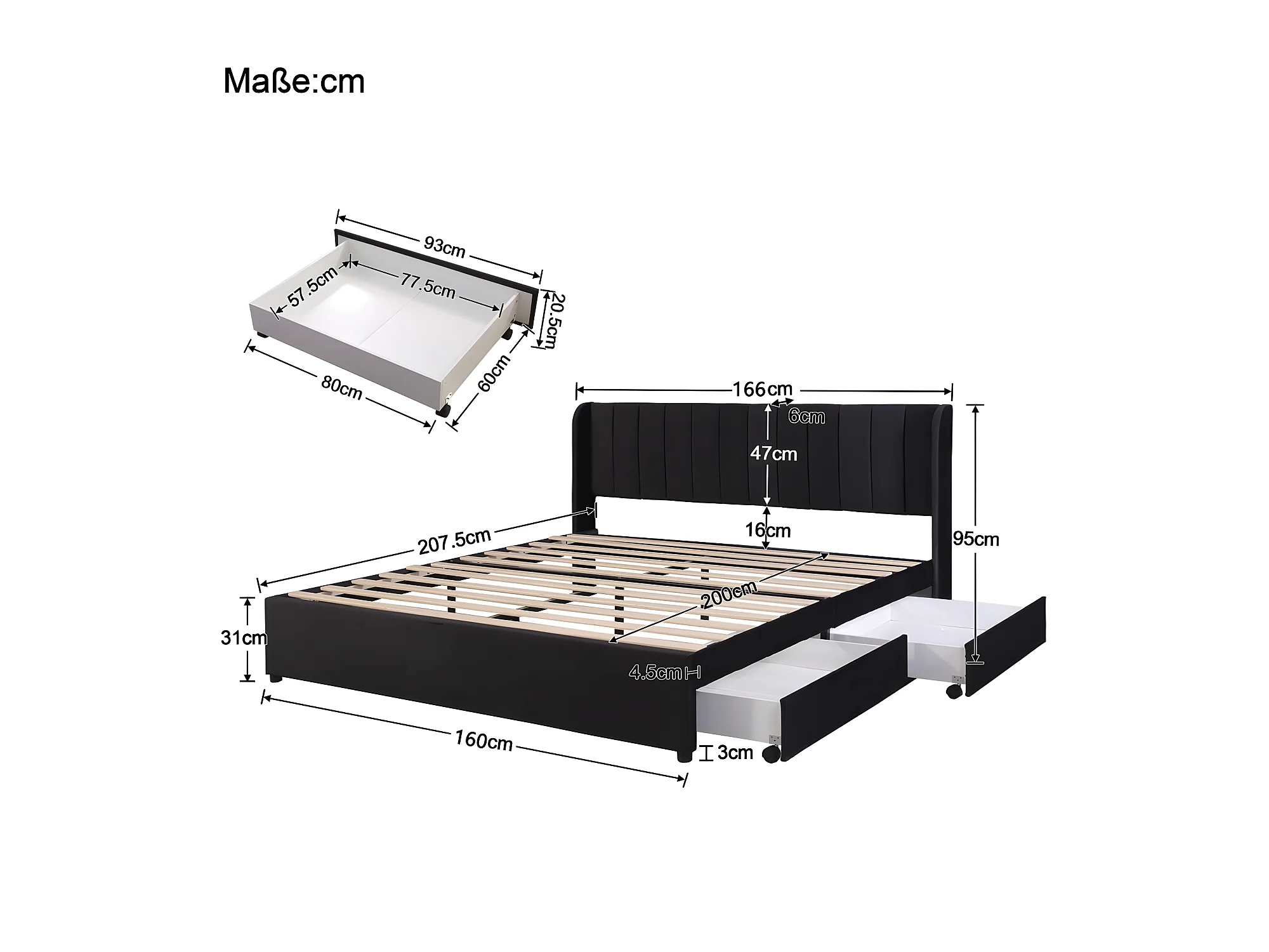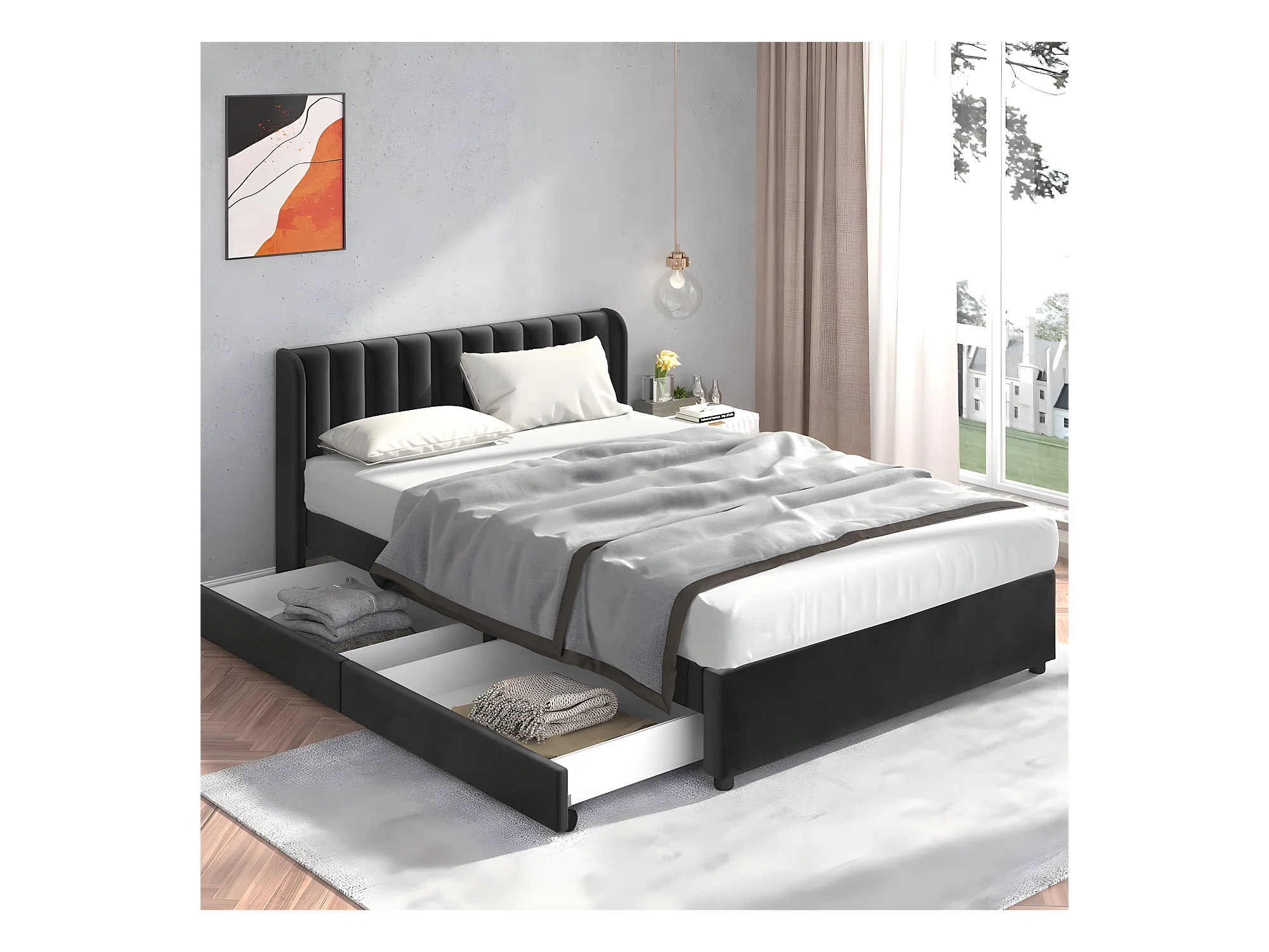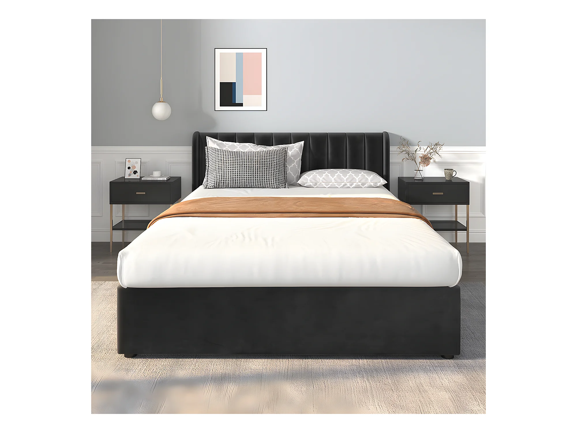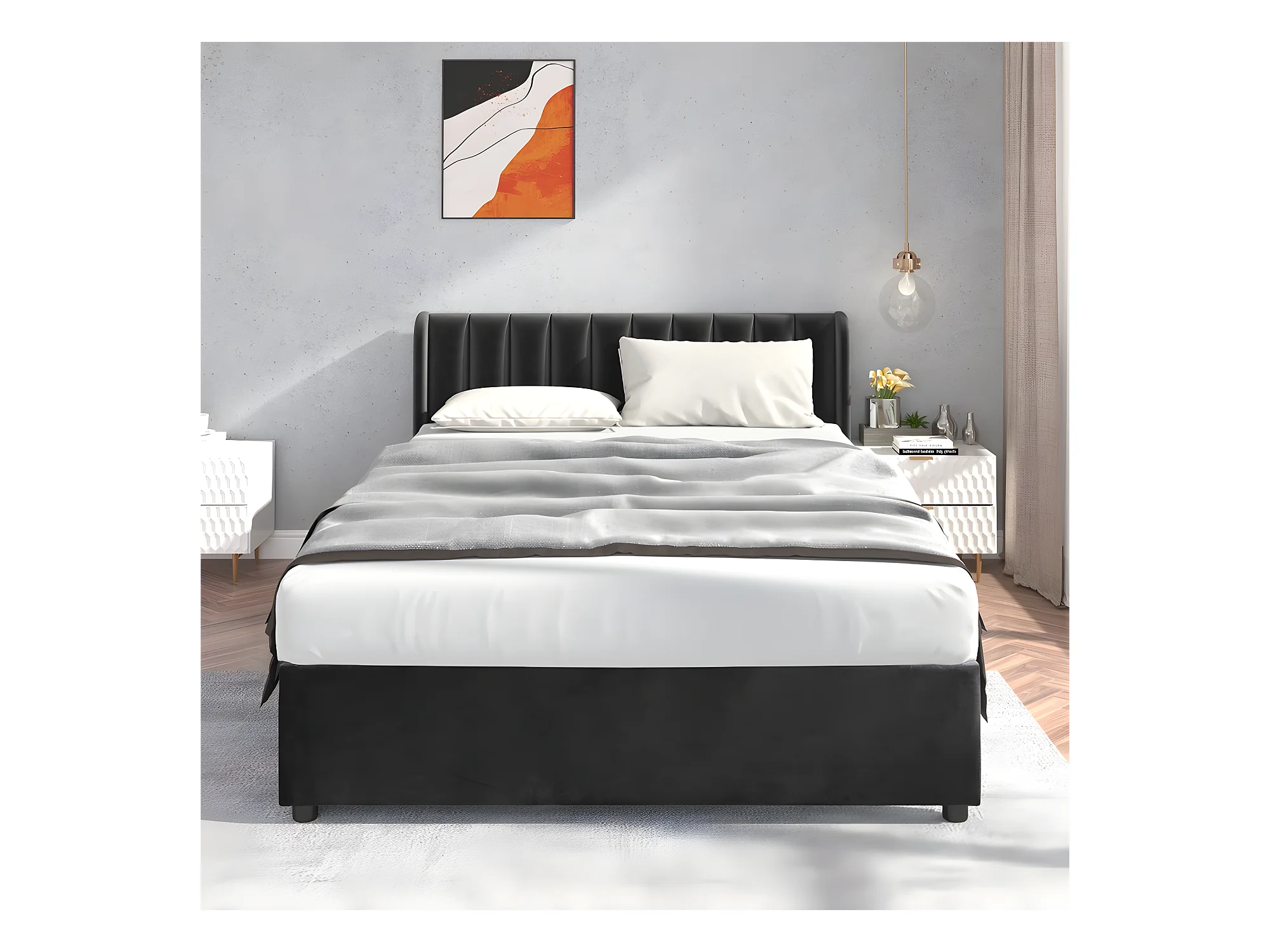 Lit coffre - 160 x 200 cm - avec sommier à lattes relevable - Gris - Sweiko