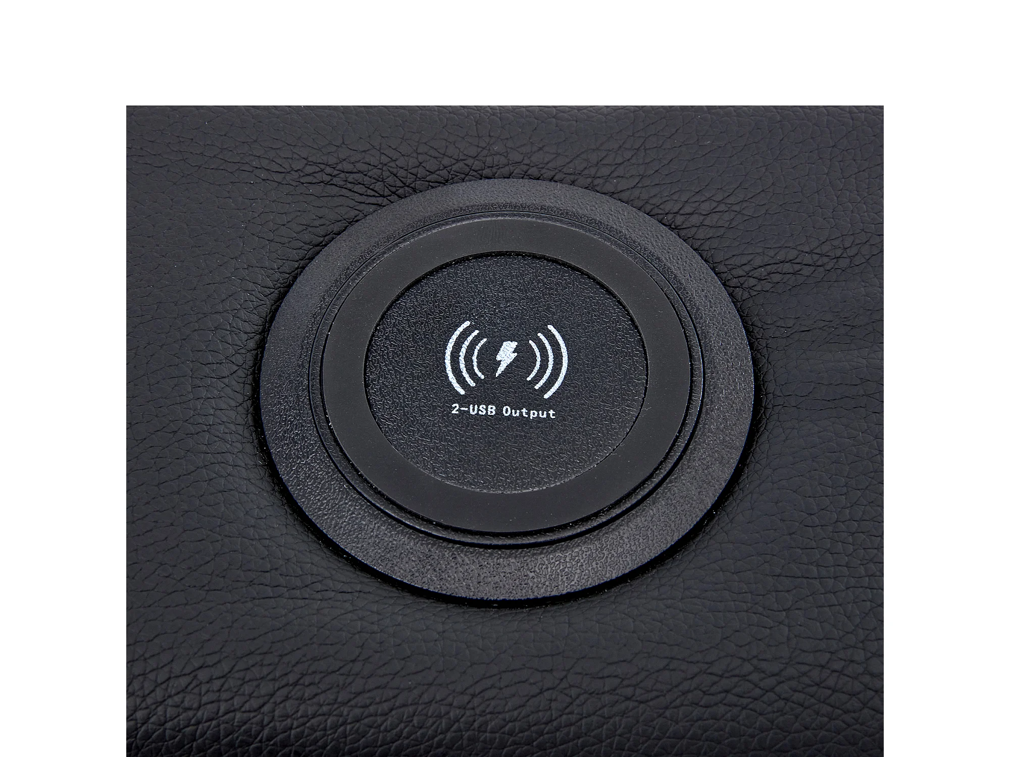 Lit coffre 160 x 200 cm, port USB, chargement sans fil et filaire, LED et rangement, PU noir, sans matelas