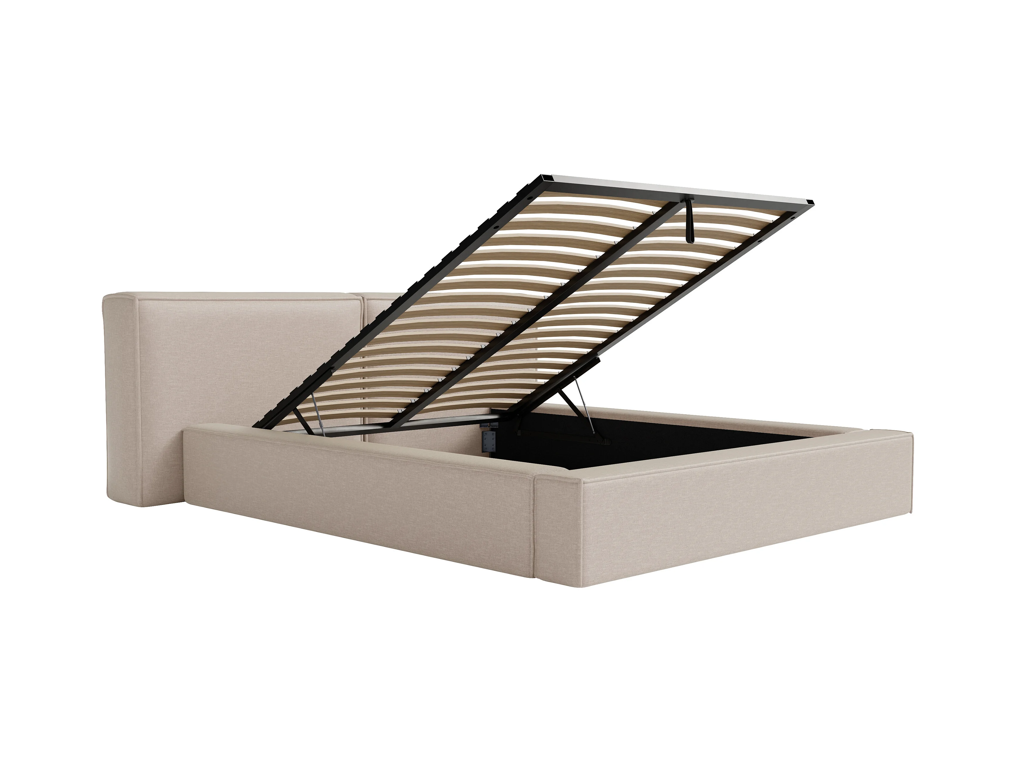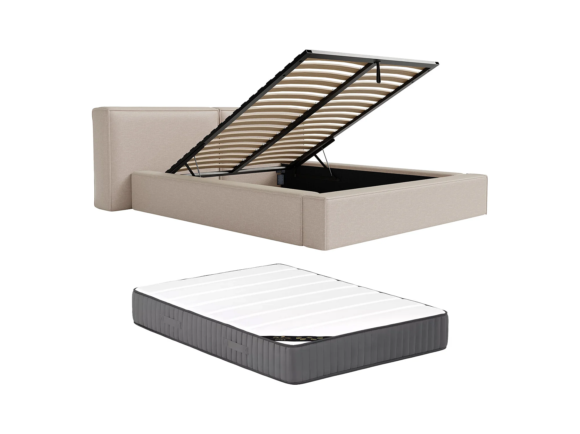Lit coffre 160 x 200 cm - Tissu - Beige + Matelas - TIMANO de Pascal Morabito