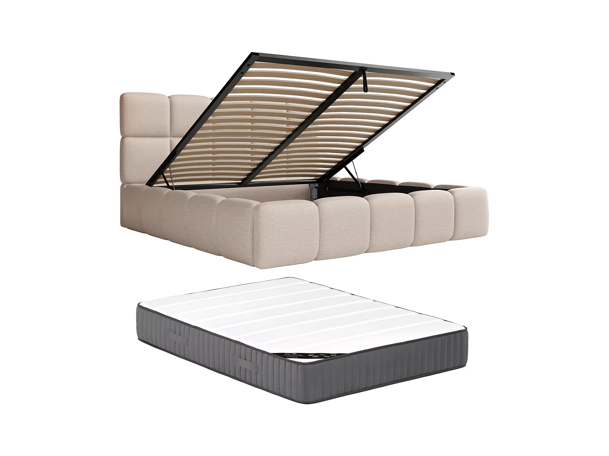 Lit coffre 160 x 200 cm - Tissu chiné - Beige + Matelas - DAMADO de Pascal Morabito