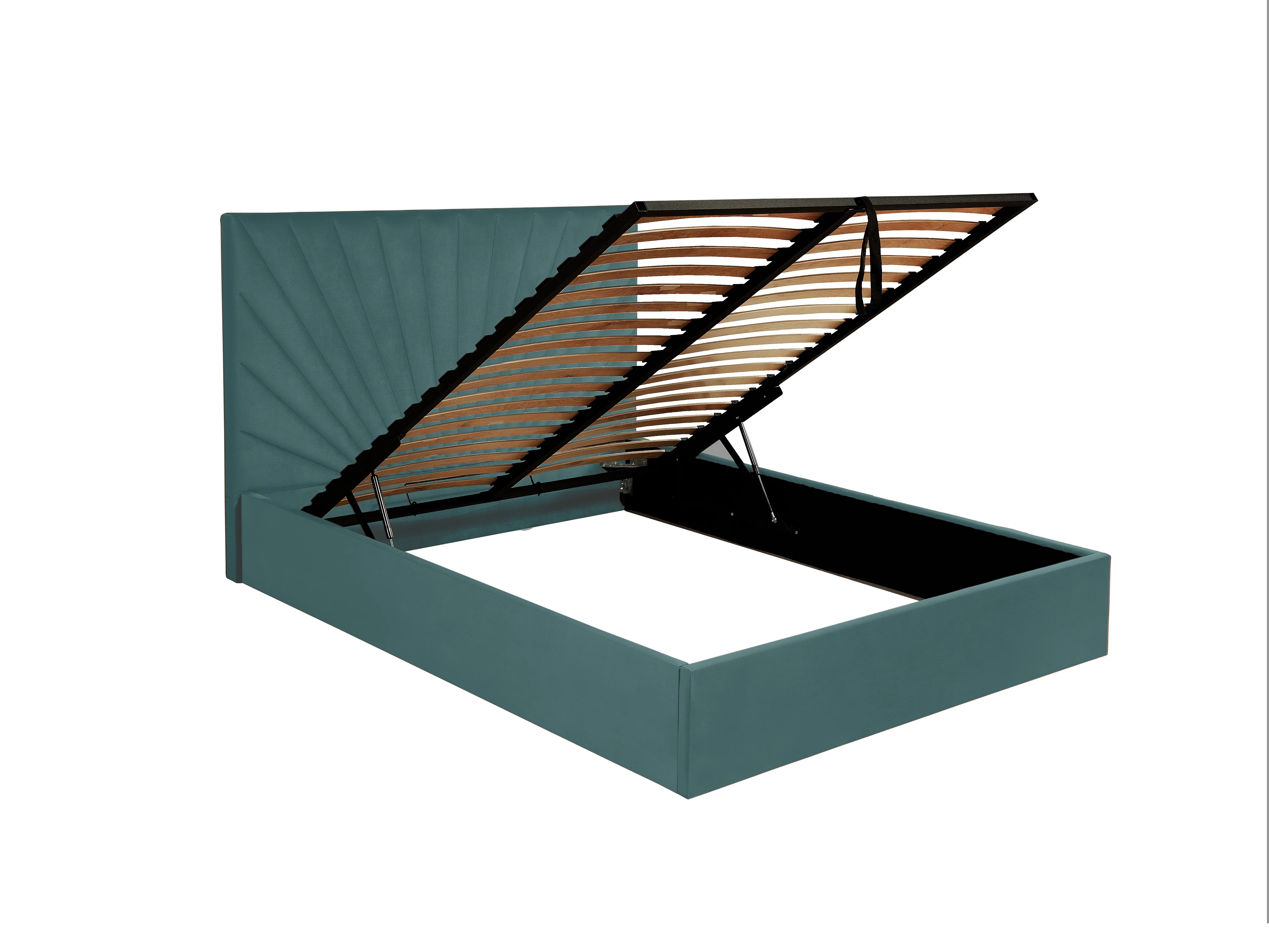 Lit coffre 160 x 200 cm - Velours - Bleu canard + Matelas - RILIODA de Pascal Morabito