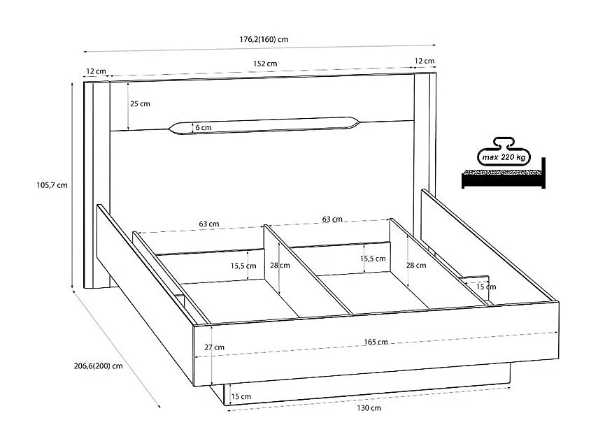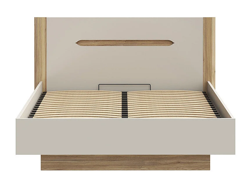 Lit coffre 160 x 200 décor chêne et sable mat avec sommier - ROSALIE
