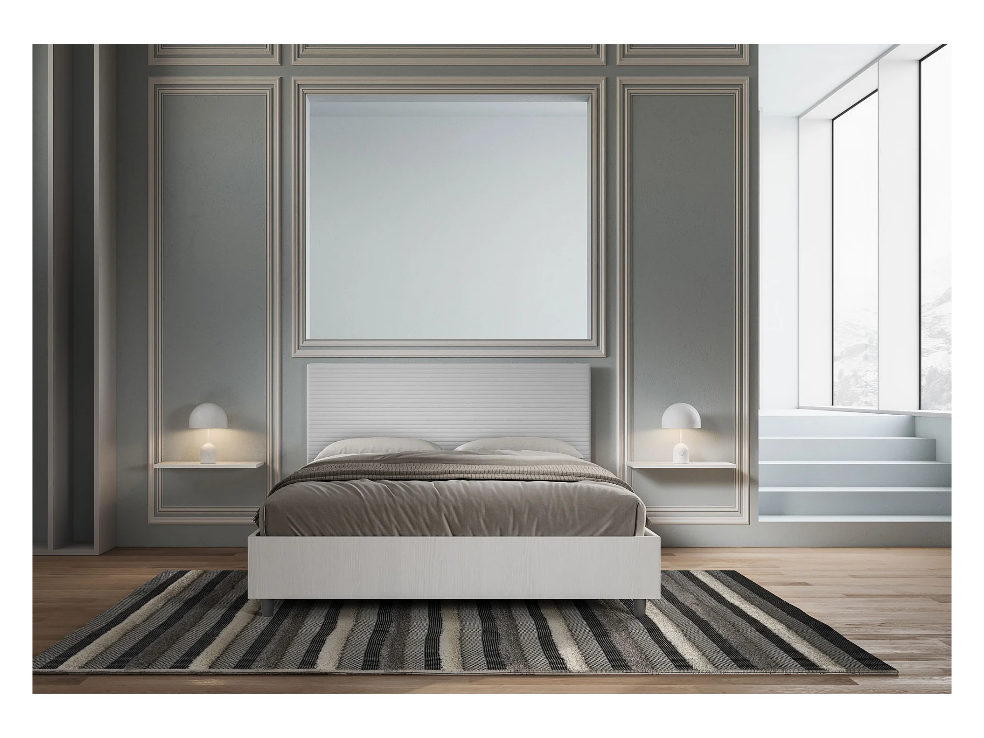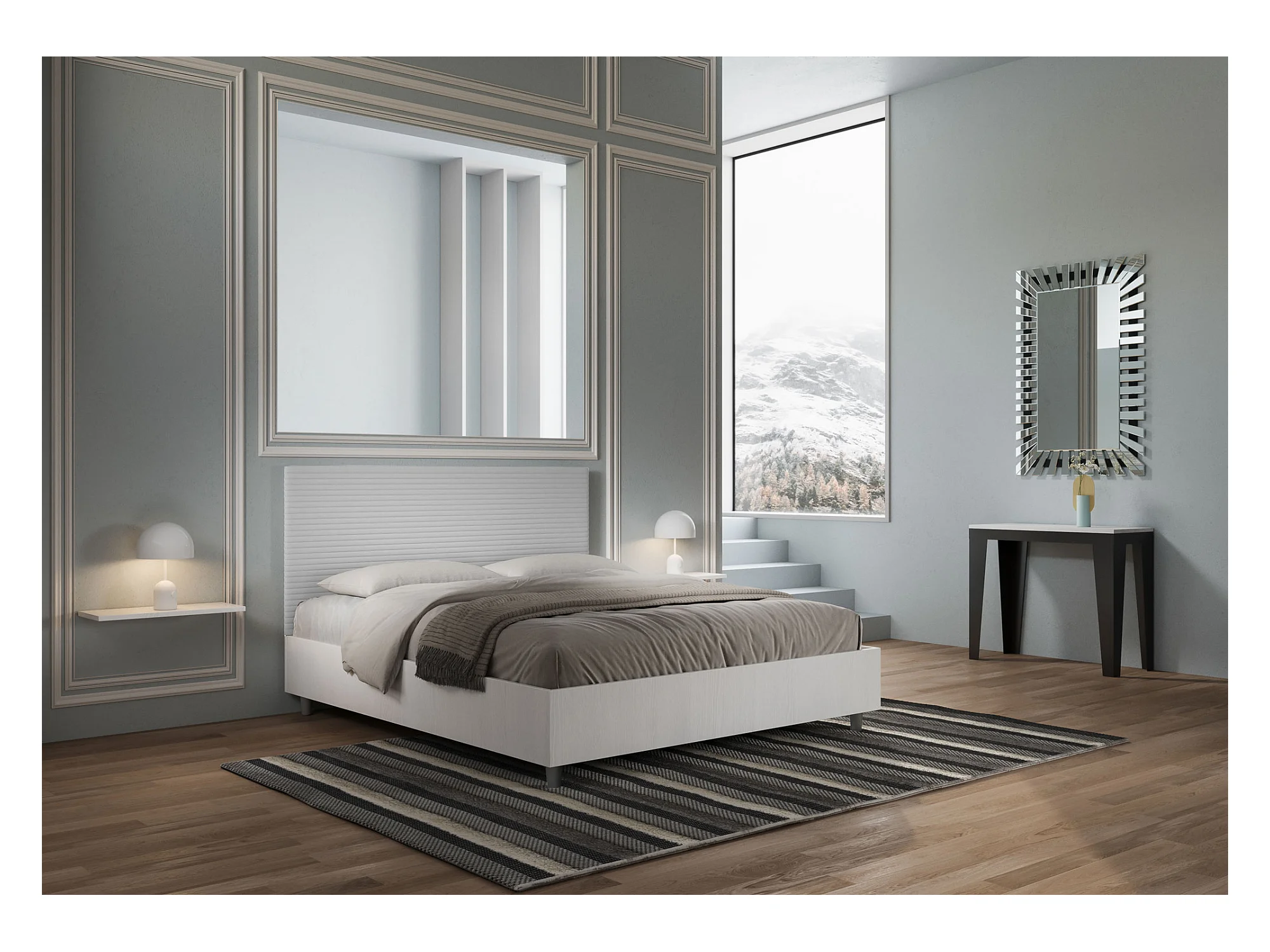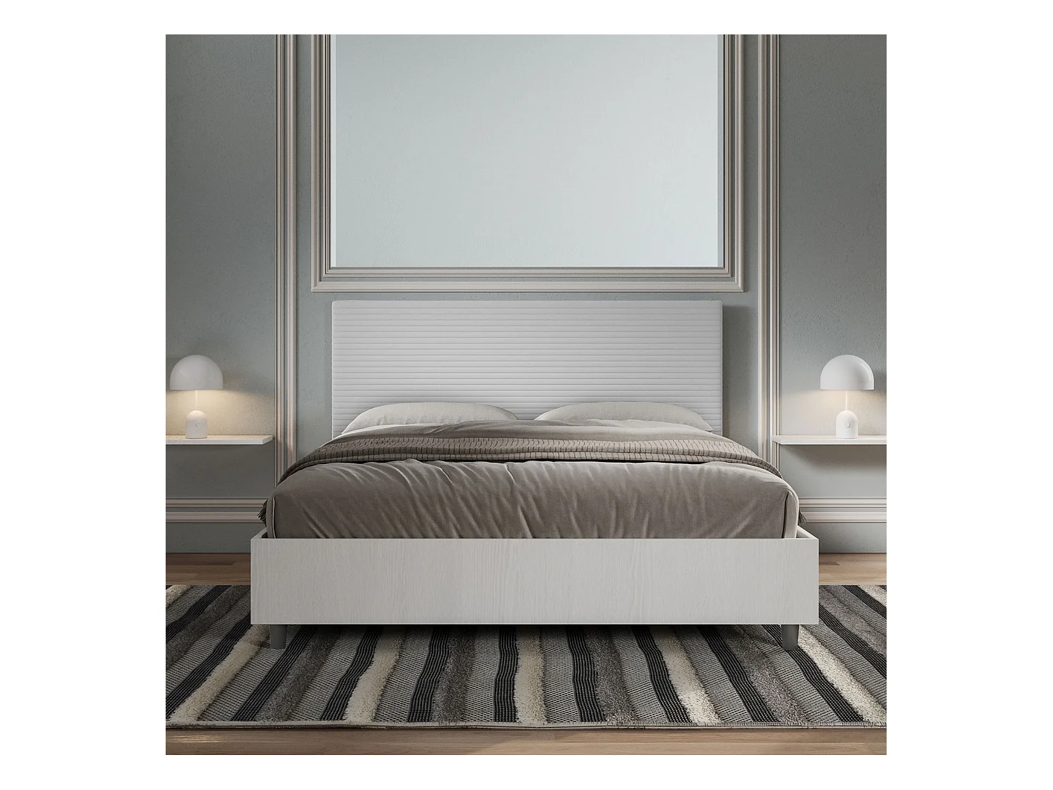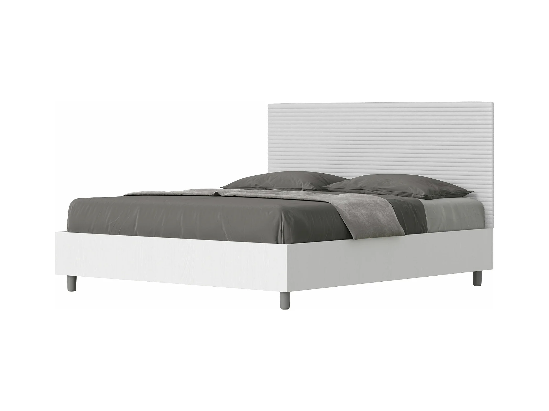 Lit coffre 160x190 structure frêne blanc tête de lit similicuir blanc Level