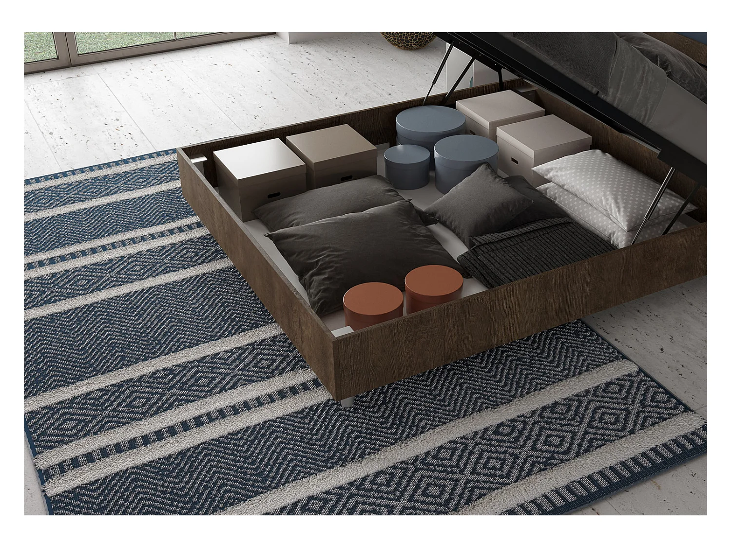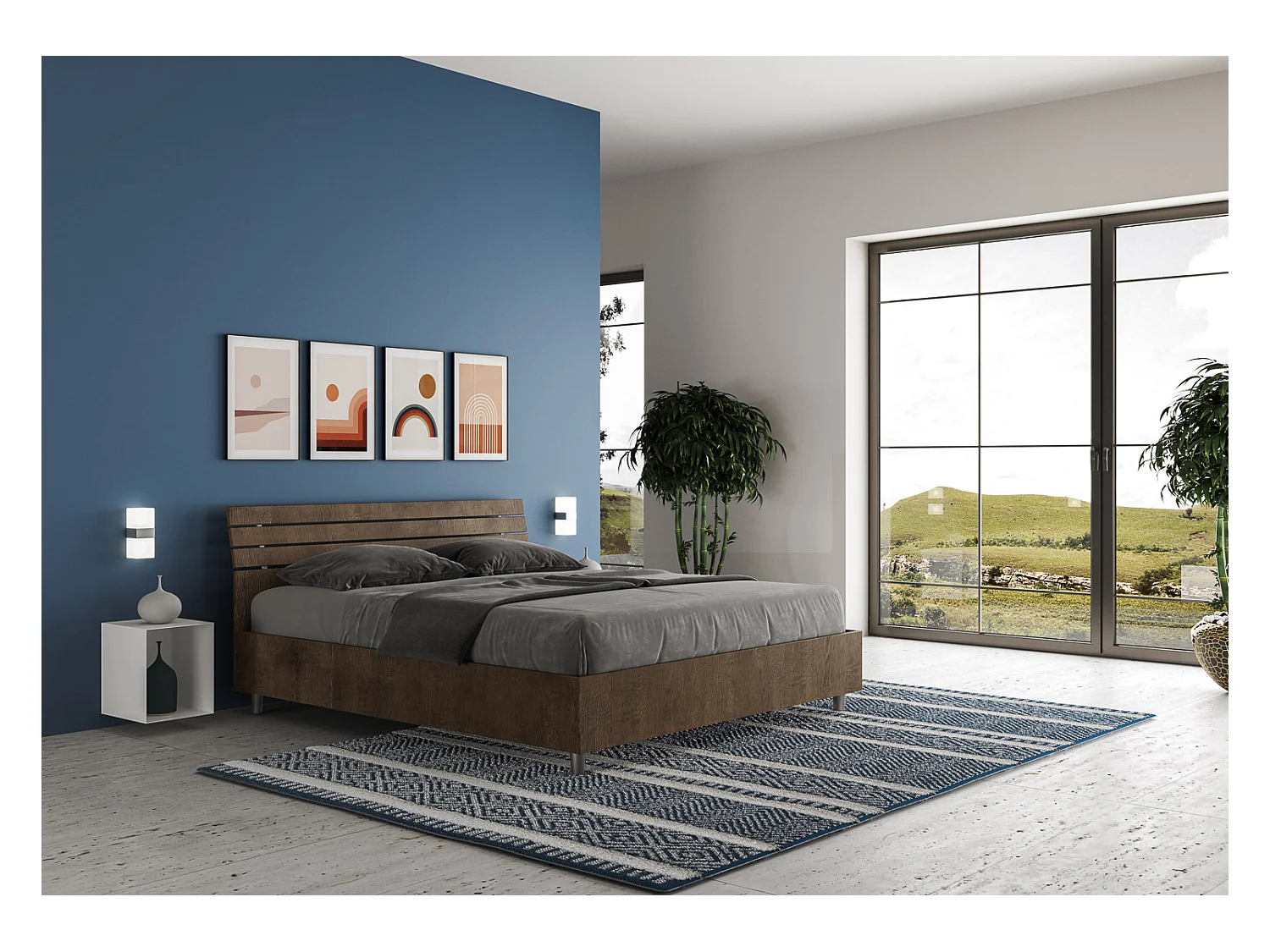 Lit coffre 160x190 tête de lit inclinée avec des lames noyer Ankel