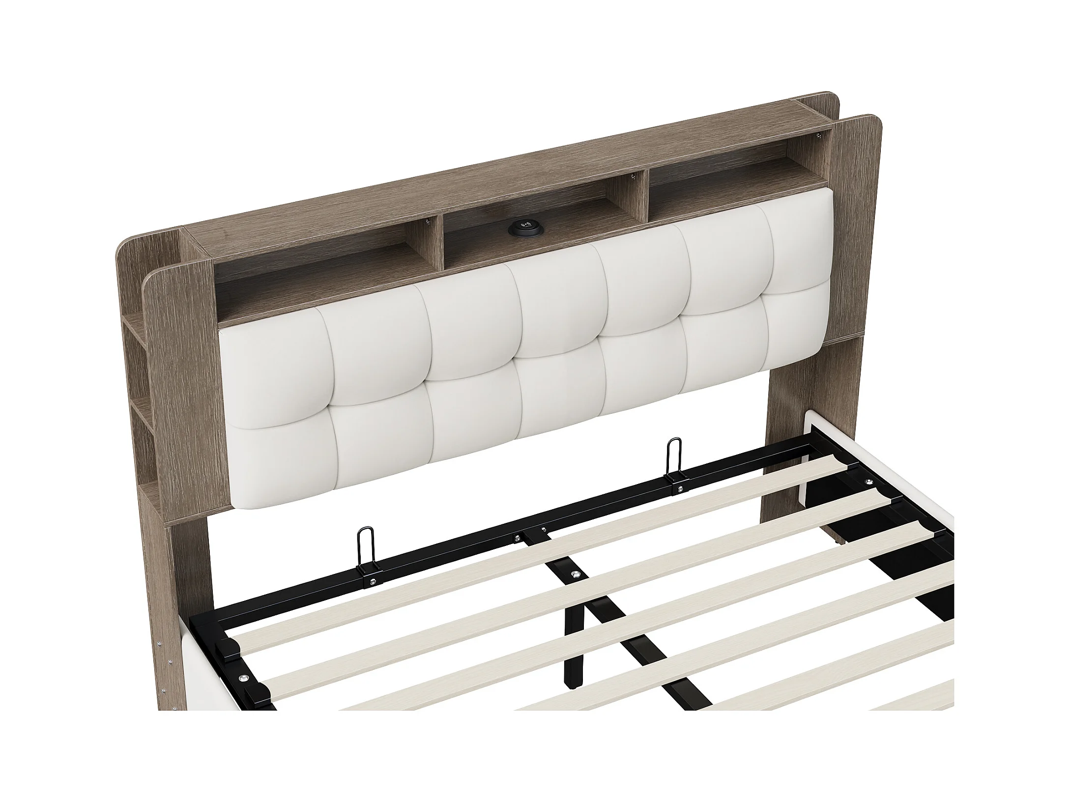 Lit Coffre 160x200 avec LED et fonction de chargement sans fil, avec rangement, velours, Blanc