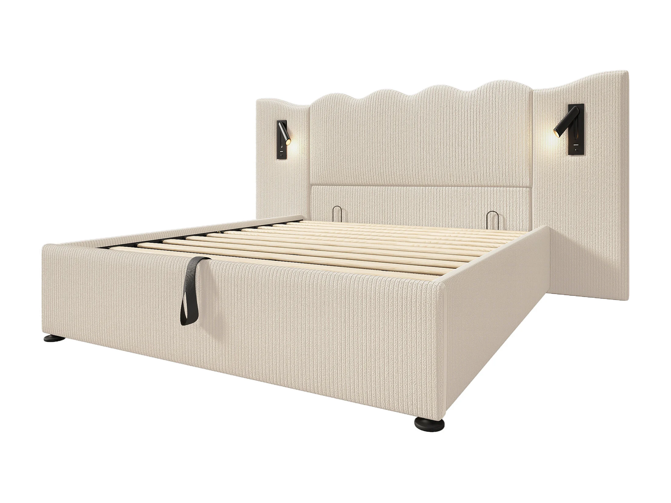 lit coffre 160x200 cm - avec tête de lit, USB et Type-C, sommier à lattes - beige - sans matelas