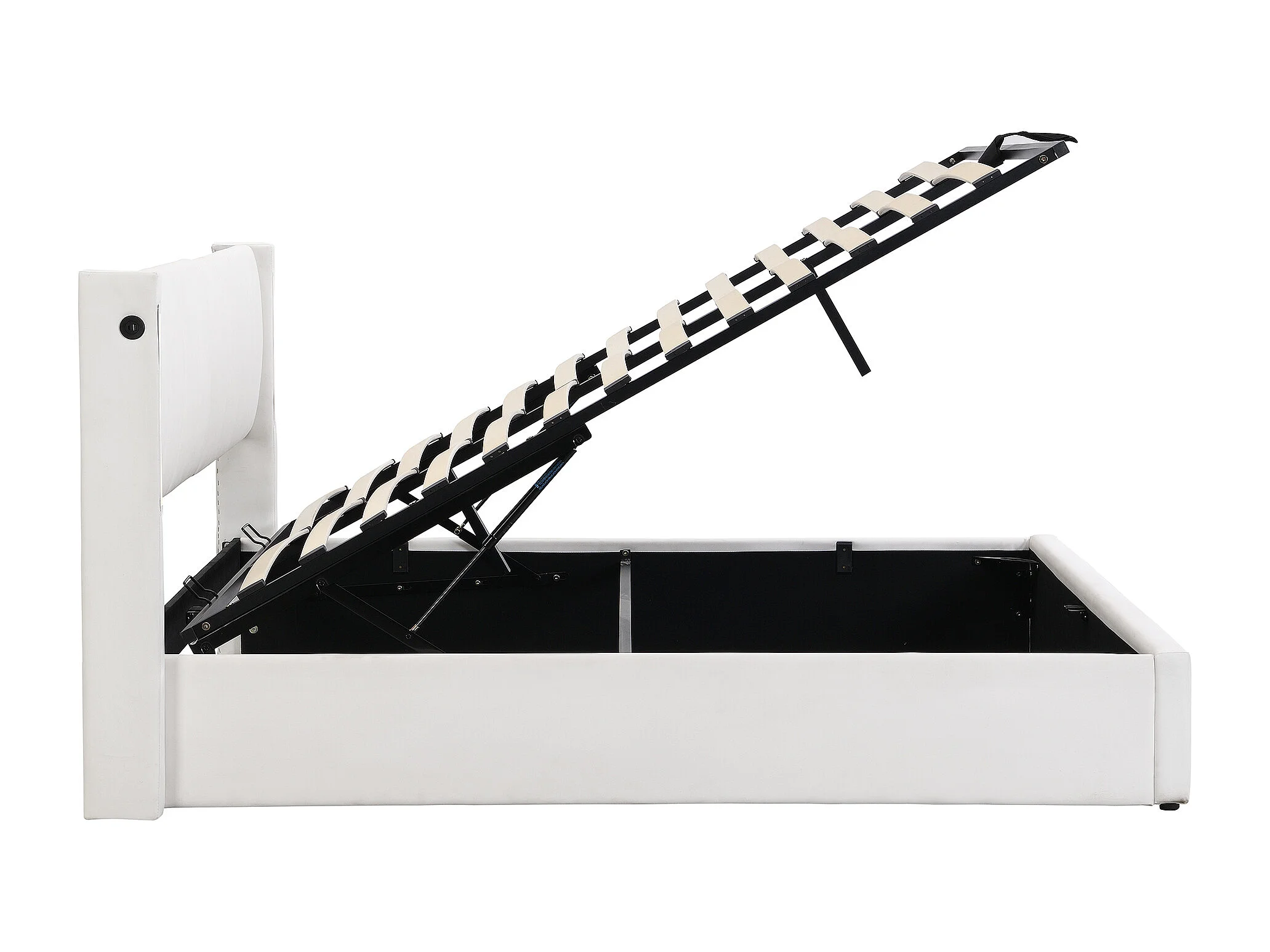 Lit coffre 160x200 cm - avec USB, Type-C, éclairage LED, tête de lit réglable, sommier à lattes - blanc - sans matelas