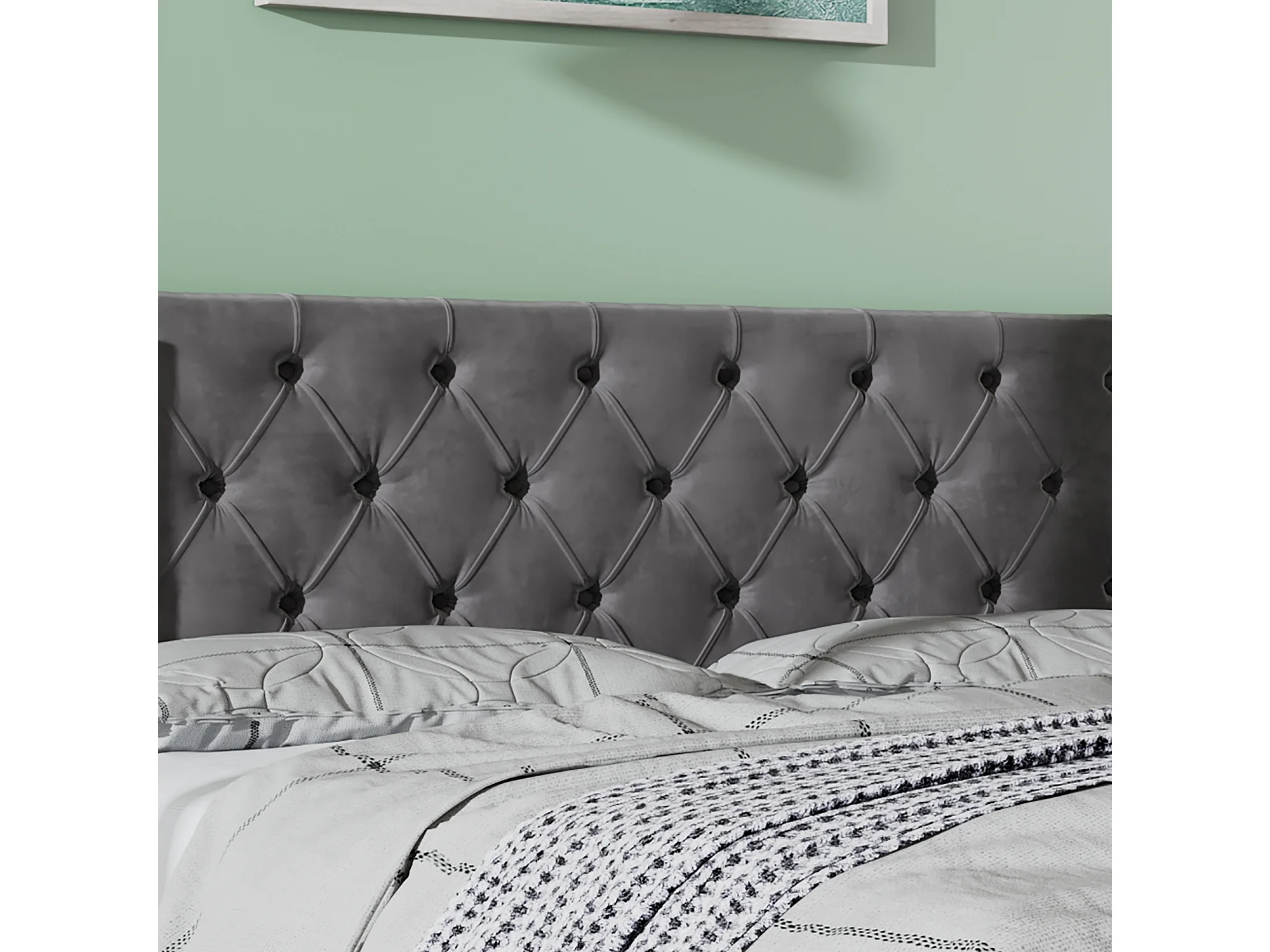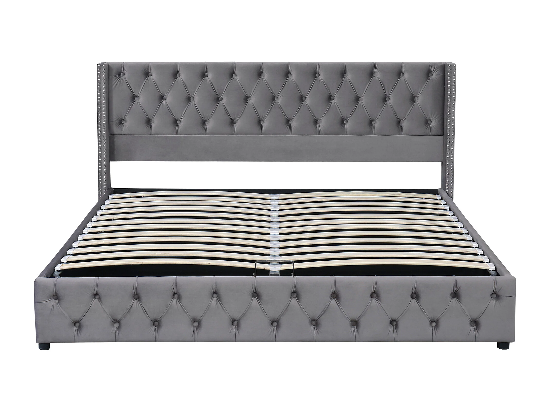 Lit coffre 160x200 cm - lit adulte en forme d'oreille double rangée de rivets - lit double - velours - gris