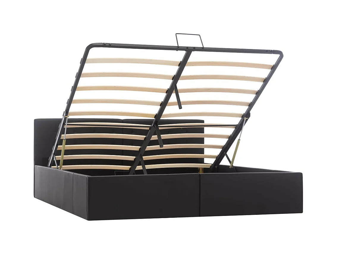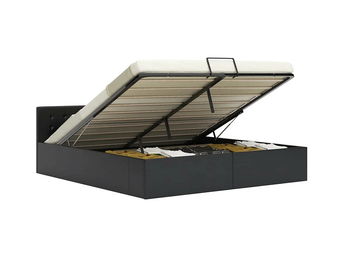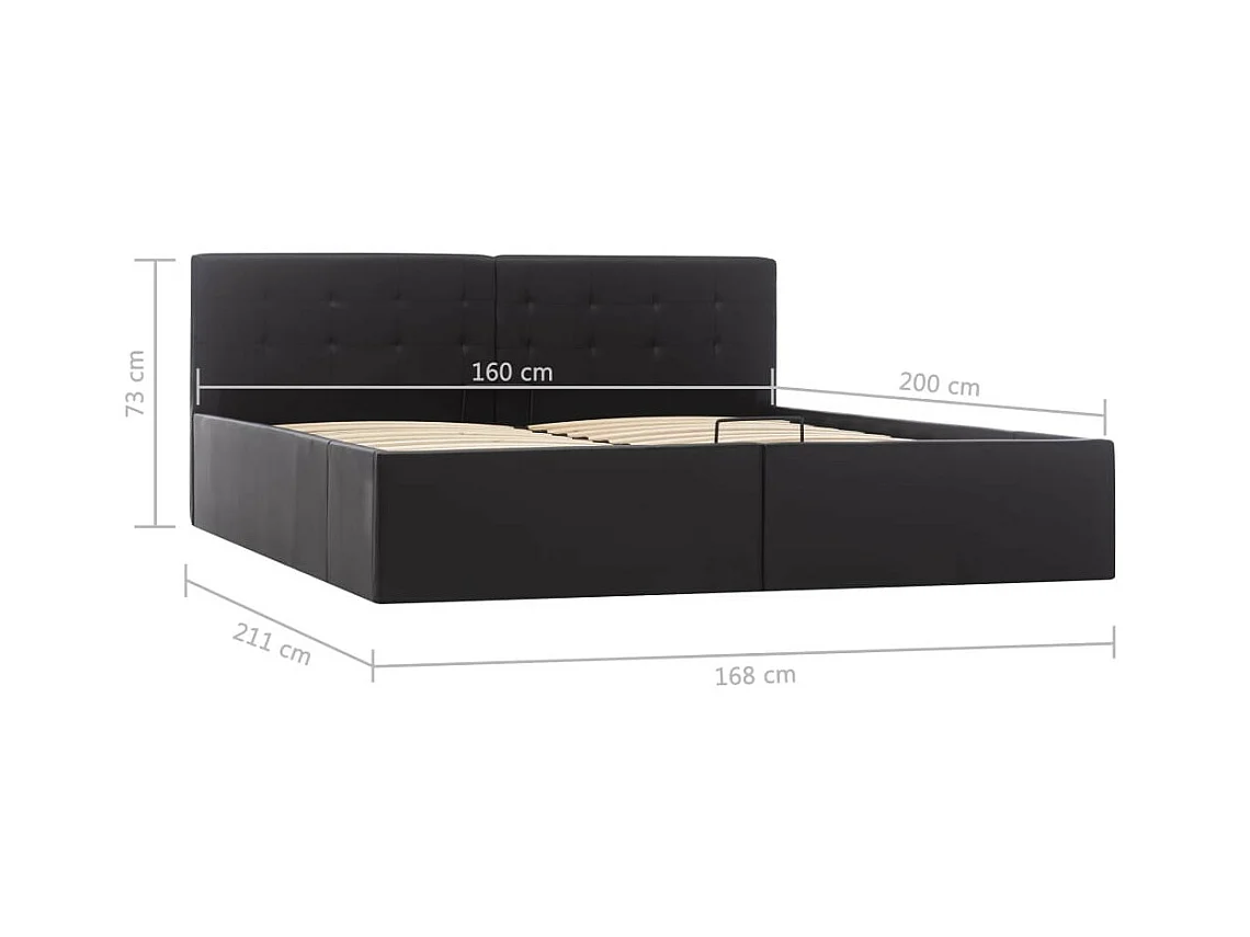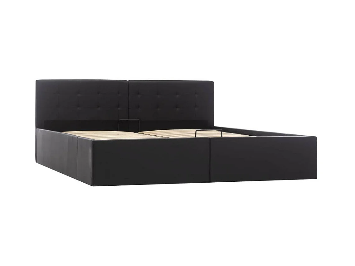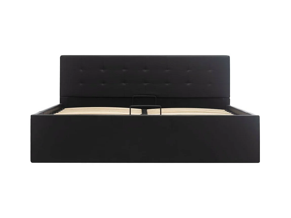 Lit coffre 160x200 simili cuir noir capitonné Rundi