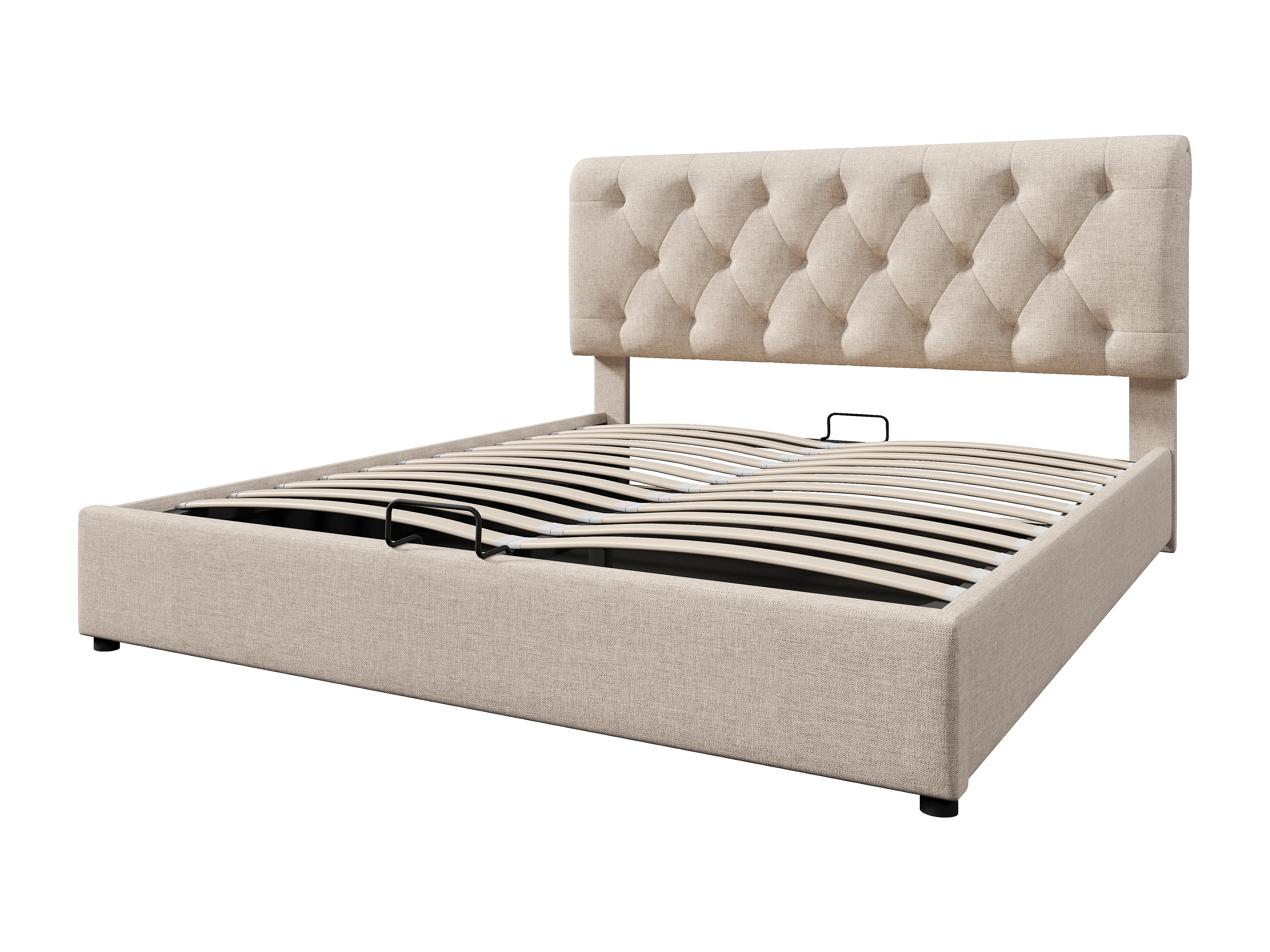 Lit coffre 160x200cm avec matelas et tête de lit réglable - Lit adulte en lin