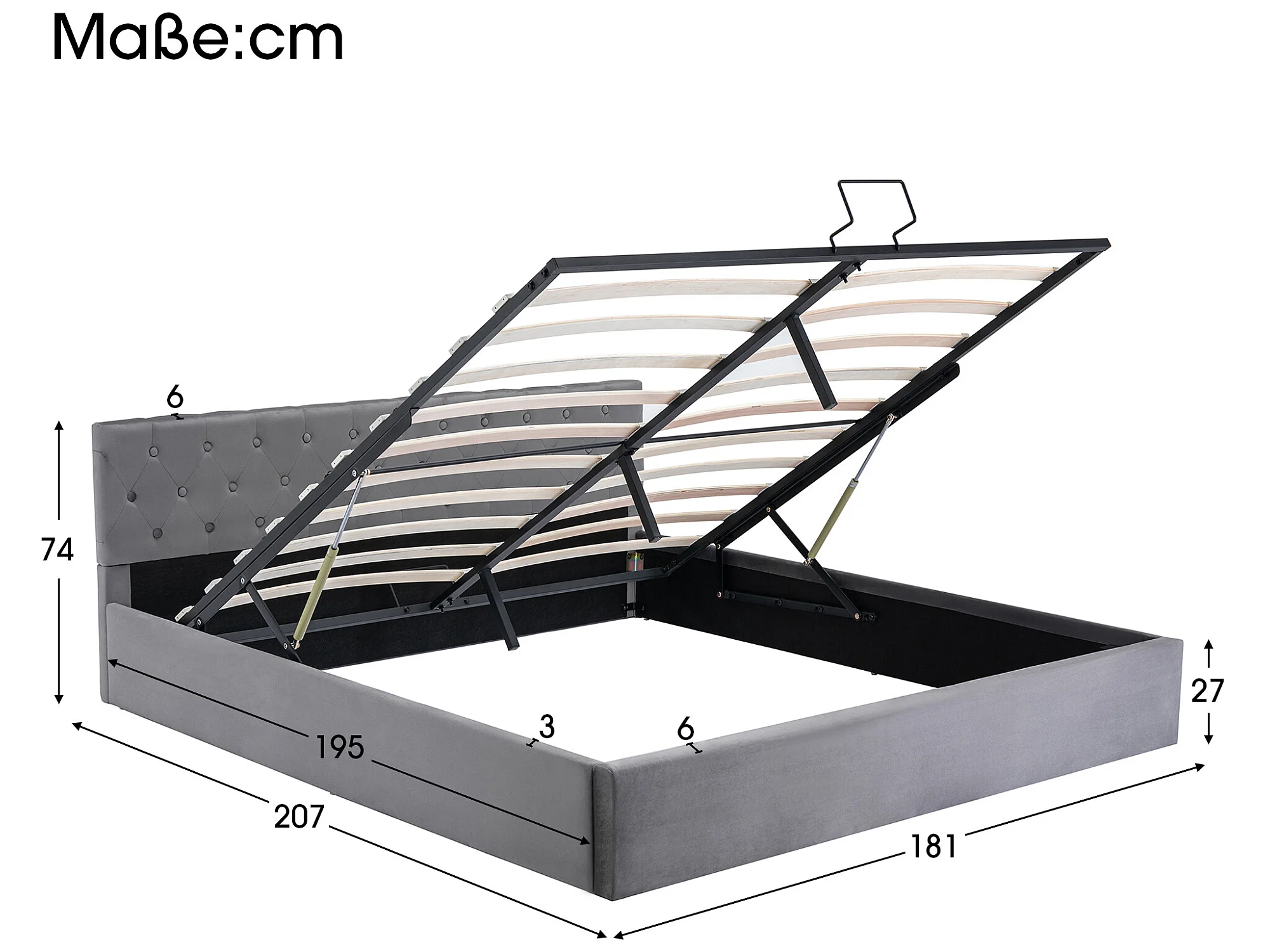 Lit coffre 180 x 200 cm - avec espace de rangement - Gris - Sweiko