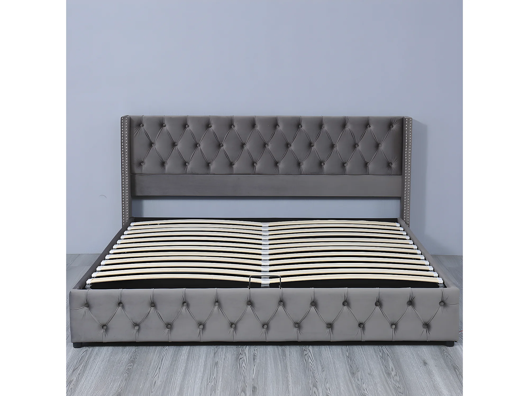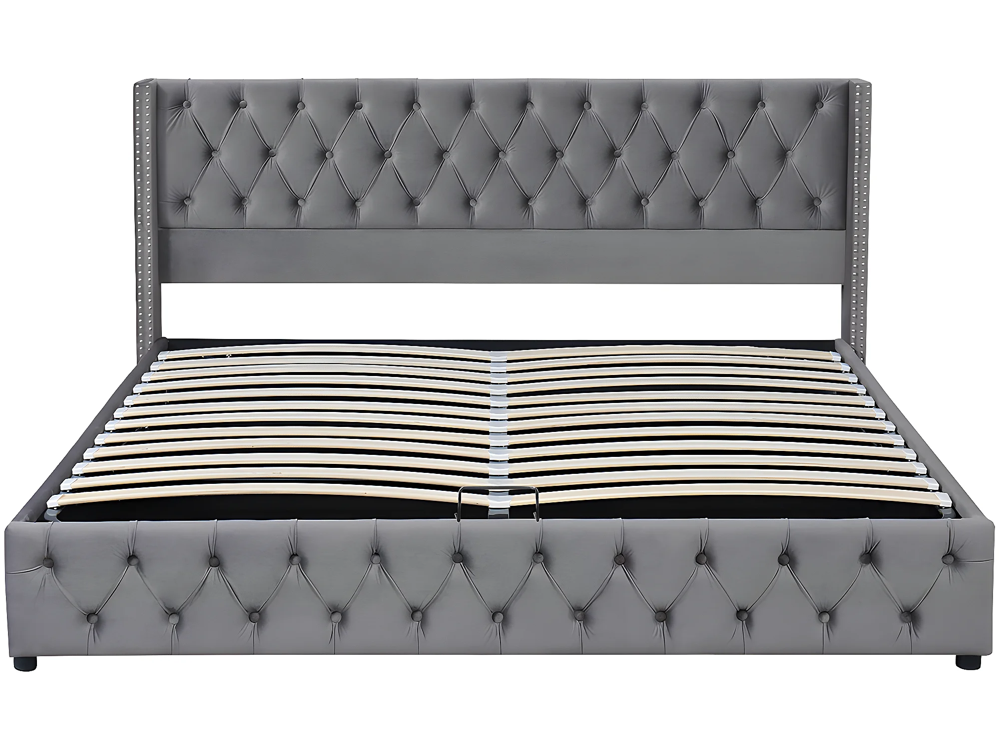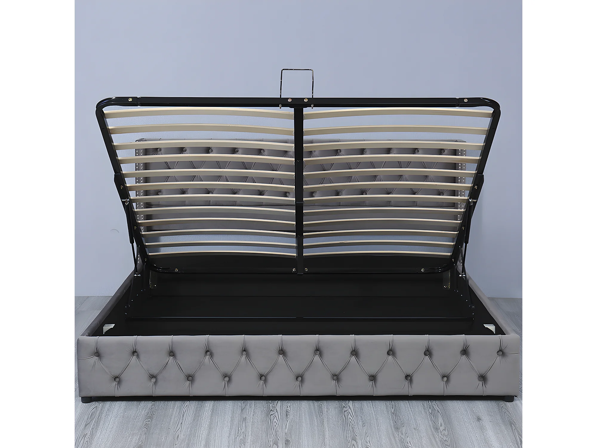 Lit coffre - 160 x 200 cm - avec sommier à lattes relevable - Gris - Sweiko