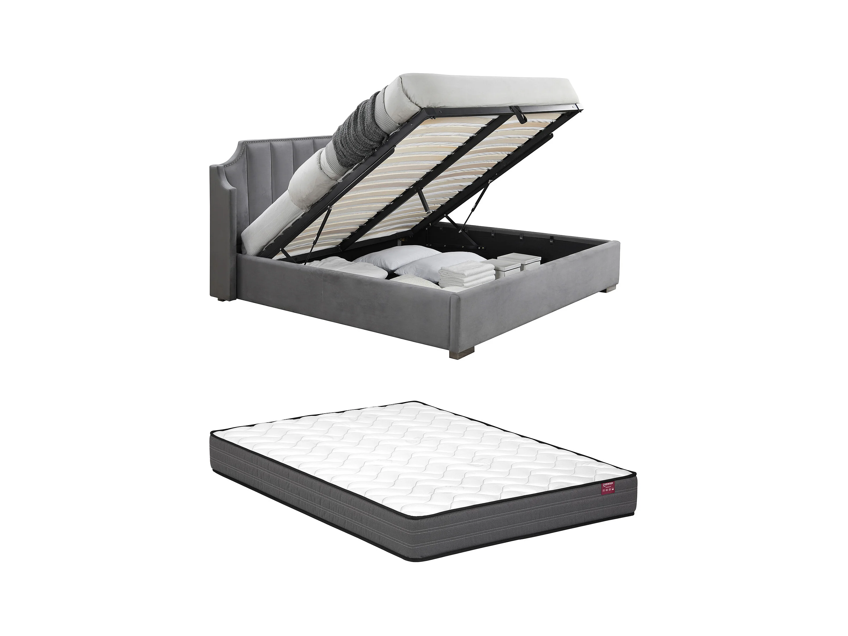 Lit coffre 180 x 200 cm avec tête de lit incurvée - Velours - Gris clair + Matelas - TEOMIS