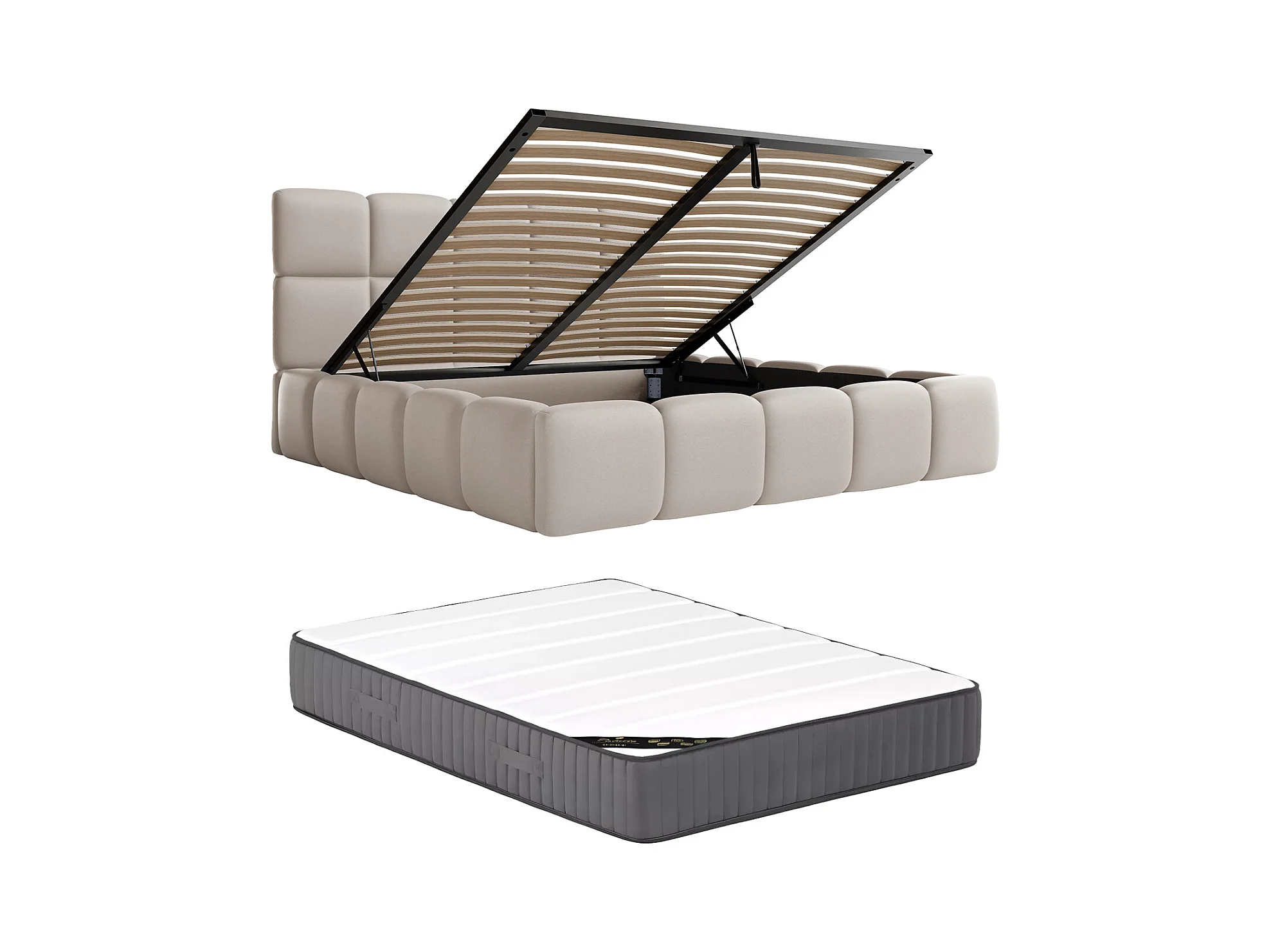 Lit coffre 180 x 200 cm - Tissu effet cuir - Beige + Matelas - DAMADO de Pascal Morabito