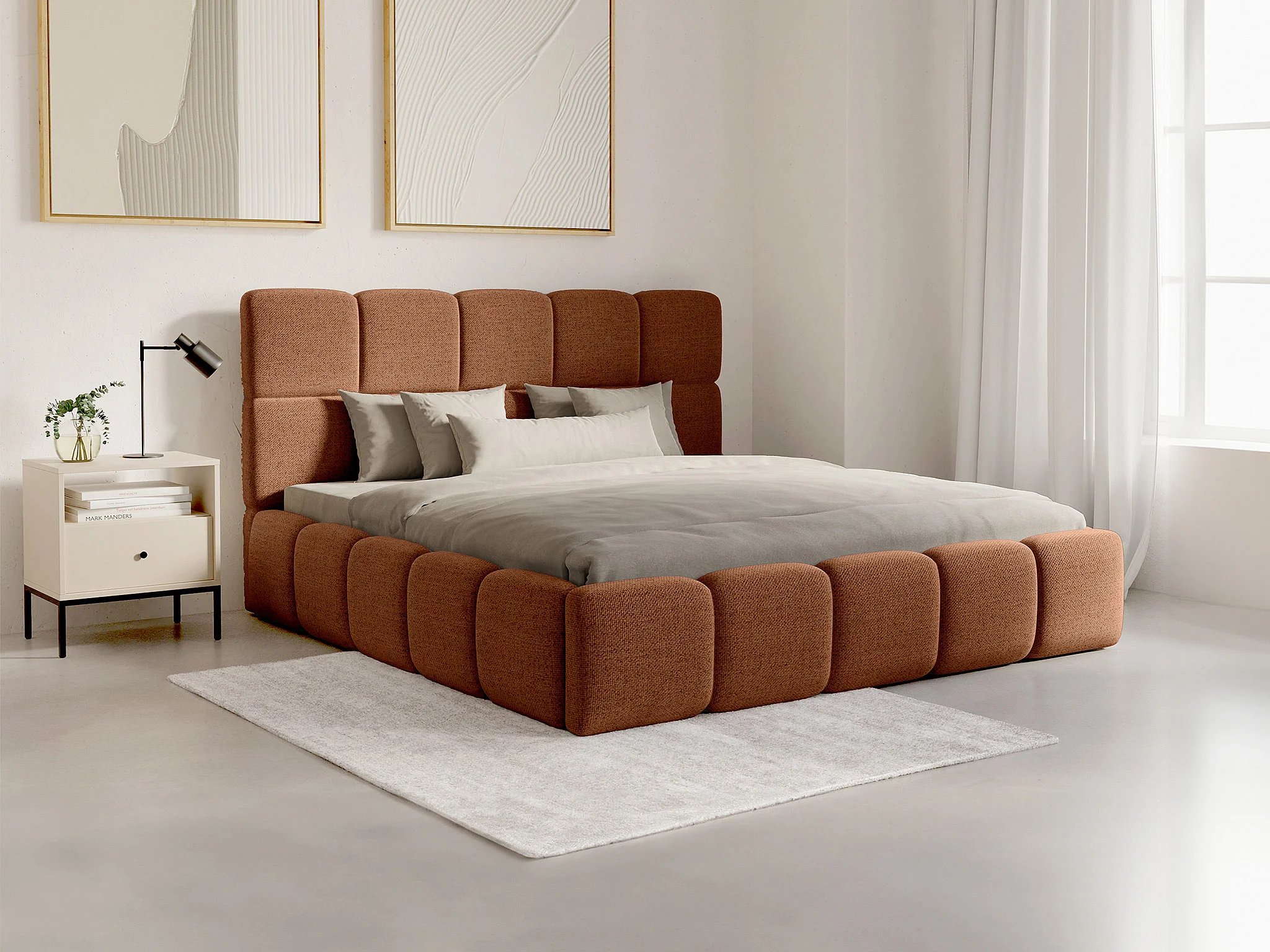 Lit coffre 180 x 200 cm - Tissu texturé - Terracotta + Matelas - DAMADO de Pascal Morabito