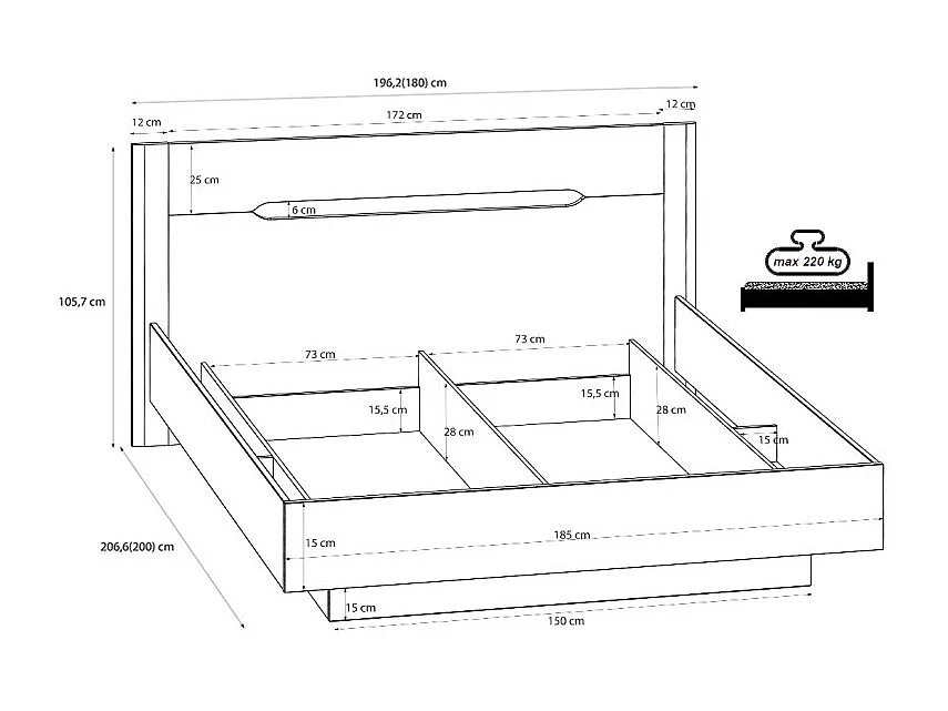 Lit coffre 180 x 200 décor chêne et sable mat avec sommier - ROSALIE