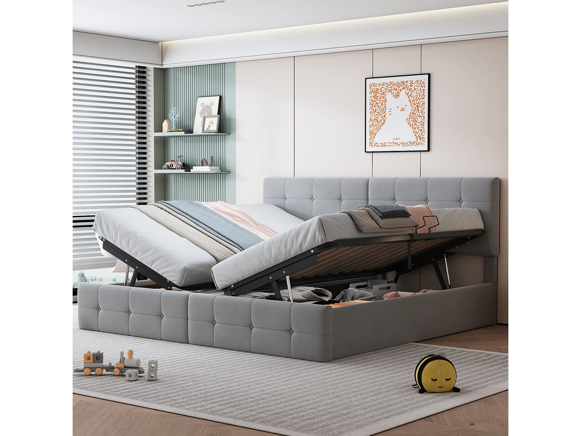 Lit coffre 180x200 cm - avec hydraulique et sommier à lattes - velours gris