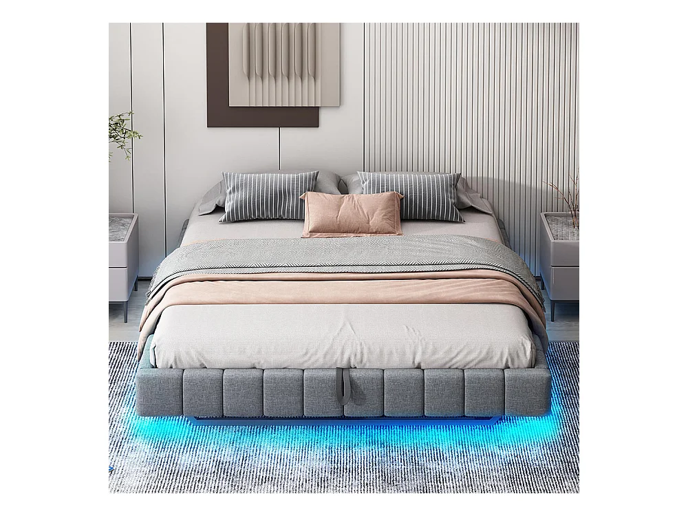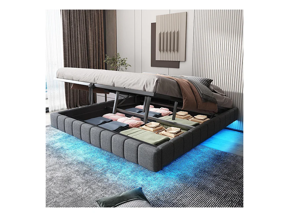 Lit coffre 180x200 cm, Cadre de lit flottant hydraulique, sans tête de lit , Gris