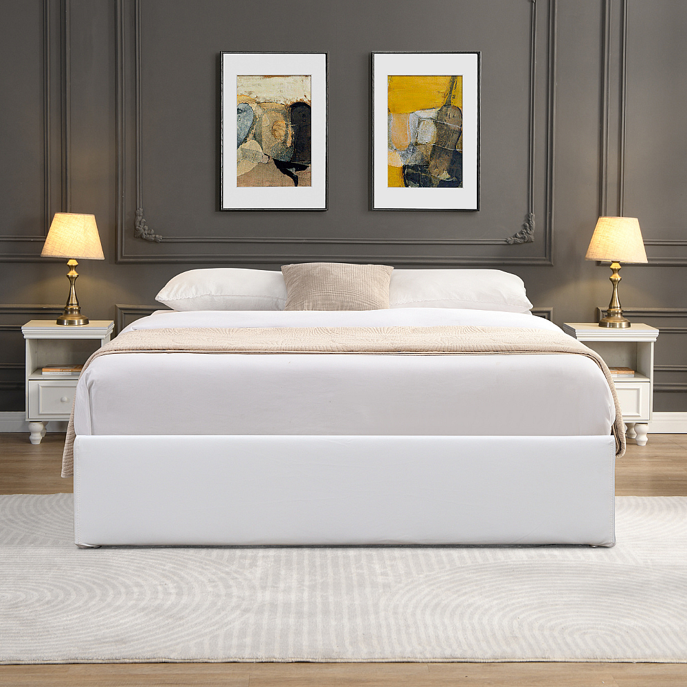 Lit Coffre 180x200 cm Dehoussable Blanc avec 14 Lattes - Montage Rapide - Revêtement PVC Simili Facile d'Entretien
